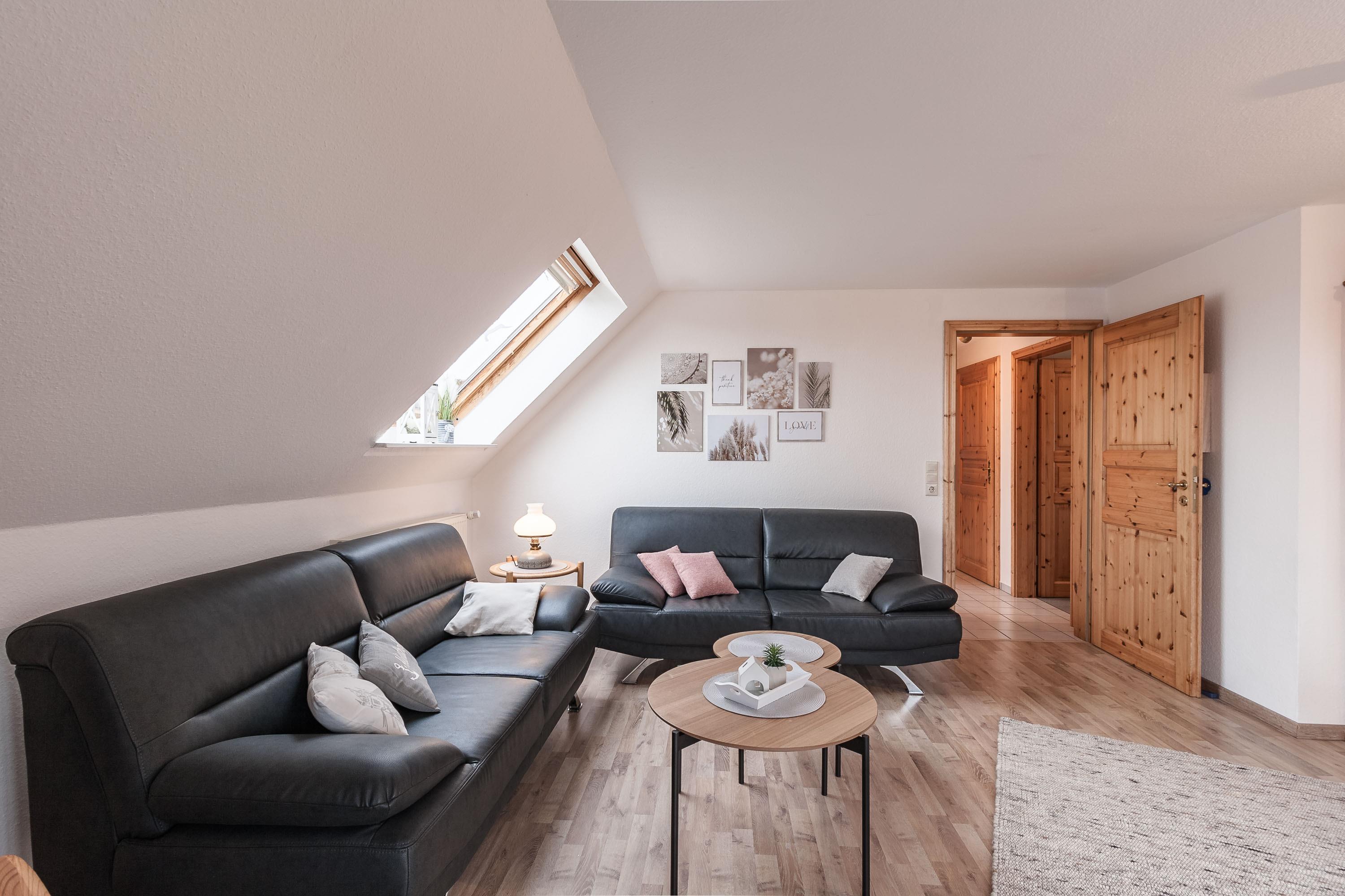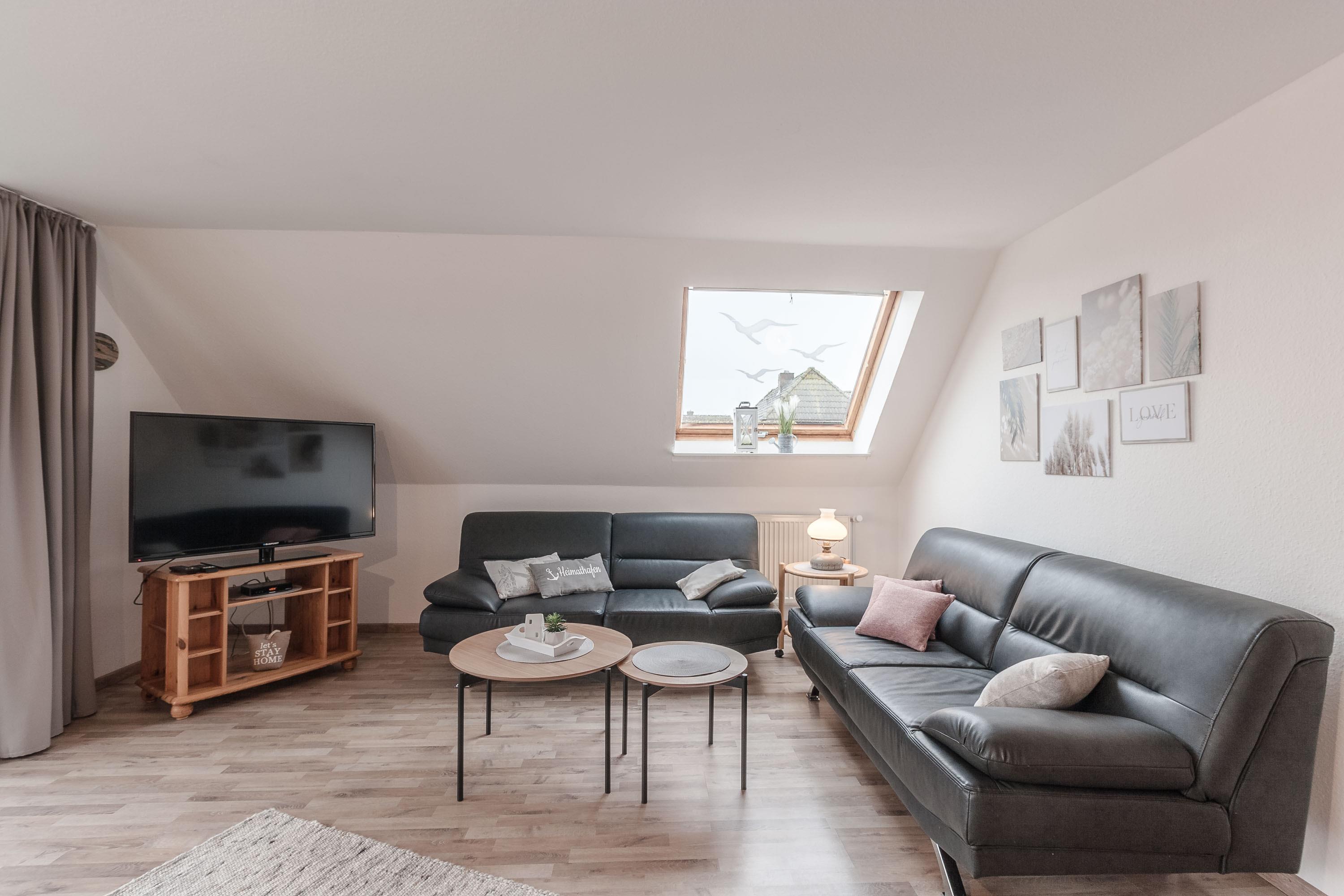 Der Wohnbereich lädt zu entspannten Abenden ein, ob bei einem guten Film, leiser Musik oder einfach mit Blick nach draußen.