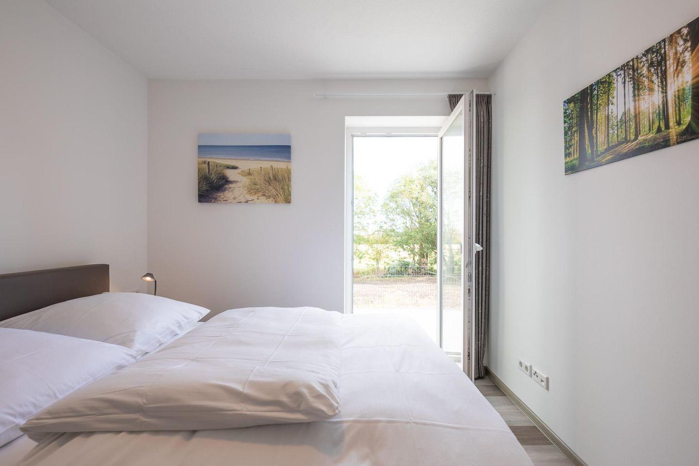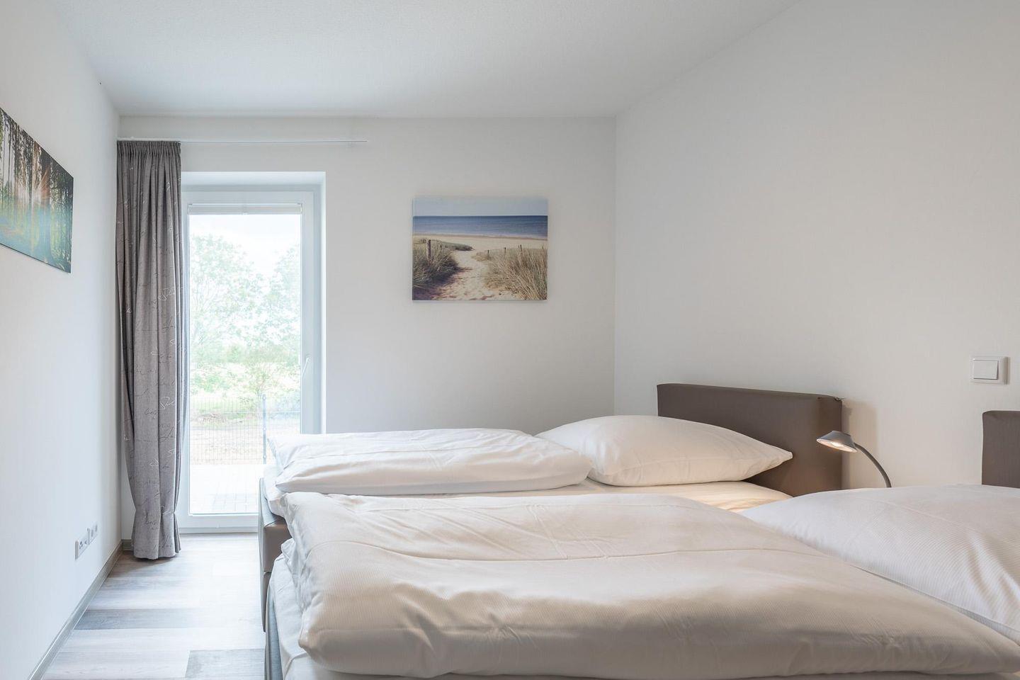 Das geschmackvoll und modern eingerichtete Apartment bietet Platz für bis zu 4 Personen. Die zwei Schlafzimmer (1 Doppelbett, 160 x 200 und 2 Einzelbetten, Boxspringbetten) haben jeweils auch Zugang zur Terrasse.