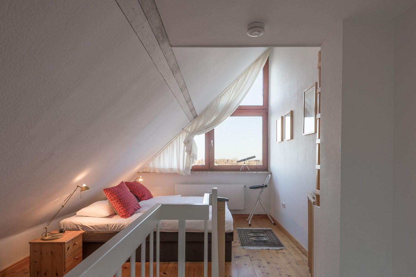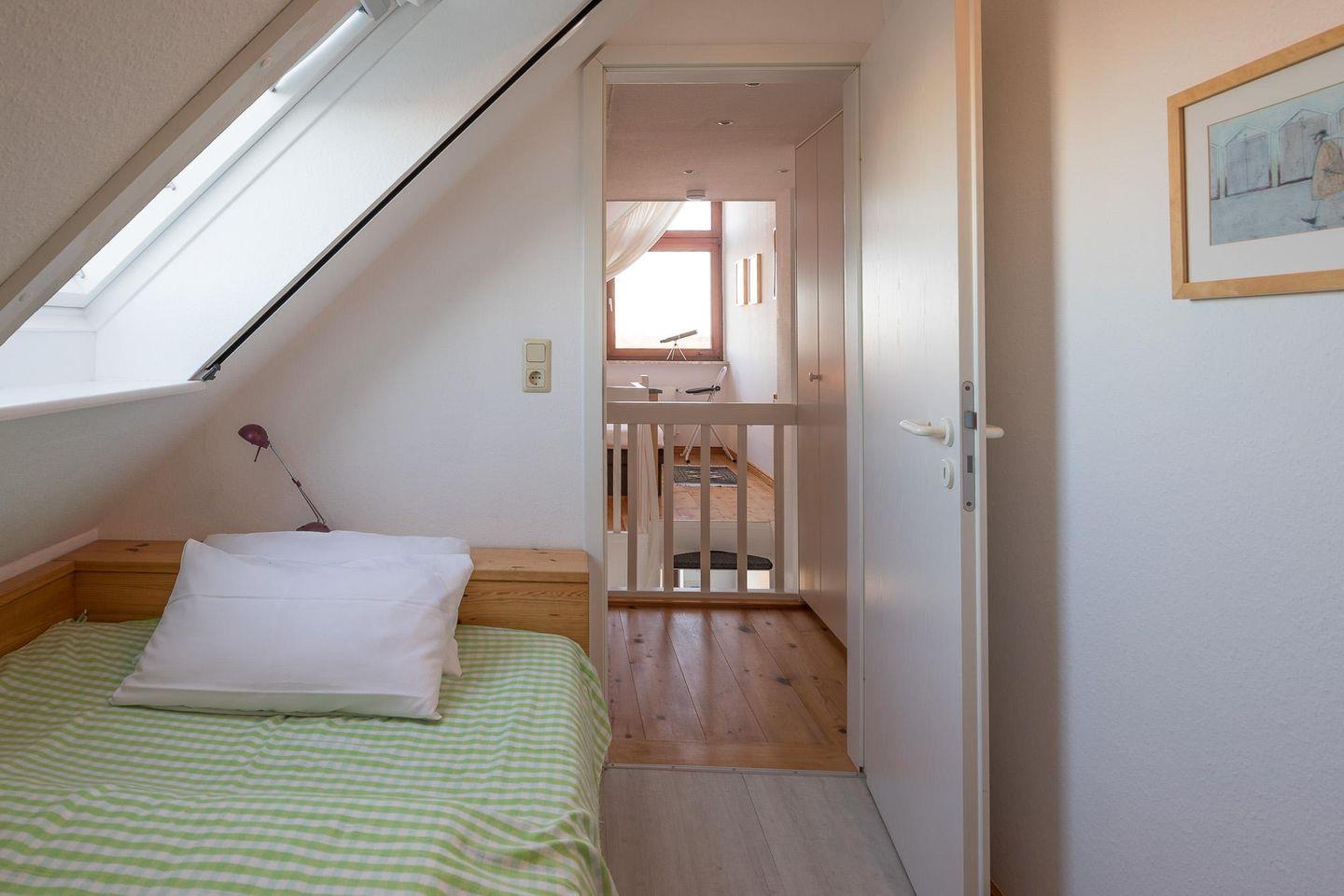 Das geschmackvoll und modern eingerichtete Apartment bietet Platz für bis zu drei Personen. Die beiden Schlafzimmer (180 x 200 und 1 Einzelbett, 140 x 200) sind über eine Treppe erreichbar.