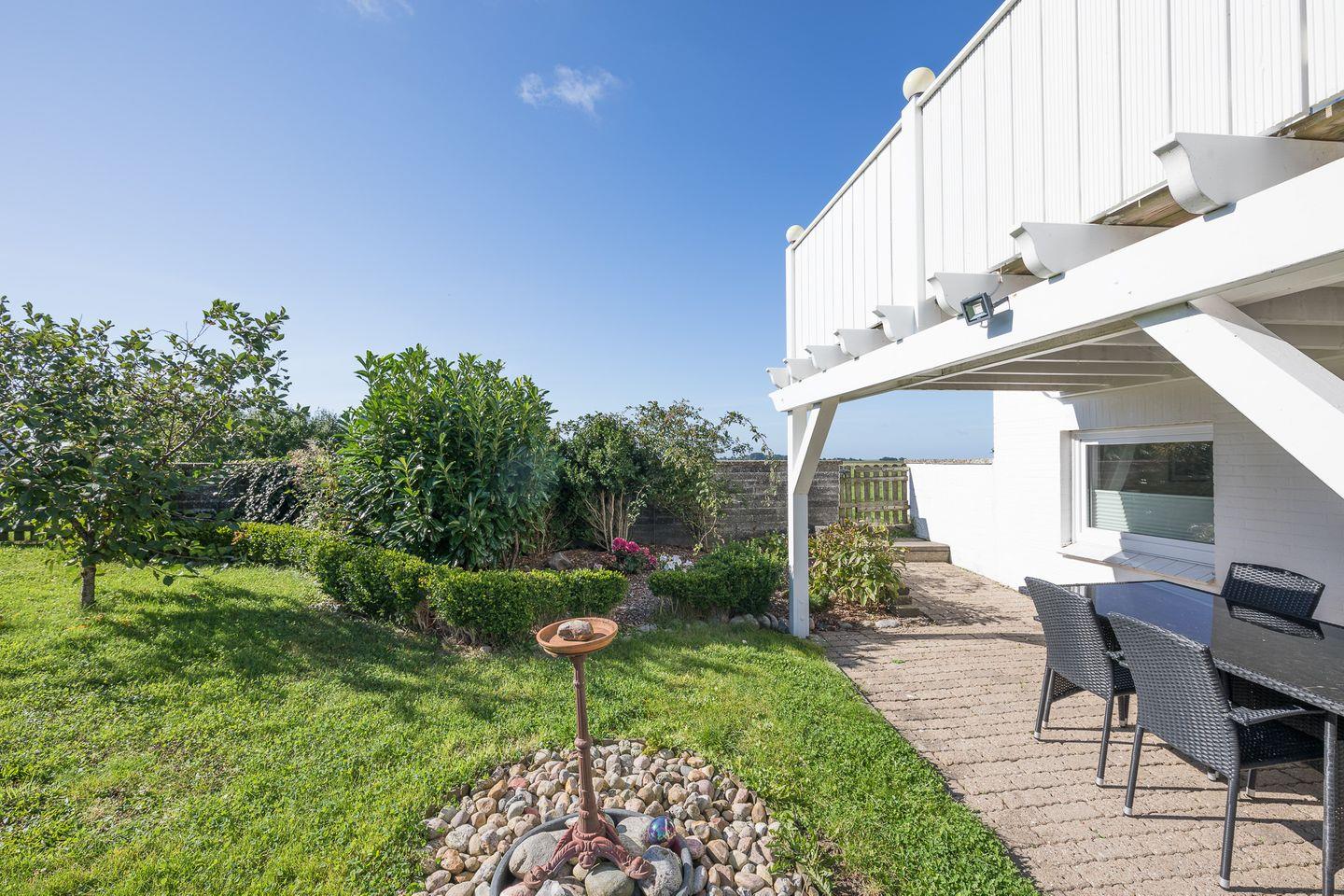 In dem großen Garten können die Kleinen und auch die Vierbeiner toben. Auf der überdachten Terrasse stehen Ihnen Gartenmöbel zur Verfügung.