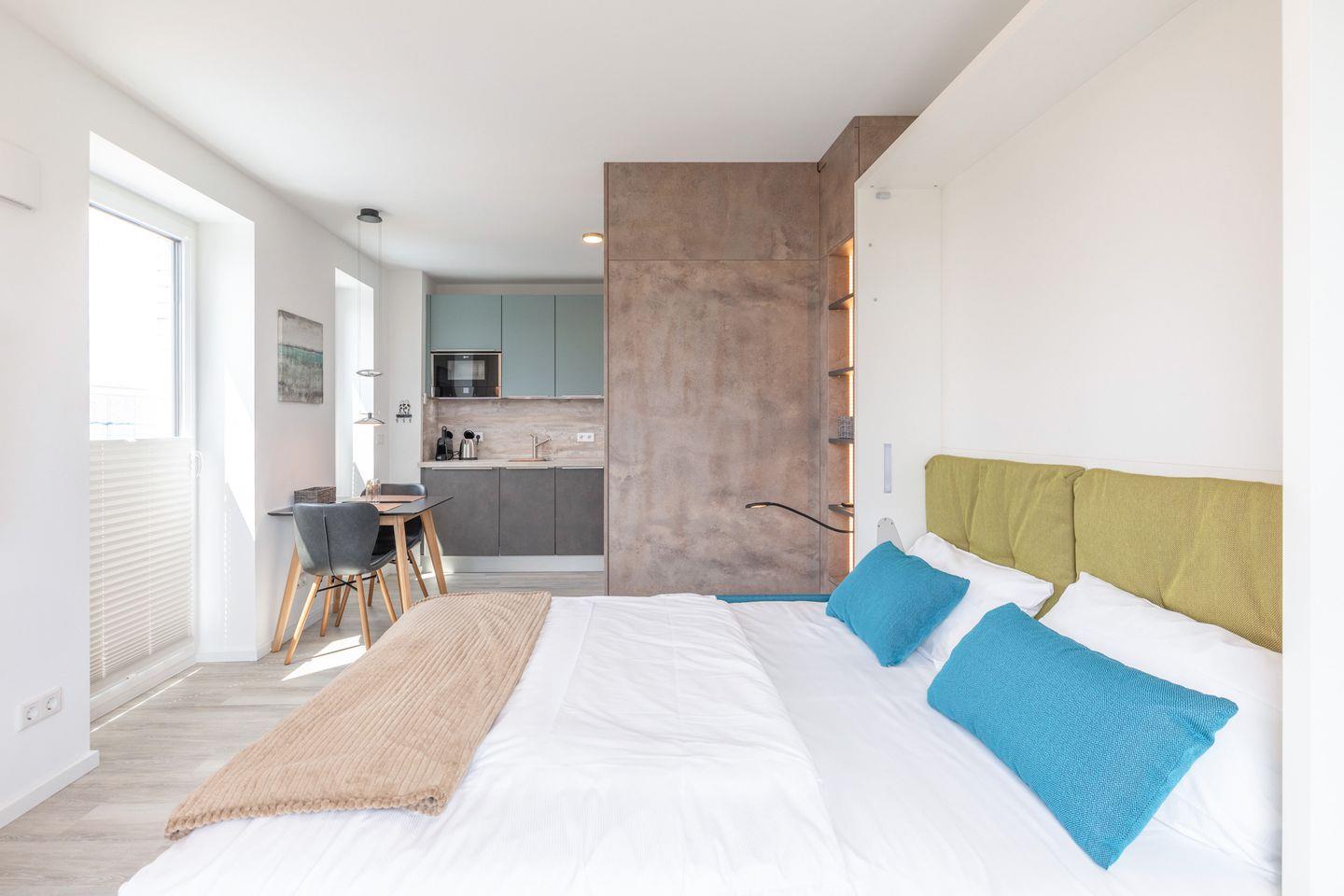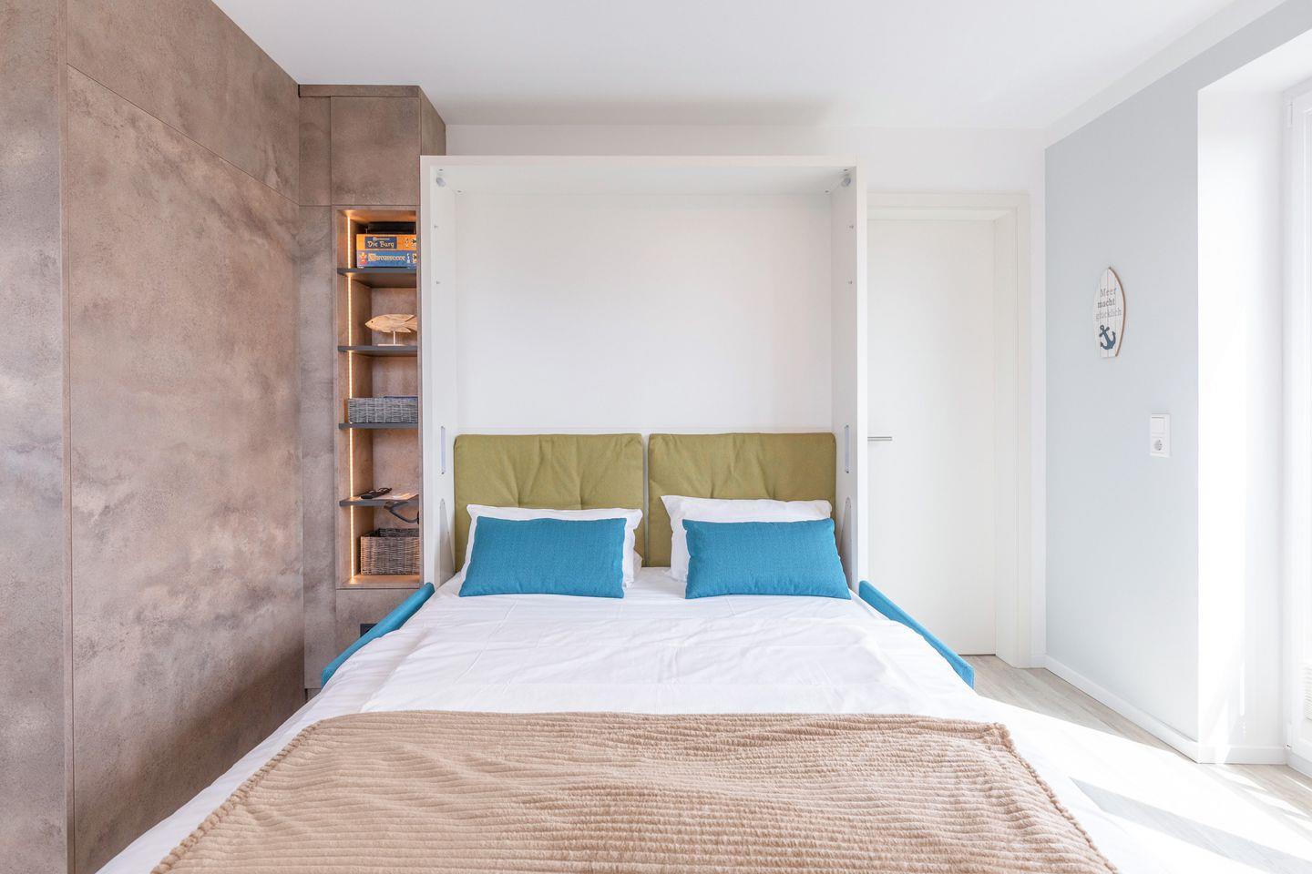 ausgestattet. Ausreichend Stauraum findet sich in den beiden Einbauschränken.
