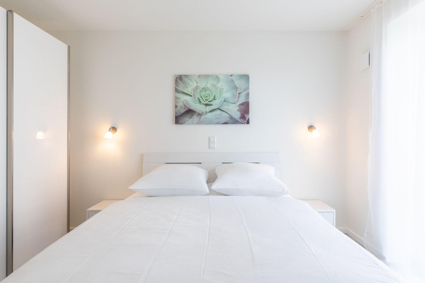 Exquisite Ferienwohnung auf grüner Halbinsel Nordstrand. Direkt am See, Nähe zur Nordsee. Stilvolles Apartmenthaus mit Blick auf den Forellensee. Großzügiger Wohnbereich, komfortable Einbauküche, zwei Schlafzimmer mit Doppelbetten und jeweils eigenem Duschbad. WLAN, Kfz-Stellplatz, Fahrradschuppen, Fußbodenheizung. Genießen Sie die Natur und den Komfort!