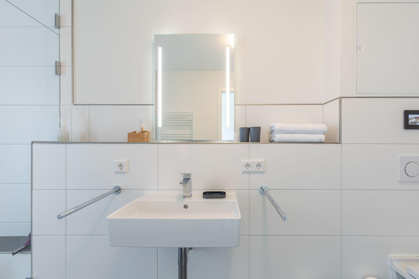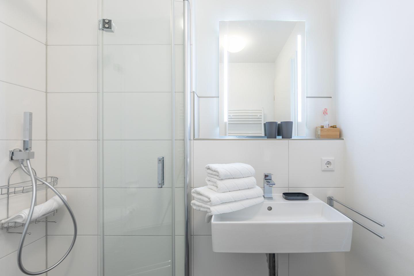 Die beiden Schlafzimmer sind mit je einem Doppelbett (160 x 200) ausgestattet und haben jeweils Zugang zu einem eigenen Duschbad.