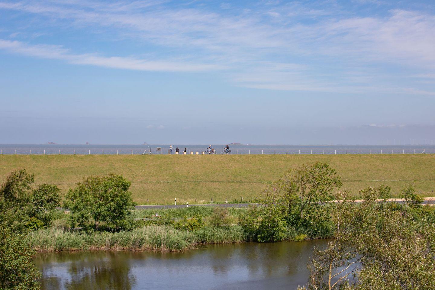 Genießen Sie Nordsee-Idylle in der Ferienwohnung "Ankerplatz No. 7" mit Seeblick. 38 qm, Wohnzimmer mit Schlafsofa, gut ausgestattete Küche, Schlafzimmer mit Doppelbett, tageshelles Duschbad. Sonniger Balkon, WLAN, Parkplatz, Fahrradschuppen, Fußbodenheizung. Erholung pur!