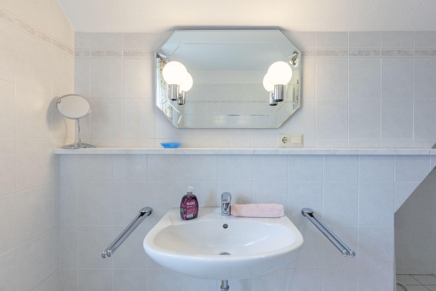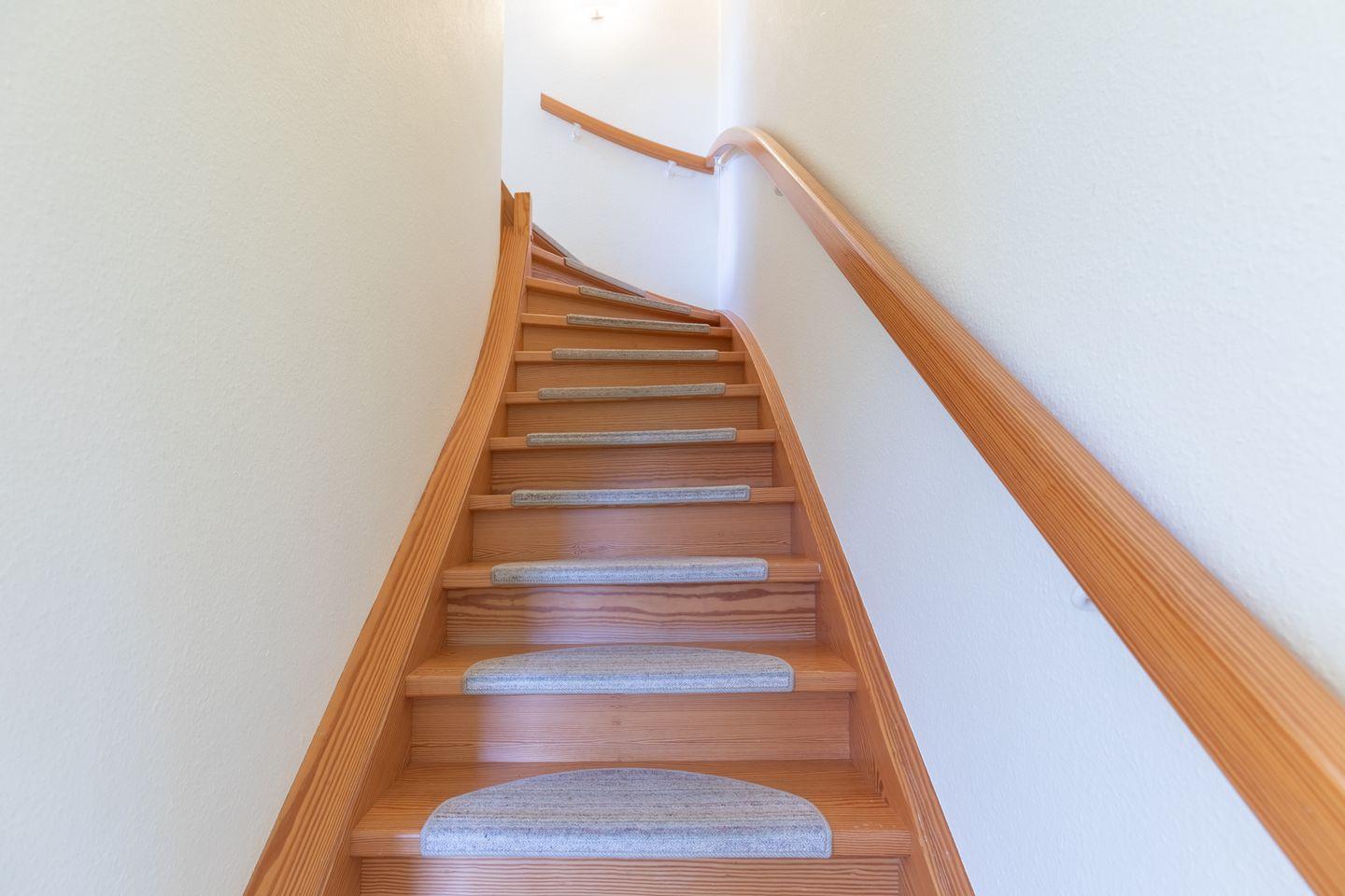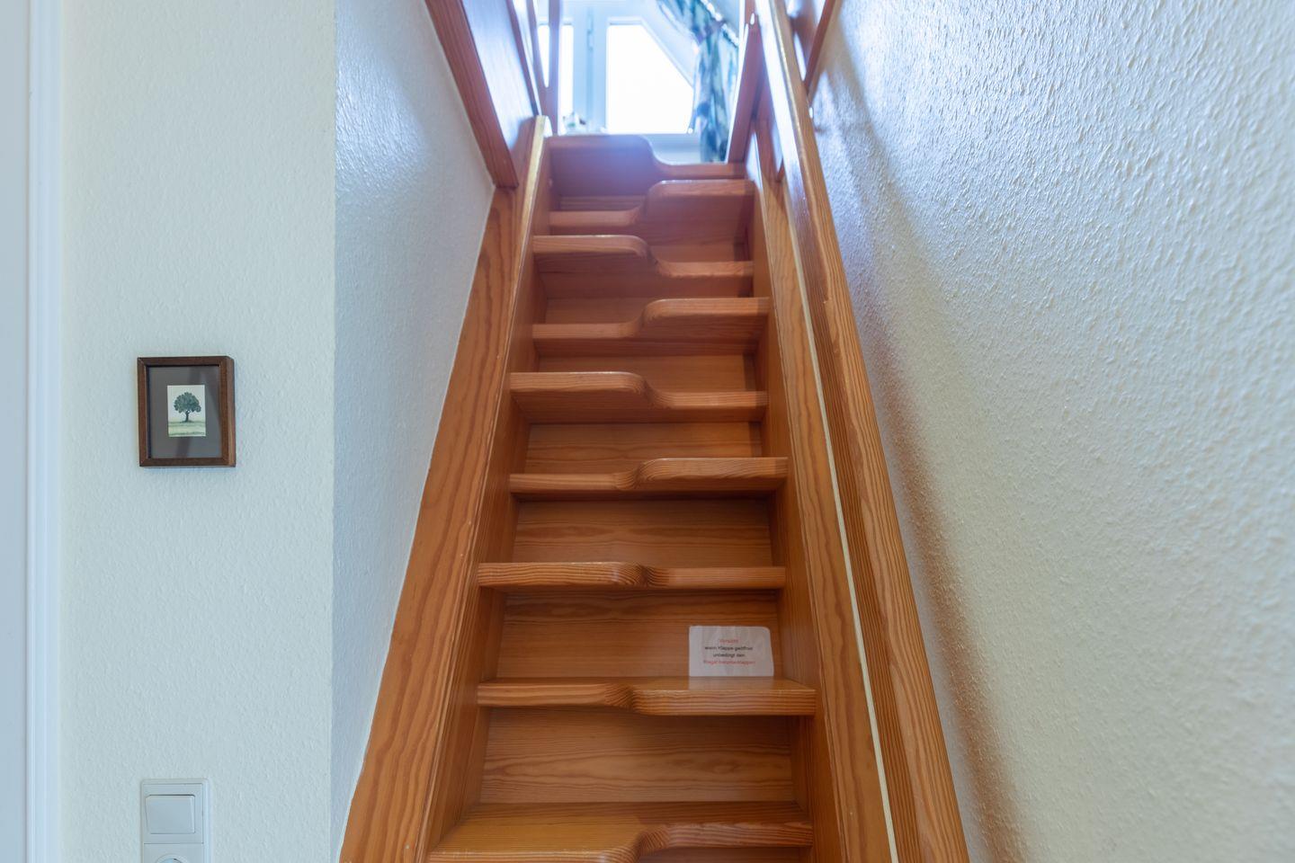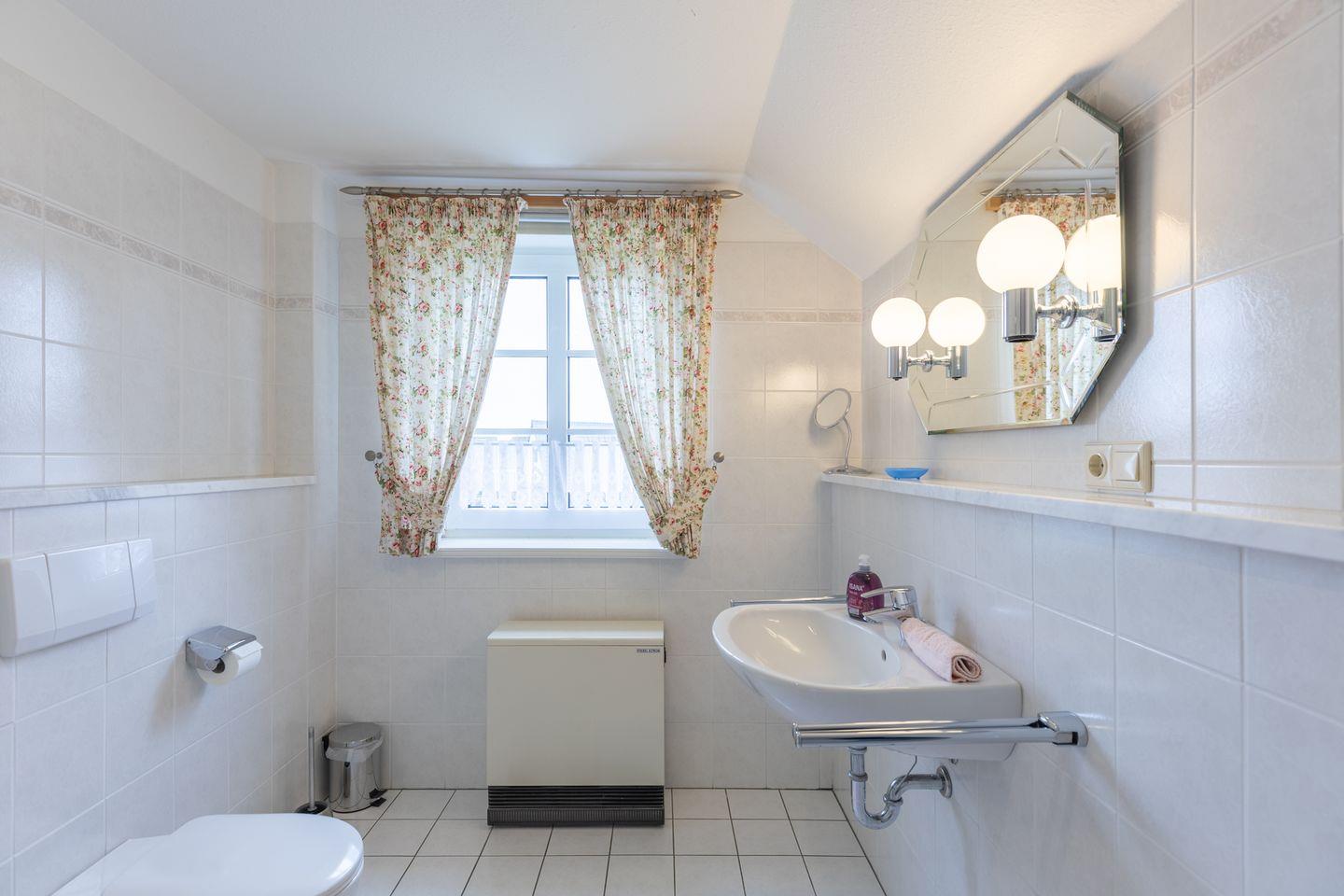 Im 1. OG finden Sie ein großes Schlafzimmer mit einem Doppelbett (180 x 200), ein Schlafzimmer mit zwei Einzelbetten, sowie ein helles, modernes Duschbad mit WC. Ein weiteres Schlafzimmer mit einem Doppelbett (180 x 200, das bei Bedarf auch auseinander geschoben werden kann ) steht Ihnen im 2. OG zur Verfügung. Dieses Schlafzimmer ist über eine recht steile Holztreppe erreichbar.