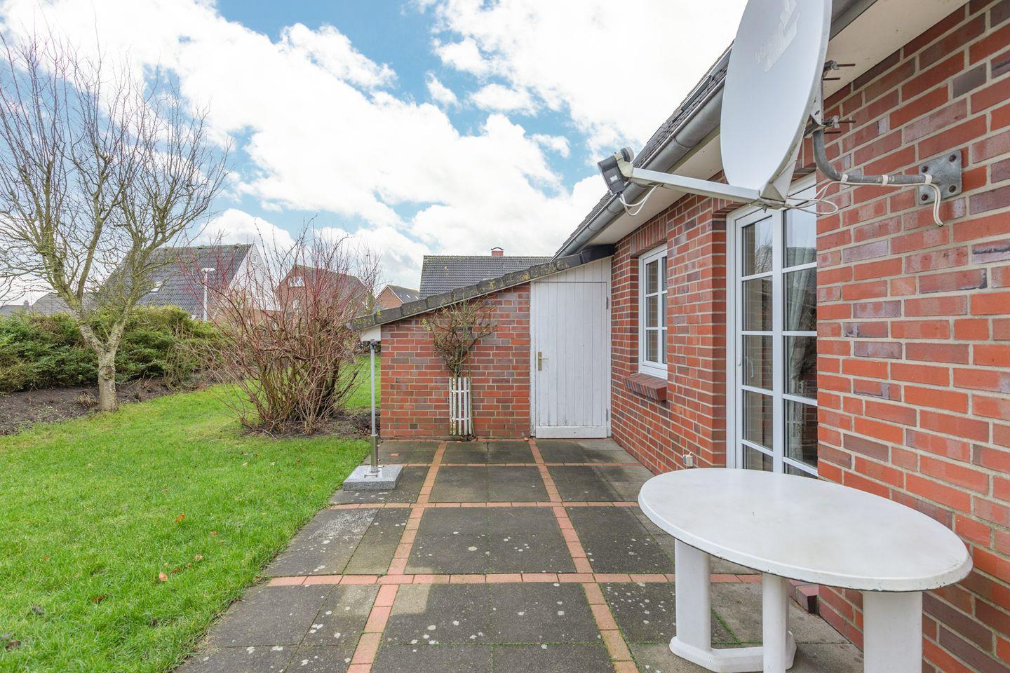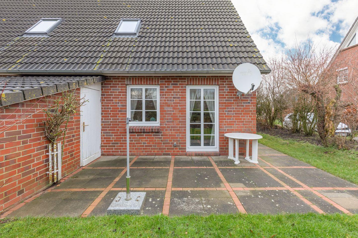 Über das Wohnzimmer haben Sie Zugang zu der sonnigen und geschützten Terrasse mit Gartenmöbeln für gemütliche, sonnige Abendstunden.
