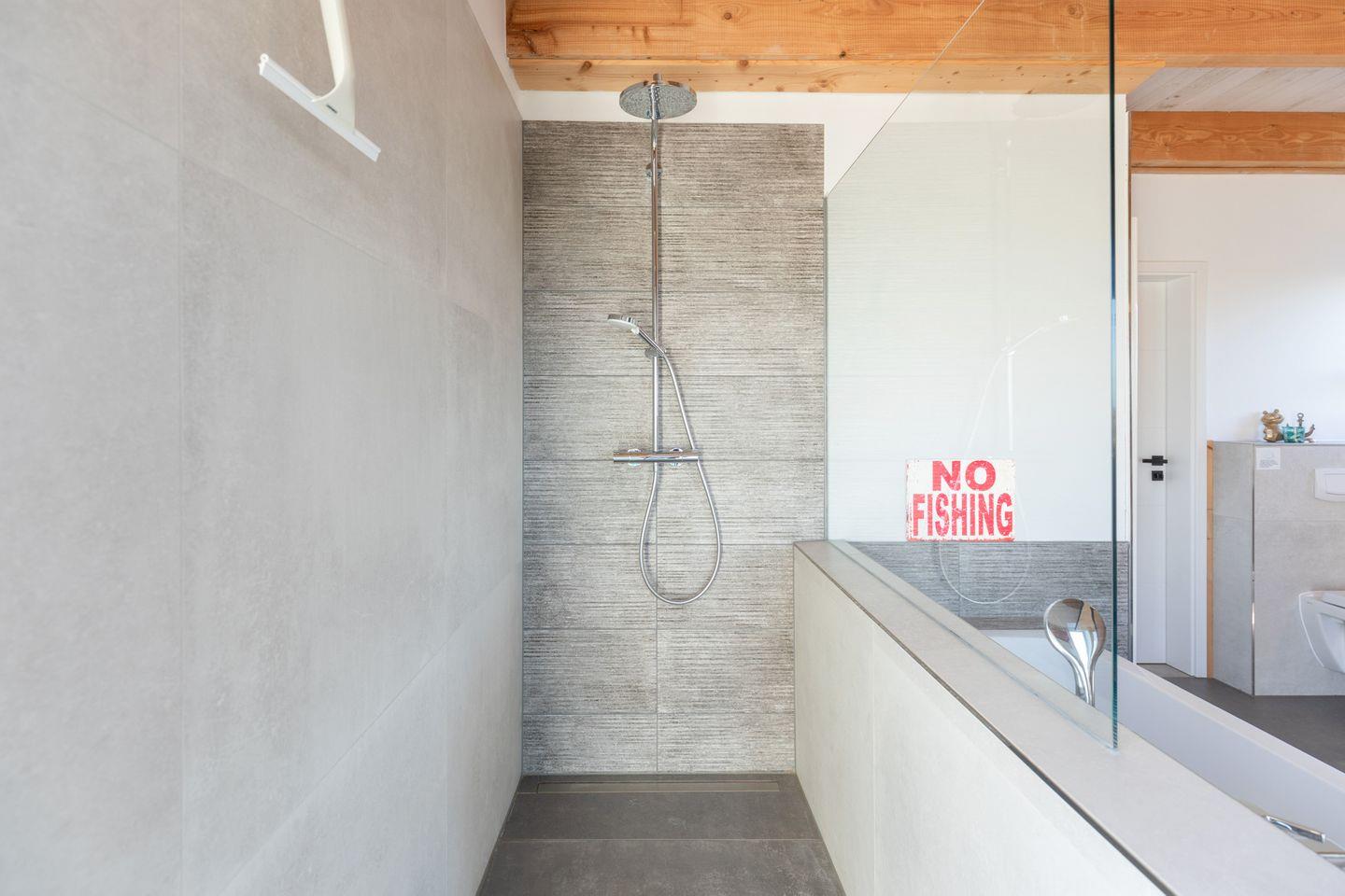 Im Erdgeschoss befindet sich ein lichtdurchflutetes Bad, das keine Wünsche offen lässt. Eine moderne Sauna lädt hier ebenso zum Entspannen ein wie eine geräumige Dusche und eine komfortable Whirlwanne.