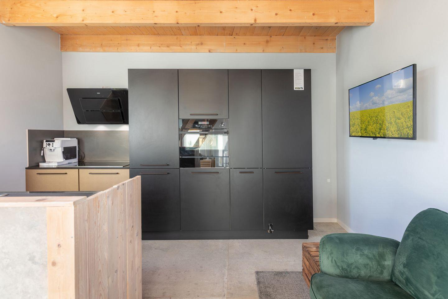 Erleben Sie ein einladendes Urlaubserlebnis in unserem exklusiven Tinyhouse, das durch einen offenen, hellen Essbereich mit moderner, offener Küche mit Cerankochfeld, Backofen, Geschirrspüler, Kühlschrank mit Gefrierfach und Kaffeevollautomat überzeugt. Die großzügige Raumaufteilung und die harmonische Farbgestaltung sorgen für eine warme, einladende Atmosphäre, perfekt für gemeinsame Stunden.