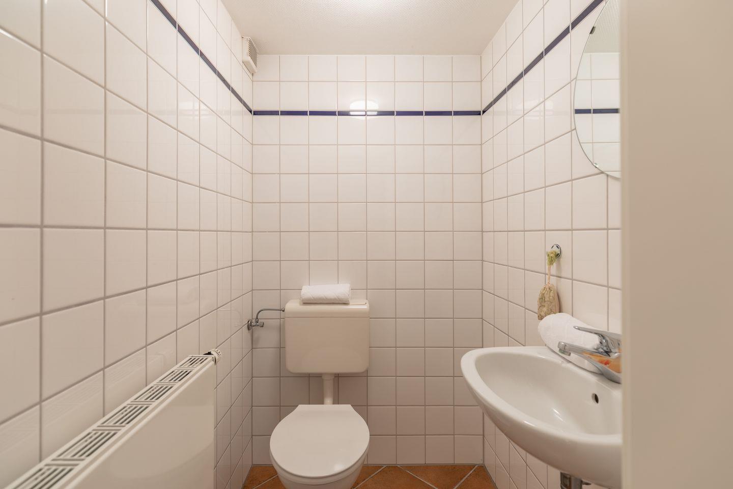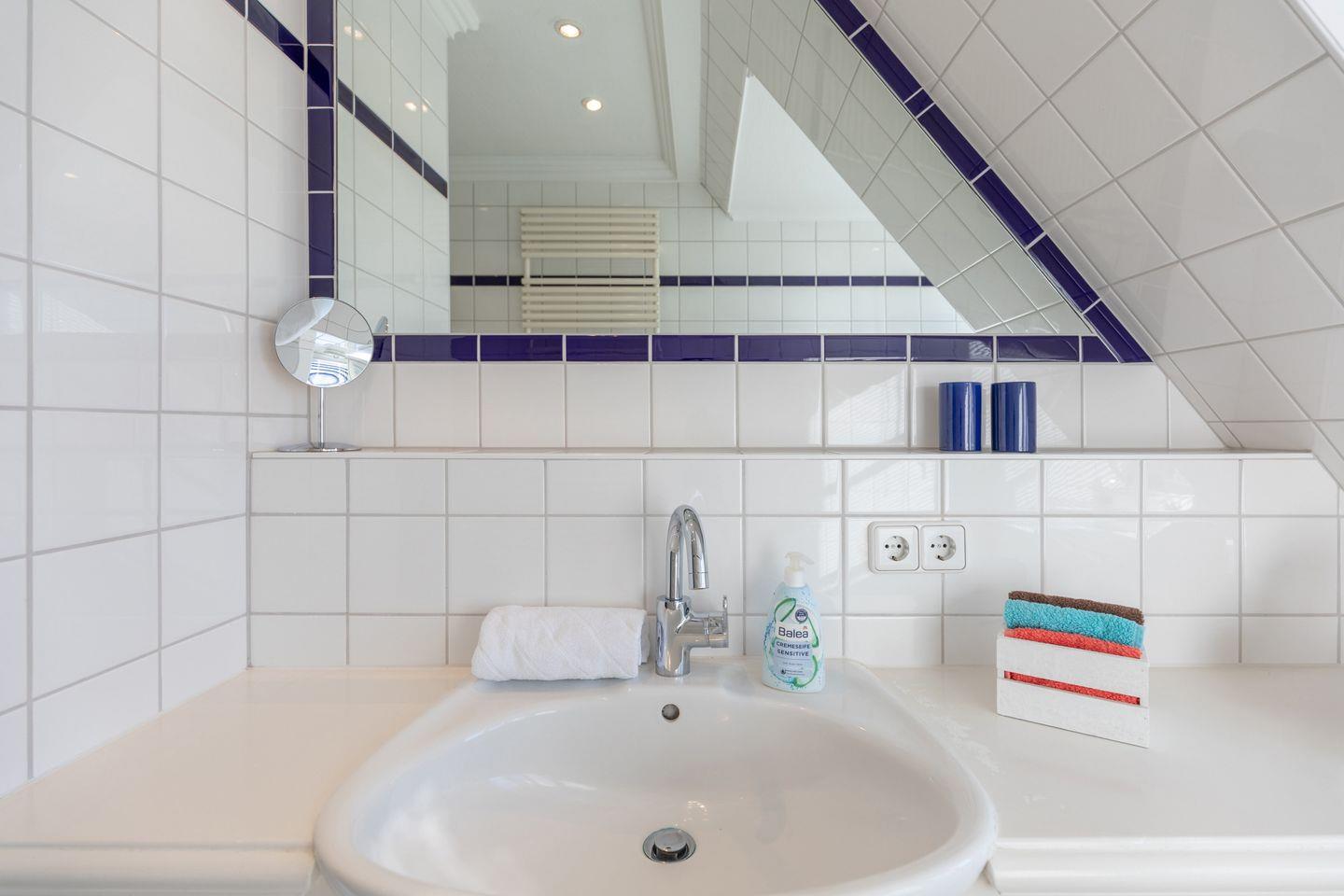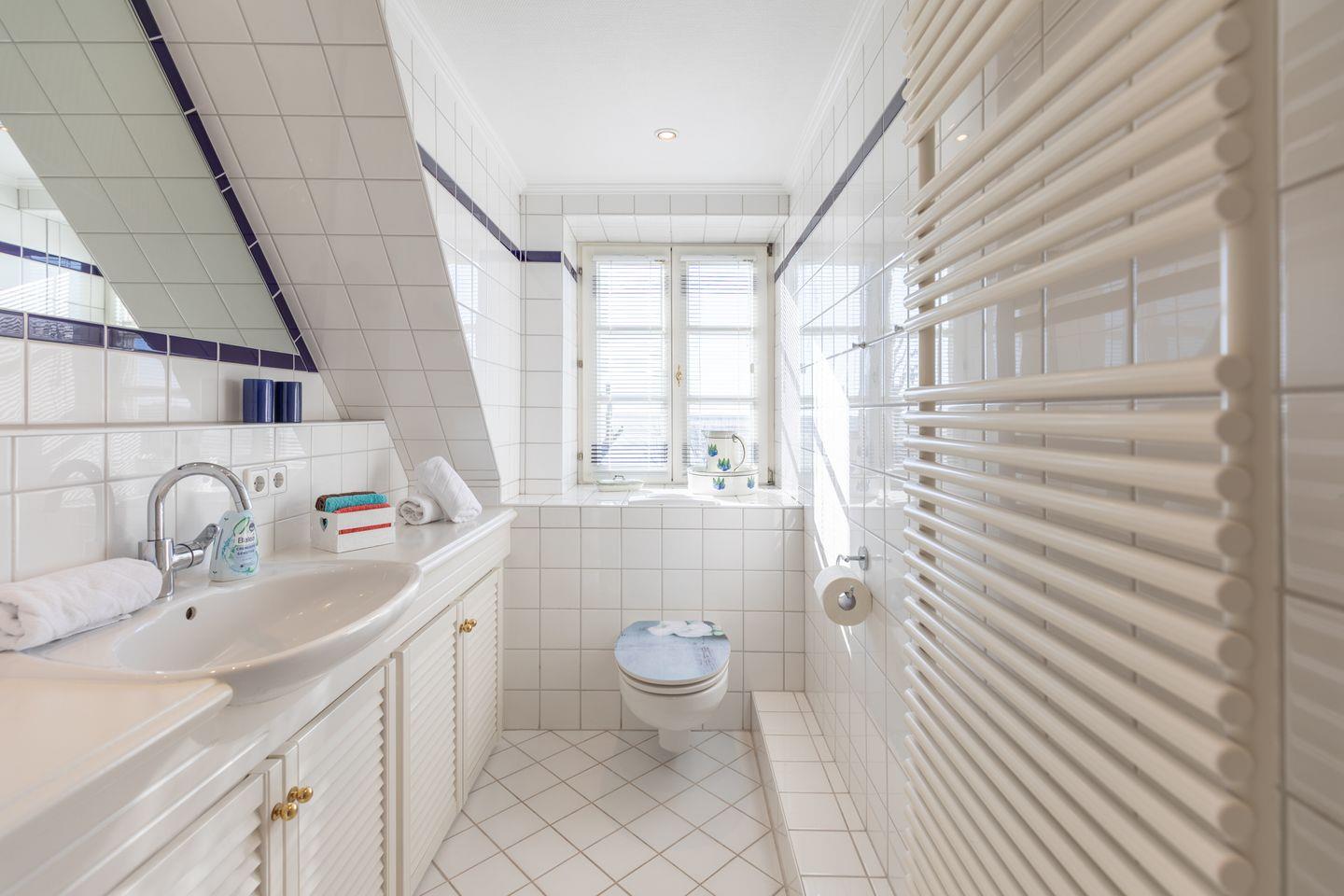 Das helle Badezimmer der Admiralswarft überzeugt mit einer Regendusche.