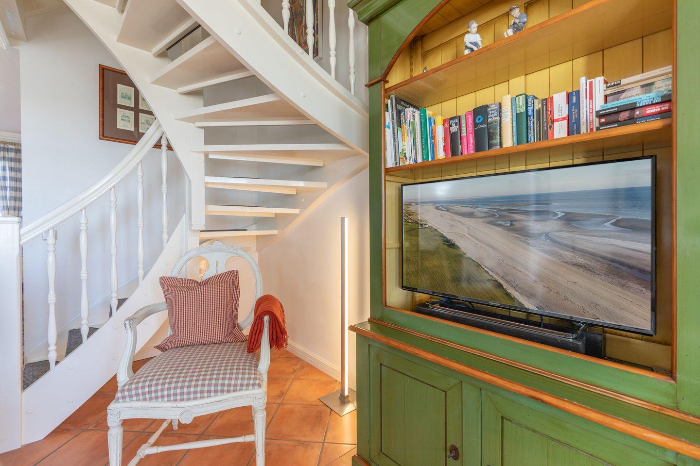Die Ferienwohnung befindet sich auf der charmanten Halbinsel Nordstrand und bietet einen idealen Rückzugsort für die ganze Familie. Umgeben von weiten Feldern bietet die Unterkunft auf dem Mitteldeich eine wunderbare Aussicht auf die typisch nordfriesische Landschaft. Das Reetdachhaus, in dem sich die Wohnung befindet, liegt nur wenige Meter von der Nordsee und den grünen Deichen Nordstrands entfernt. Ausgiebige Fahrradtouren am Deich entlang oder entspannte Stunden im Strandkorb - Die Admiralswarft ist der perfekte Ausgangspunkt für Ihren Nordseeurlaub! Mit den Adler Schiffen können Sie vom Strucklahnungshörn aus (1,5 Kilometer) interessante Ausflüge zu den Inseln und Halligen unternehmen. Die Stadt Husum, auch bekannt als "die graue Stadt am Meer", ist mit ihrem malerischen Hafen und zahlreichen Restaurants nur etwa 20 Kilometer entfernt.