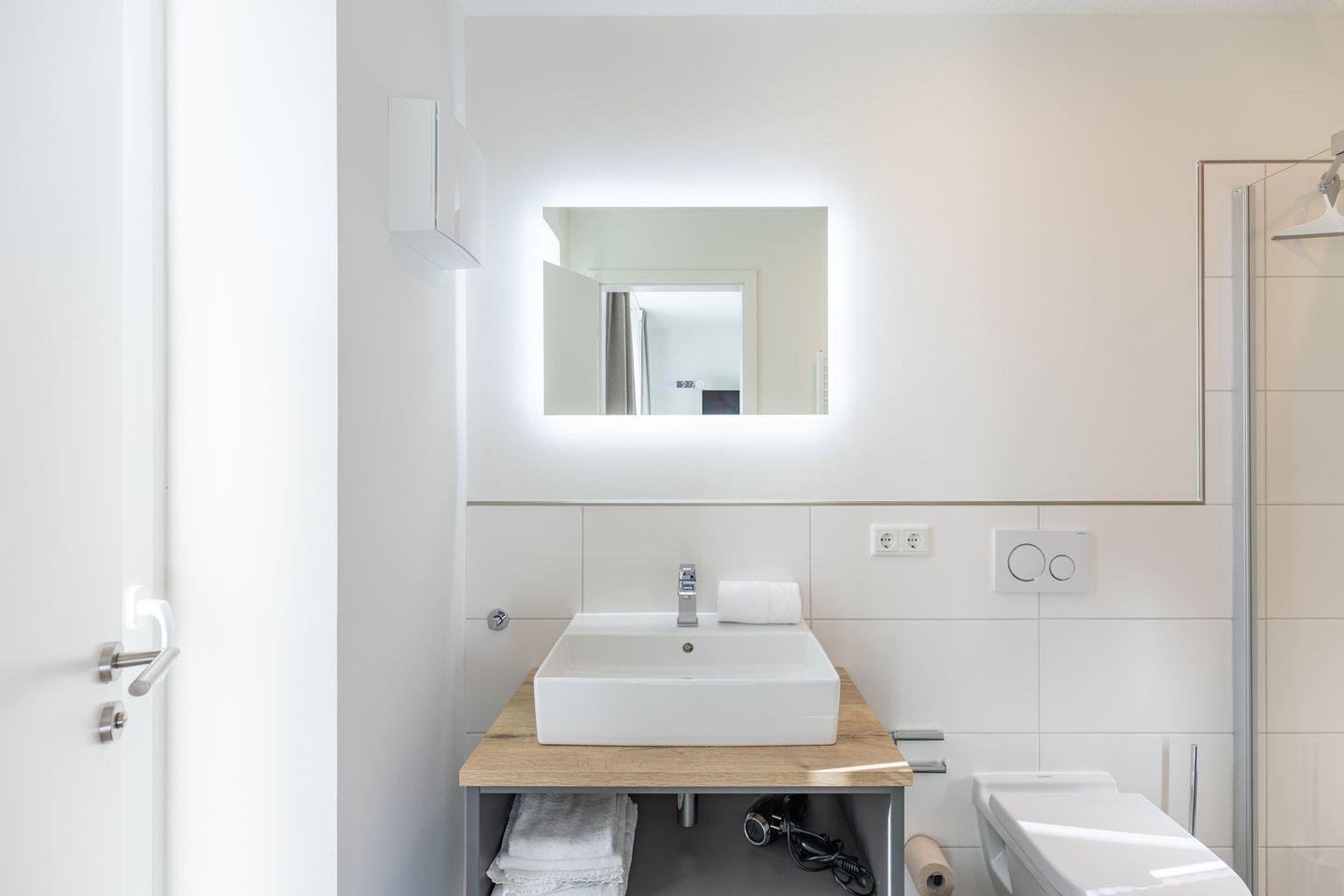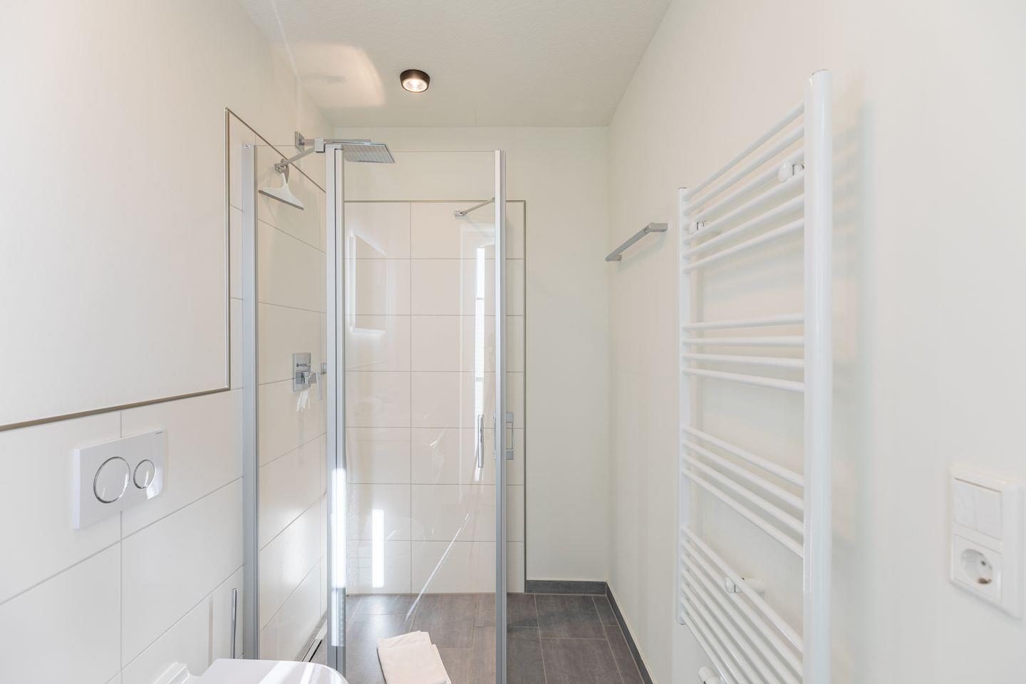 Das moderne Duschbad rundet das Bild ab.