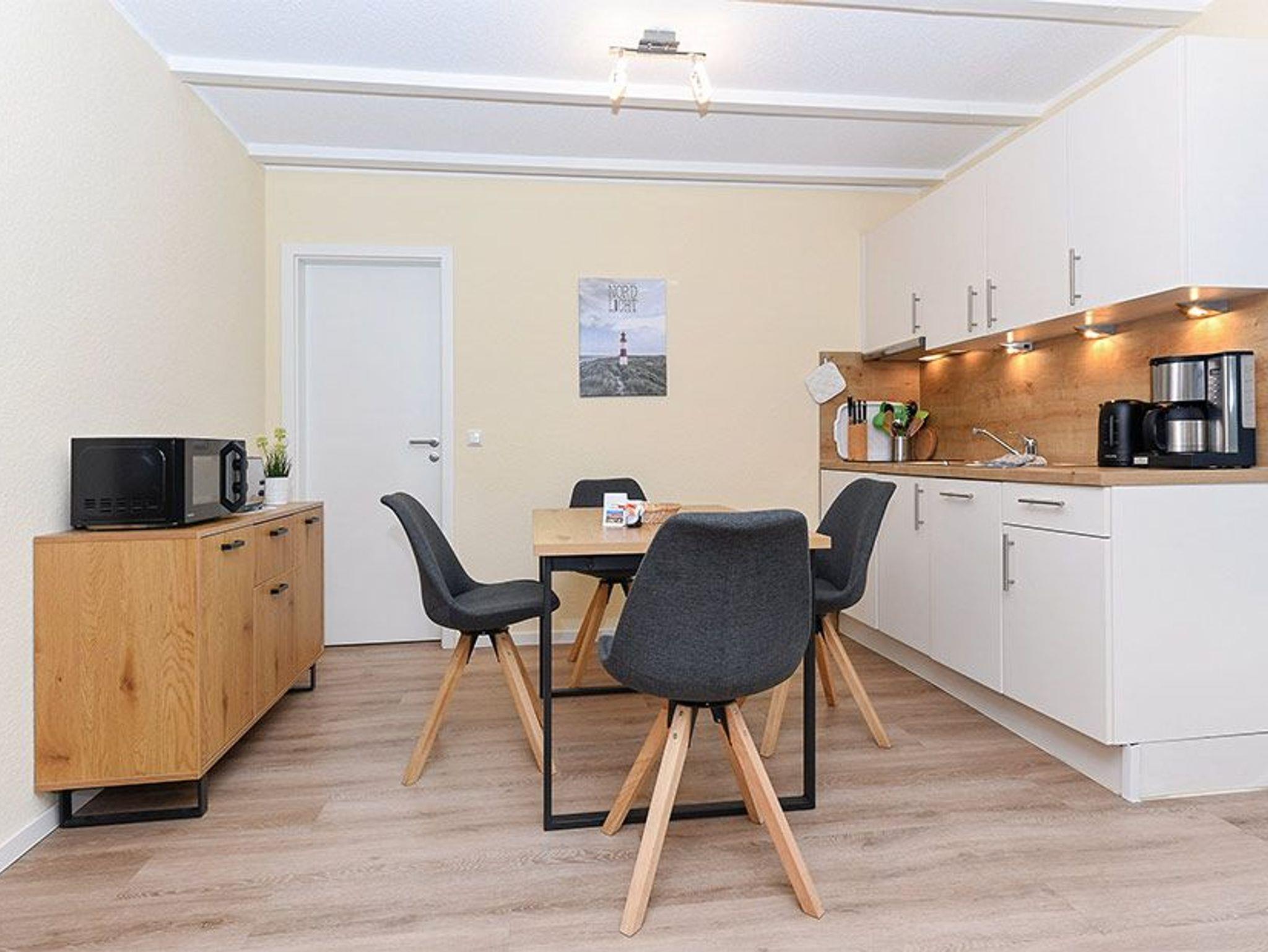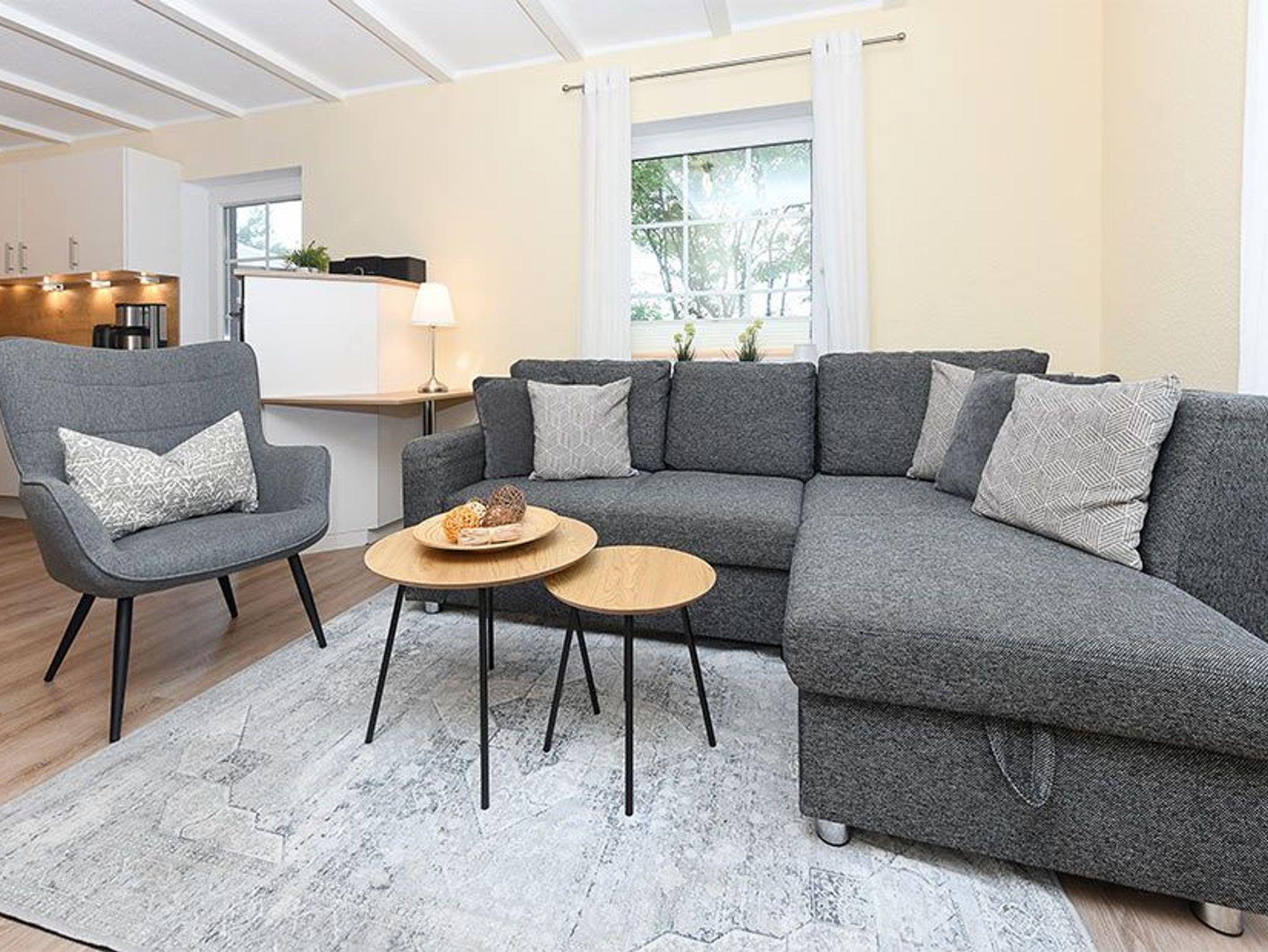 Größe ca. 60 Quadratmeter, Wohnraum mit integrierter Küche, Schlafzimmer, zweites separates Schlafzimmer/Kinderzimmer, Badezimmer mit Dusche, Waschtisch und WC, Erdgeschoss, Obergeschoss, Terrasse, optimal für 2 bis 4 Personen und zusätzlich ein Kleinkind.