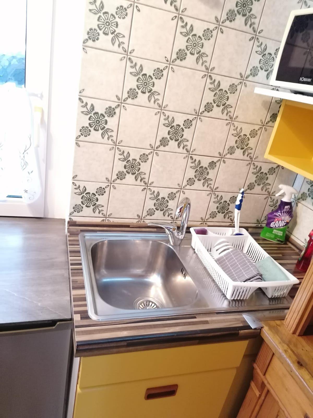 Inside, a cosily furnished domicile awaits you, equipped with all the necessities for a carefree stay. Despite its cosy size, the house has a practical kitchenette with a 2-plate hob and a capsule coffee machine for moments of enjoyment. The partial underfloor heating provides pleasant warmth on cooler nights. A kettle is also provided so that you can enjoy a hot drink at any time.