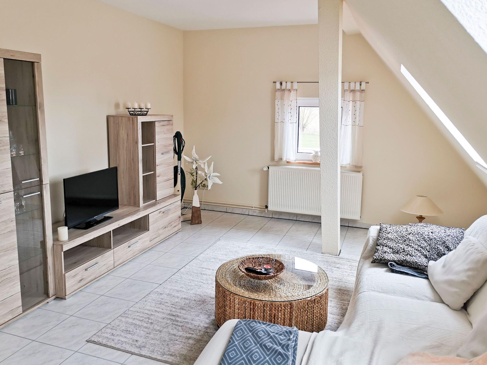 Die gemütliche Ferienwohnung Weideglück in Annenhof befindet sich im Dachgeschoss des Wohnhauses und ist bestens geeignet für 2 Personen und ein Kind bis 12 Jahren. Die Wohnung ist über eine eigene Außentreppe zu erreichen und verfügt über ein Schlafzimmer, ein Wohnzimmer, eine separate Küche und ein Bad mit Dusche und WC. Das Schlafzimmer mit seinem einladenden Doppelbett (180x200) und geräumigen Kleiderschrank lädt zum Träumen ein, während das Wohnzimmer mit seinem bequemen Sofa und dem unterhaltsamen Fernseher der perfekte Ort ist, um nach einem Tag voller Abenteuer zu entspannen.Für Kinder bis 12 Jahren kann ein Reisebett bzw. ein Campingbett aufgestellt werden. In der voll ausgestatteten Küche erwarten dich Backofen, Herd, Kühlschrank, Geschirrspüler und Kochutensilien, damit du hier ganz wie zu Hause kochen kannst.