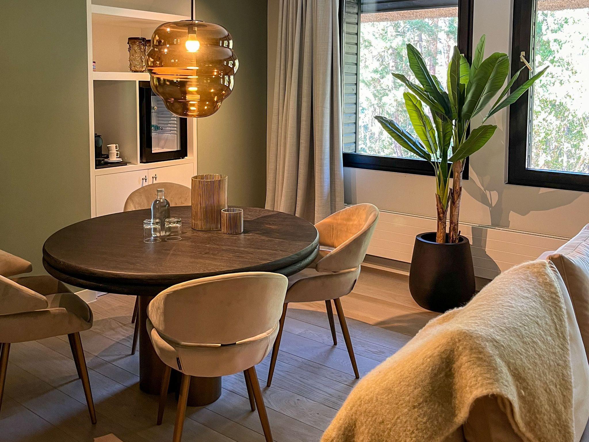 Die Suiten für 2 Personen am Drewitzer See im Van der Valk Naturresort Drewitz bieten auf ca. 50 m² eine stilvolle Kombination aus Komfort und Naturerlebnis. Ob im Erdgeschoss oder in der 1. Etage, hier erwartet dich ein hochwertig ausgestatteter Rückzugsort mit viel Platz zum Entspannen. Der Wohnbereich beeindruckt mit einer sonnendurchfluteten Atmosphäre und luxuriösem Interieur. Eine großzügige Couch mit gemütlicher Sitzecke lädt zum Verweilen ein, während ein großer Flatscreen-TV für entspannte Stunden sorgt. Der angrenzende Schlafbereich ist modern und stilvoll eingerichtet und bietet mit einem großen, komfortablen Doppelbett (160x200) den perfekten Ort für erholsame Nächte. Das Badezimmer überzeugt mit exklusiven Annehmlichkeiten und moderner Ausstattung. Eine großzügige Dusche, eine Badewanne und ein Doppelwaschtisch sorgen für ein entspanntes Wohlfühlambiente, während das WC separat untergebracht ist und zusätzlichen Komfort bietet. Damit du deinen Aufenthalt in vollen Zügen genießen kannst, ist bereits vieles inklusive. Ein vitales Frühstück am Morgen sorgt für den perfekten Start in den Tag, während dir kostenfreies WLAN zur Verfügung steht. Der Eintritt ins hauseigene Schwimmbad ist ebenfalls inbegriffen, sodass du jederzeit entspannen kannst. Zudem stehen dir kostenfreie Parkplätze direkt am Haupthaus zur Verfügung. Als kleine Aufmerksamkeit zur Begrüßung wartet neben der Mini-Bar eine Nespresso-Kaffeemaschine mit einer Auswahl an Kaffeekapseln auf dich. Bitte beachte, dass die gezeigten Fotos Beispielbilder der Suiten sind, sodass die Einrichtung und das Design variieren können. Doch eines bleibt gleich: die besondere Atmosphäre und der Komfort, die deinen Aufenthalt zu einem einzigartigen Erlebnis machen. Tauche ein in die entspannte Umgebung des Van der Valk Naturresorts Drewitz und genieße eine stilvolle Auszeit inmitten der unberührten Natur.