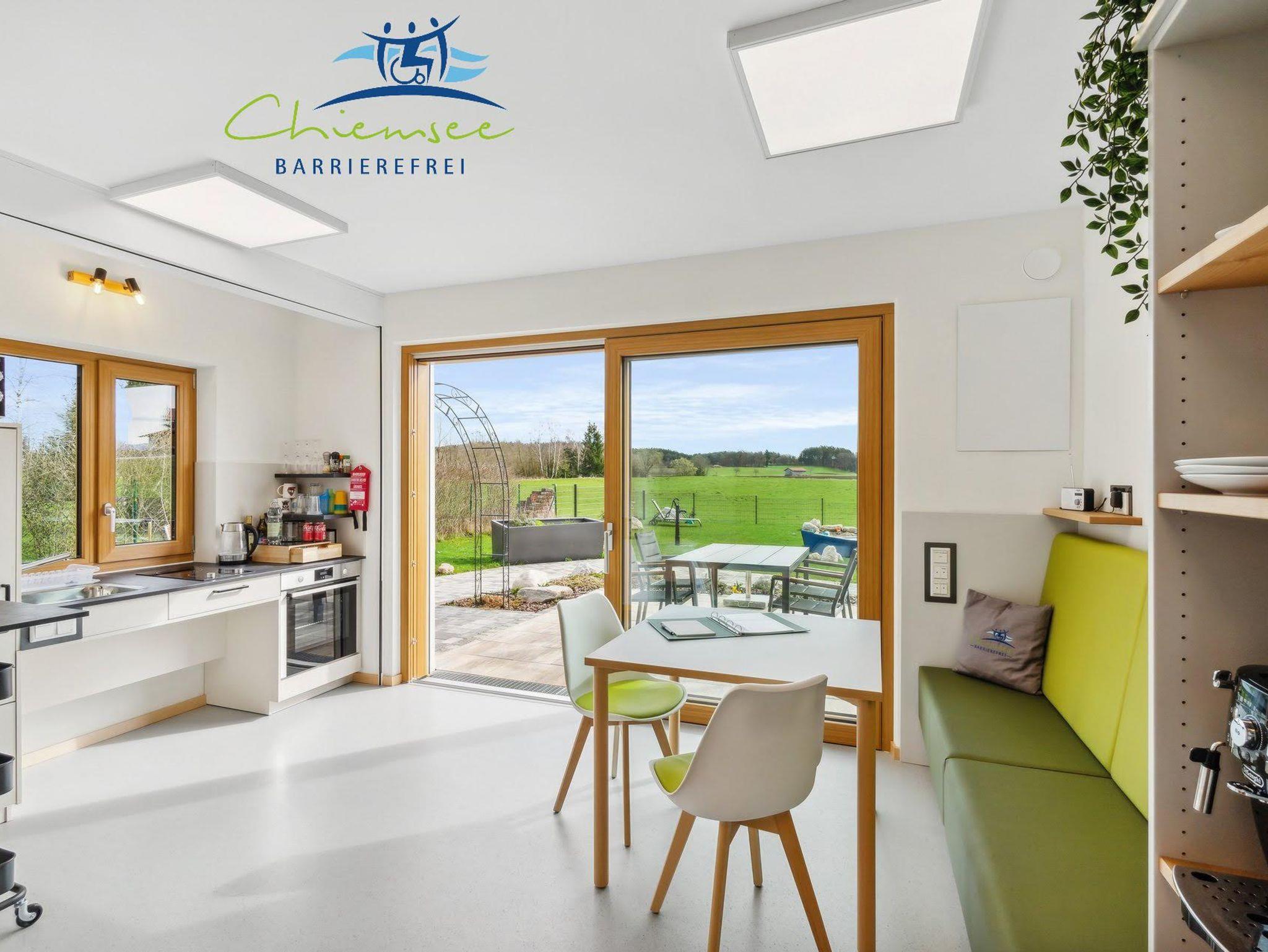 Unser Pflegeapartment hat 50qm, verteilt auf ein Schlafzimmer und einen Koch / Essbereich, sowie Pflegebadezimmer. Zudem haben Sie Ihre eigene Terrasse mit Panoramablick. Das Apartment hat eine eigene voll ausgestattete Küche. Es ist komplett nach DIN 18040 barrierefrei für Rollstuhlfahrer nutzbar und befindet sich schwellenfrei im Erdgeschoss. Alle Türen, Terrassentüren und Wendekreise mit 150cm sind auch für Pflegebetten / Krankenhausbetten nutzbar. Alternativ zum Pflegebett kann ein normales Bett bereitgestellt werden. Alle Informationen sind in leichter Sprache, sowie in Brailleschrift dargestellt. Mit Buchung des Pflegeapartments haben Sie kostenfreien Zugang zu Angeboten wie Fahrräder, Kettcars, Klang- / Erlebnisgarten usw. Selbstverständlich alles barrierefrei zugänglich. Ein Parkplatz, W-Lan, Bettwäsche, Endreinigung und Handtücherservice sind inbegriffen, auch steht unseren Gästen eine kostenfreie Waschmaschine mit Trockner zur Verfügung (nicht körperlich barrierefrei zugänglich). Das Pflegeapartment ist modern und ansprechend gestaltet. Wir bieten Ihnen eine Duschliege, sowie Hebelifter, sowie Duschstuhl an. Zusätzlich benötigte Pflege- / Assistenzhilfsmittel können auf vorherige Anfrage bereitgestellt werden. Auch ein kostenfreies Baby-Zustellbett ist auf Anfrage erhältlich. Sie können das Pflegeapartment mit bis zu drei Personen beziehen.Haustiere sind vorbehaltlich willkommen. Nutzen Sie unser Pflegeapartment als Ausgangspunkt für Tagesausflüge zum Chiemsee, in die Alpen und die umliegenden historischen Altstädte. Wir von Chiemsee barrierefrei beraten Sie gerne.