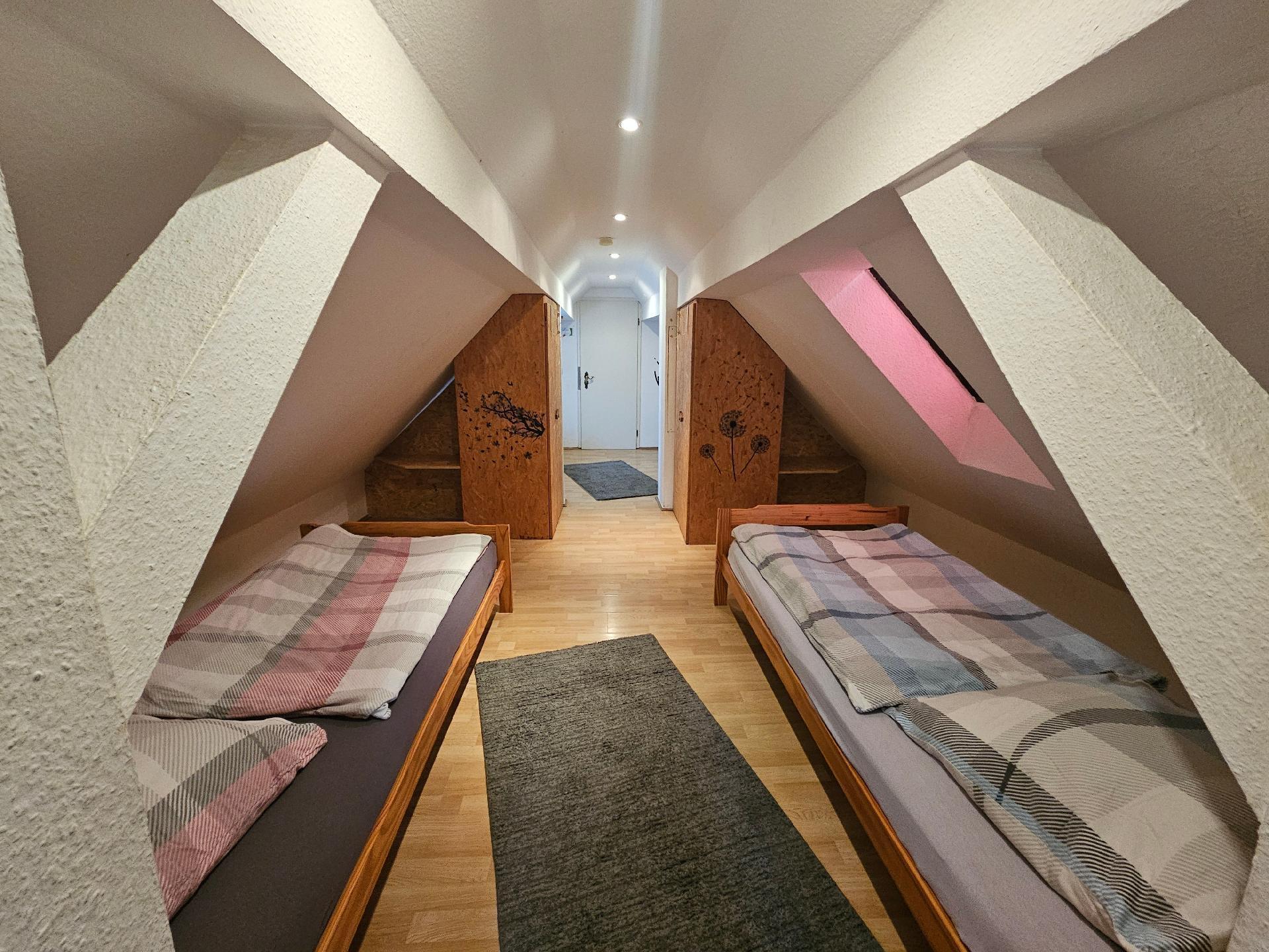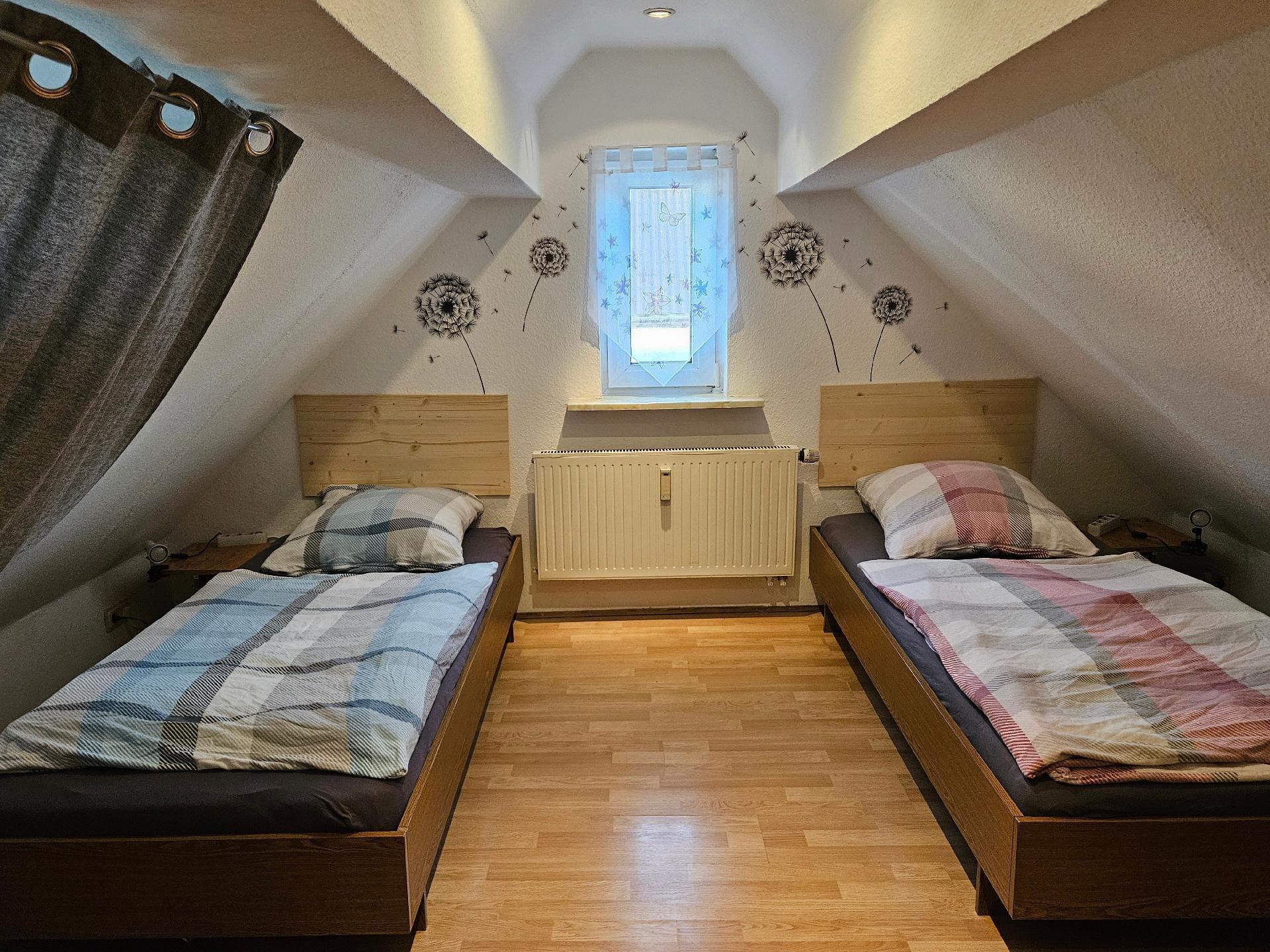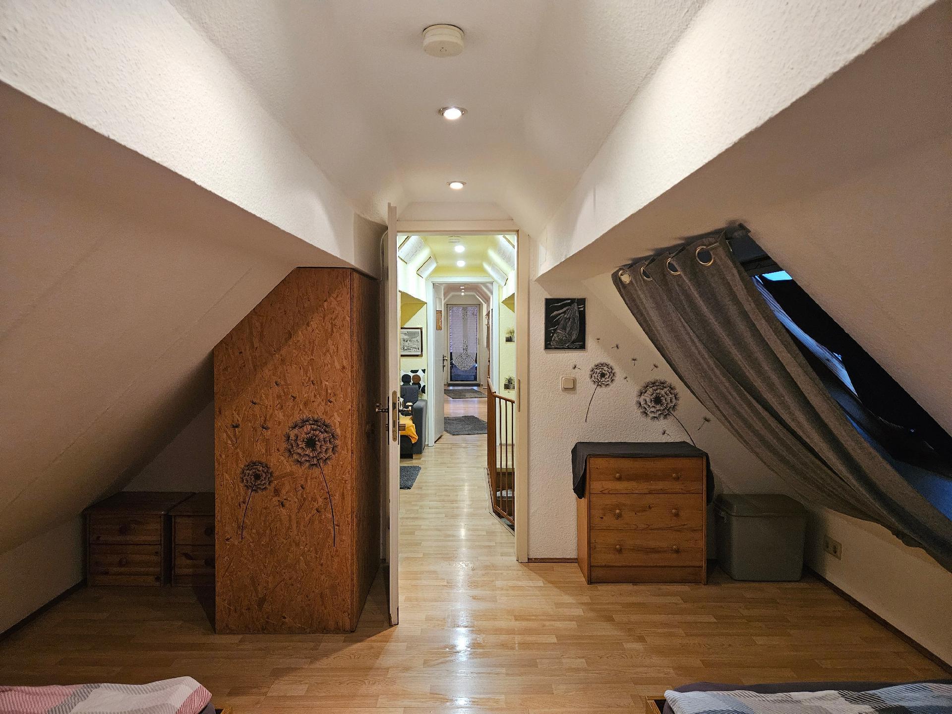 The internal staircase takes you to the maisonette flat on the top floor. No lift available. This is suitable for a maximum of six people and has two bedrooms. One of them is a quadruple room and has a covered, secluded, 10 m² balcony with table and chairs, so that smokers don't miss out either. In the lower part of this flat you will find the eat-in kitchen with a large dining table, fully equipped kitchen with fridge***, cooker with ceramic hob and oven as well as extractor bonnet, sink and dishwasher, coffee machine, kettle, microwave, crockery, the daylight bath with additional shower and WC.