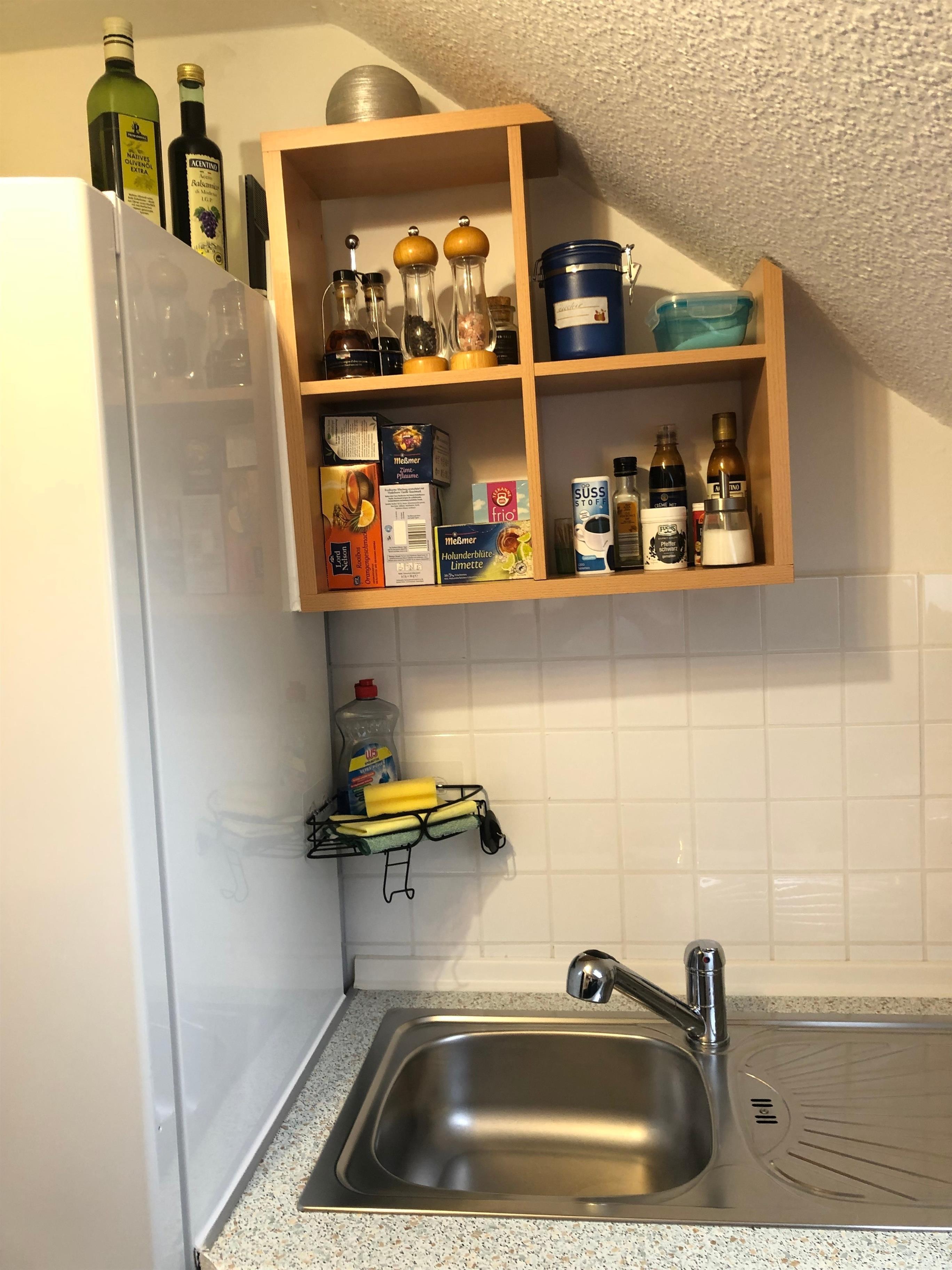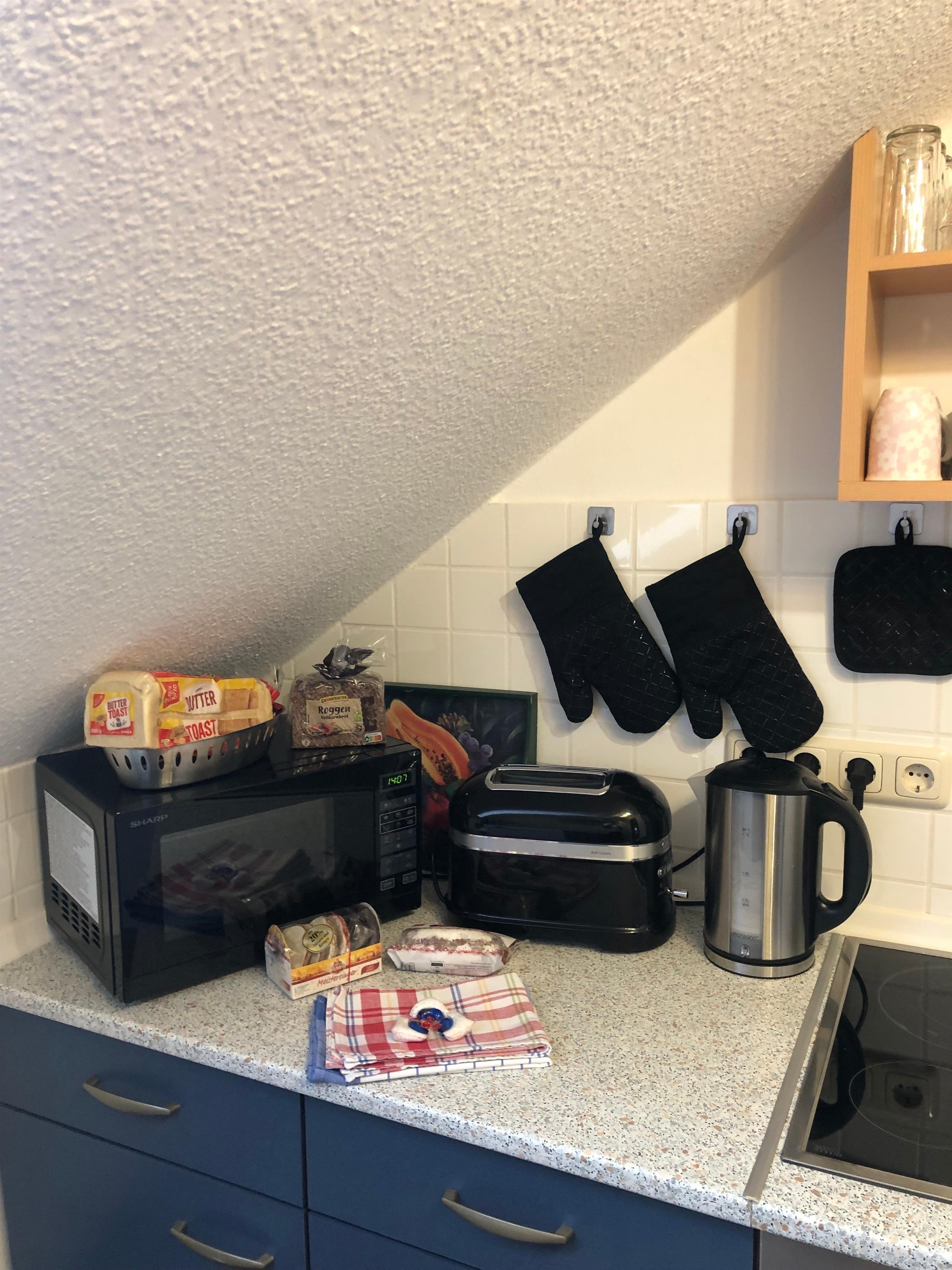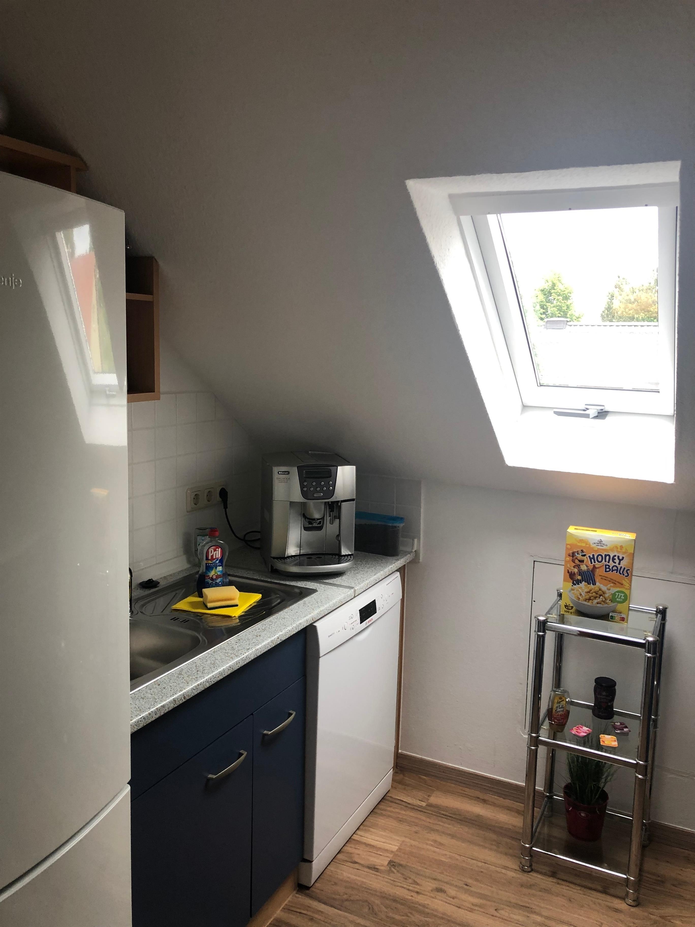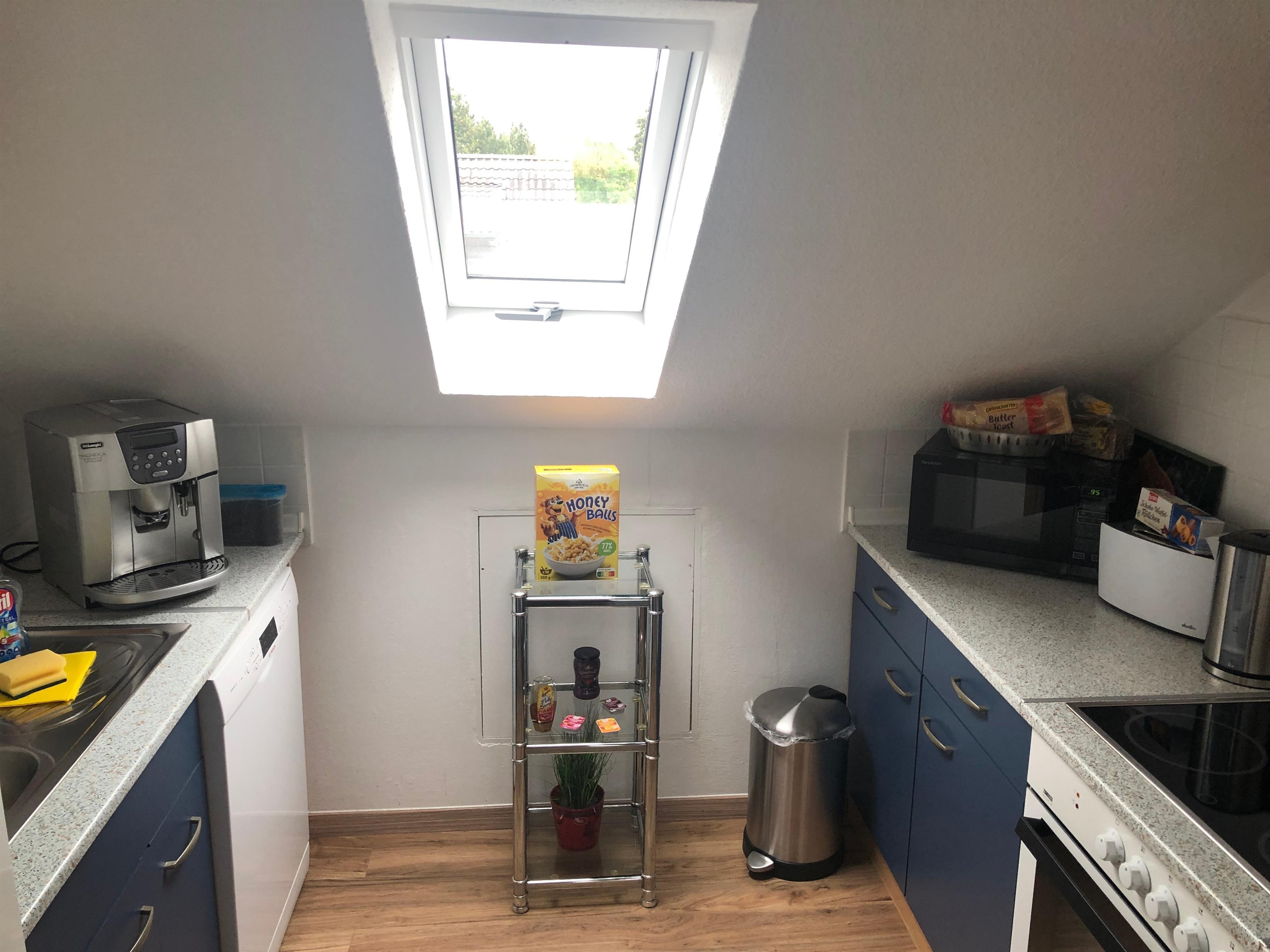 Es erwartet Sie eine komplett eingerichtete separate Küche mit Kaffeevollautomat, Mikrowelle, Kühl-Gefrierschrank, Spülmaschine und Backofen mit Herd. Es sind alle notwendigen Küchenutensilien vorhanden.