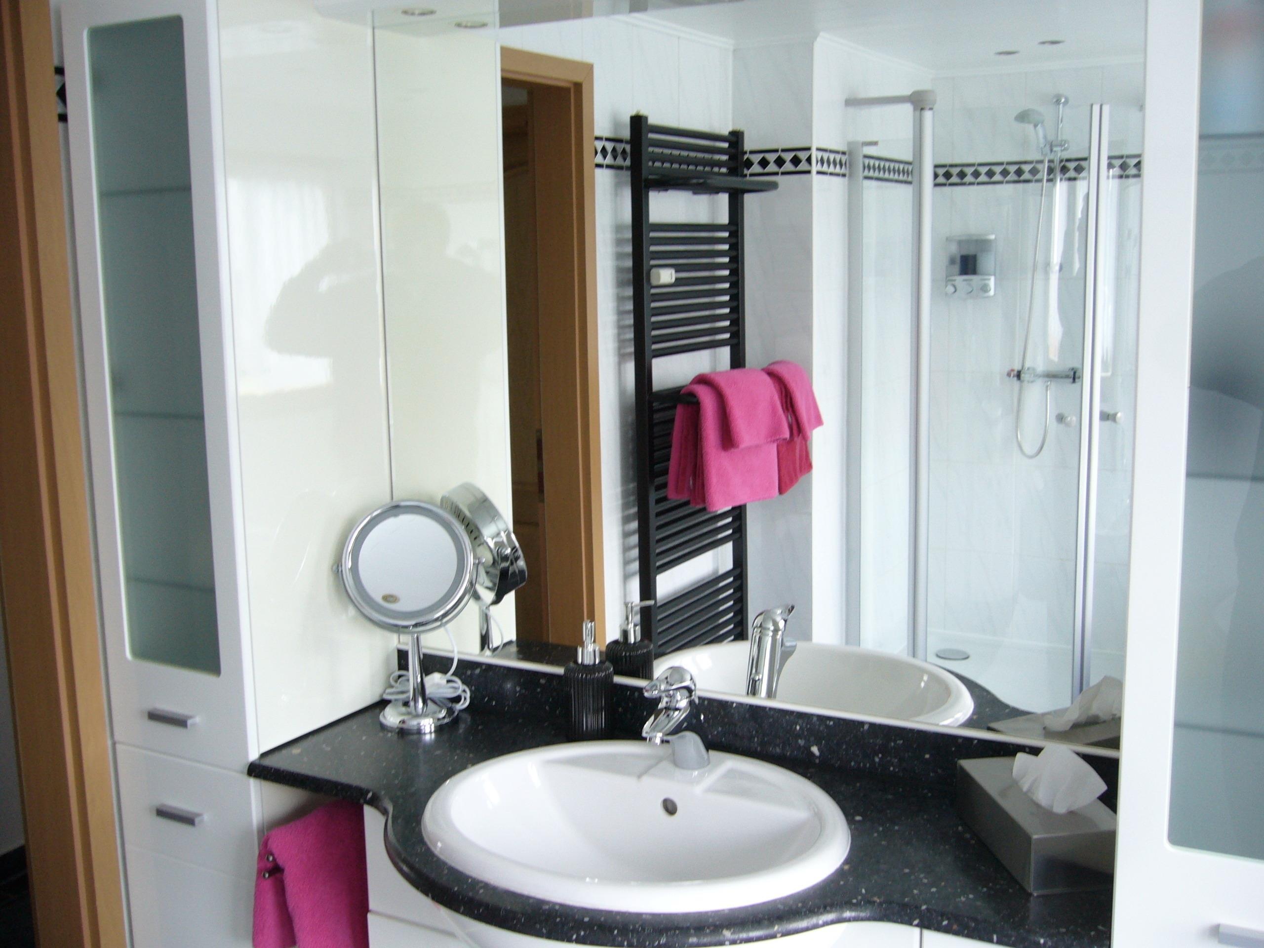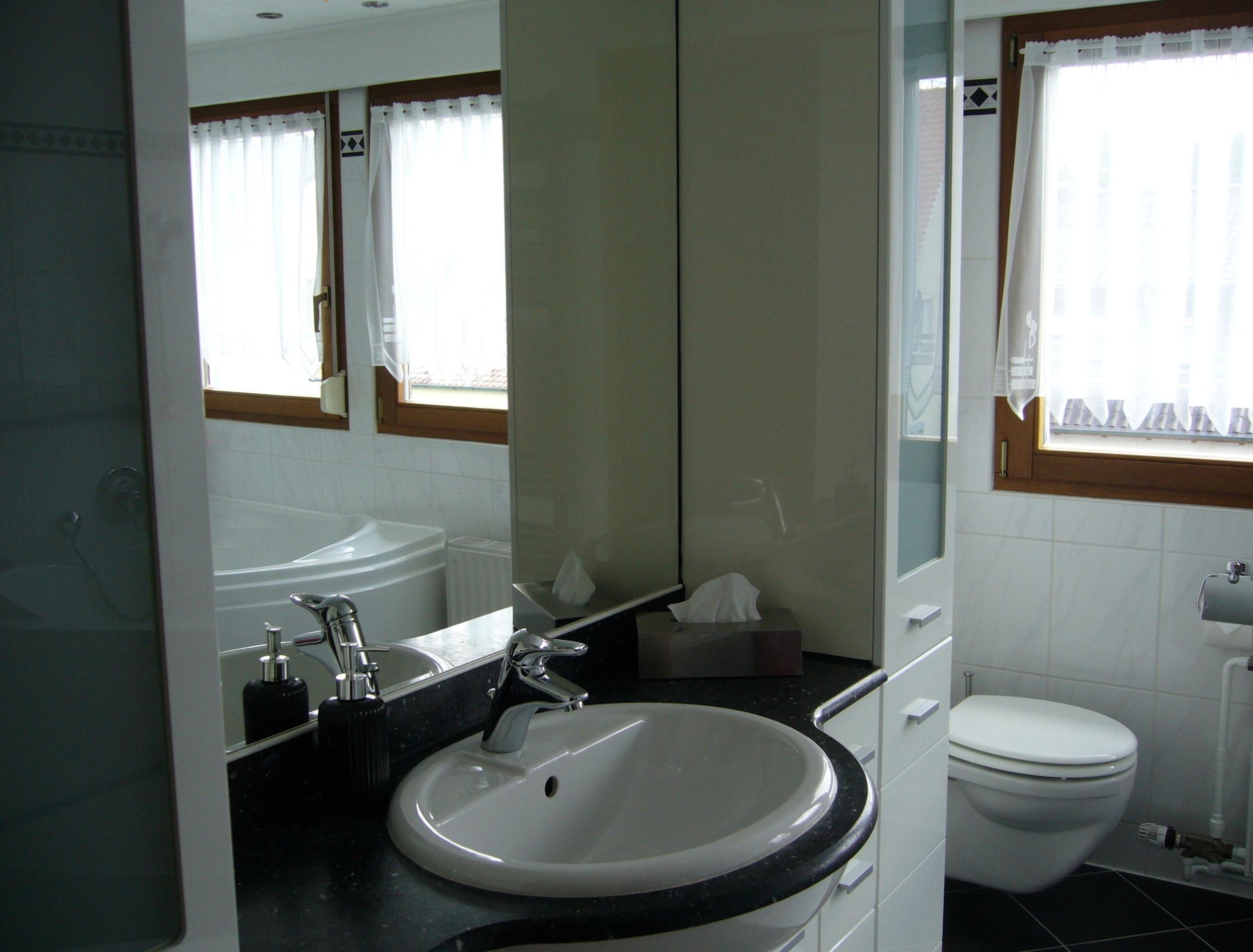 Im Badezimmer wird Sie die XXL Badewanne überraschen, dazu finden Sie eine Dusche, ein Waschbecken und ein WC.