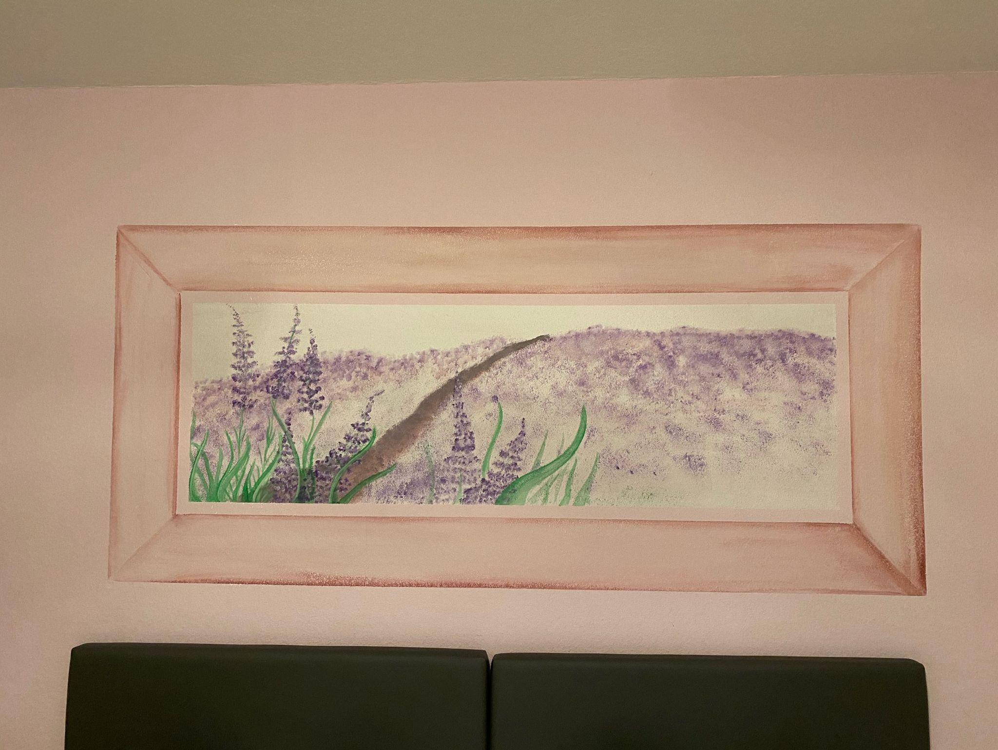 Das Dreibettzimmer Lavendel verfügt über ein Boxspringbett mit 200/210 und einen Schlafsessel 90/200 zum Ausziehen für die 3. Person. Das renovierte Bad, ausgestattet mit Dusche, Waschbecken und WC befindet sich gegenüber vom Zimmer und ist zur alleinigen Benutzung. Zum Verweilen steht Ihnen ein Balkon mit dem Blick in die Berge zur Verfügung. Das Zimmer ist mit einem Tisch und Sitzmöglichkeiten, einem Kleiderschrank, TV und kostenlosem WLAN ausgestattet. Von 08:00 bis 09:30 Uhr verwöhnen wir Sie mit unserem Frühstücksbuffet. Ein Gästekühlschrank mit alkoholischen und nicht alkoholischen Getränke steht für Sie bereit.
