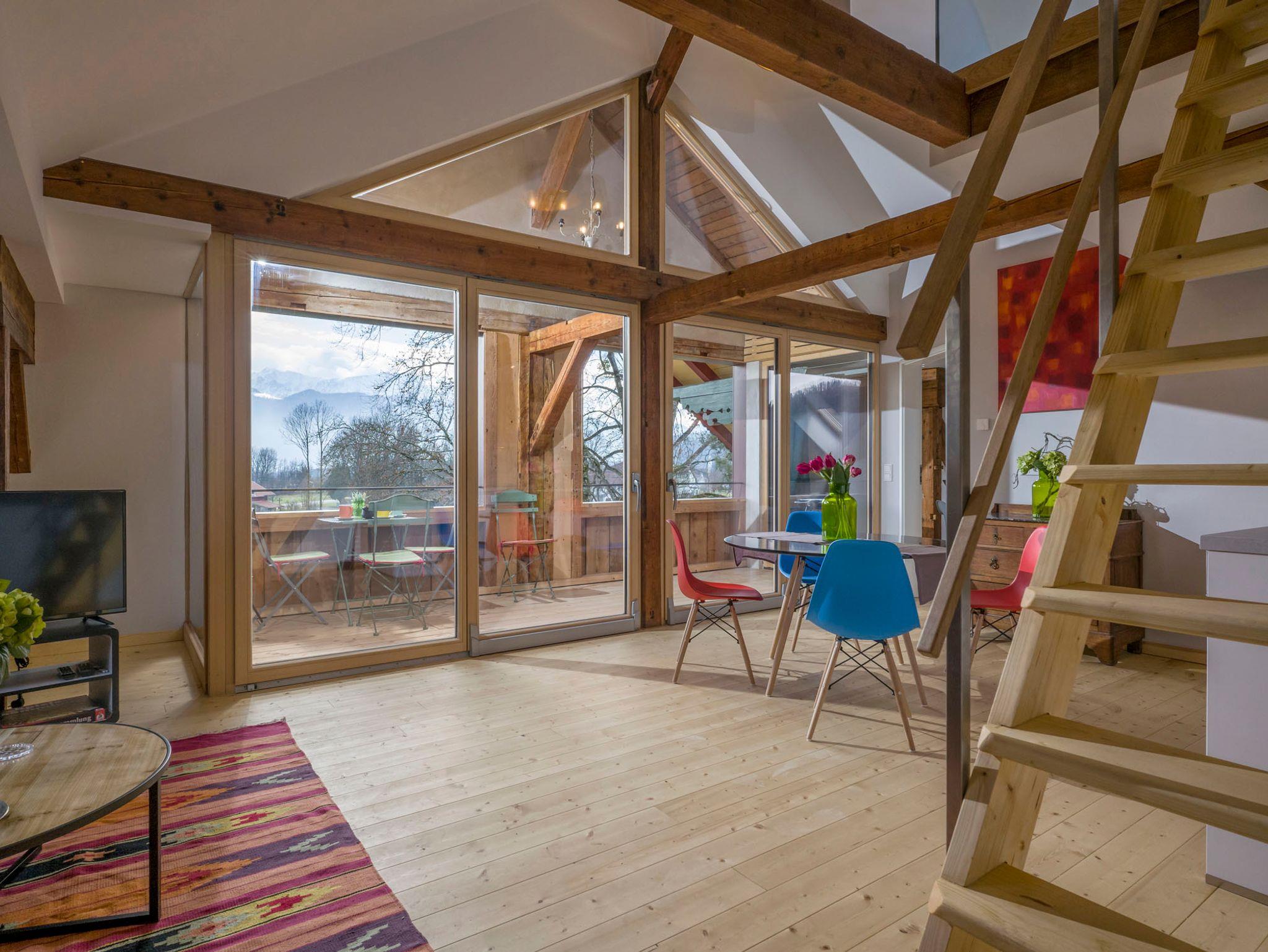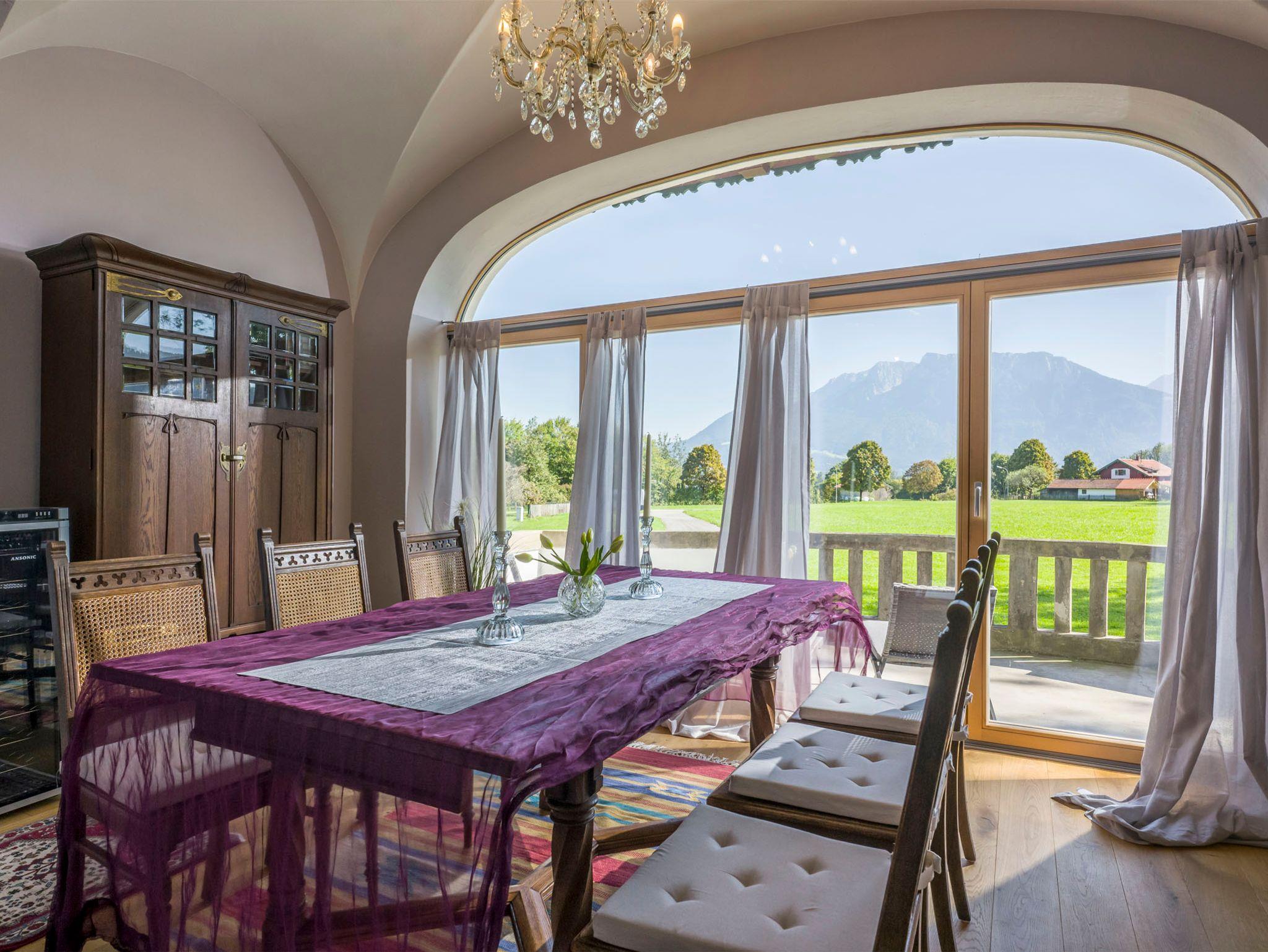 Genießen Sie Ihre Ferien in einer herrschaftlichen Jugendstilvilla, die Ende des 19. Jahrhundert durch den Hofarchitekten von Ludwig II gebaut wurde. Umgeben von der spektakulären Bergwelt des Inntals. Mit seinen Wiesen und Wäldern erleben Sie entspannende Tage inmitten des Landschaftsschutzgebietes. Die umliegenden Wiesen laden zum Ausruhen ein und der hinter dem Haus fließende Auerbach lädt mit seinen Gumpen im Hochsommer zum Baden ein. Das Skigebiet Hocheck ist in Sichtweite und in wenigen Minuten zu erreichen. WLAN kostenlos.