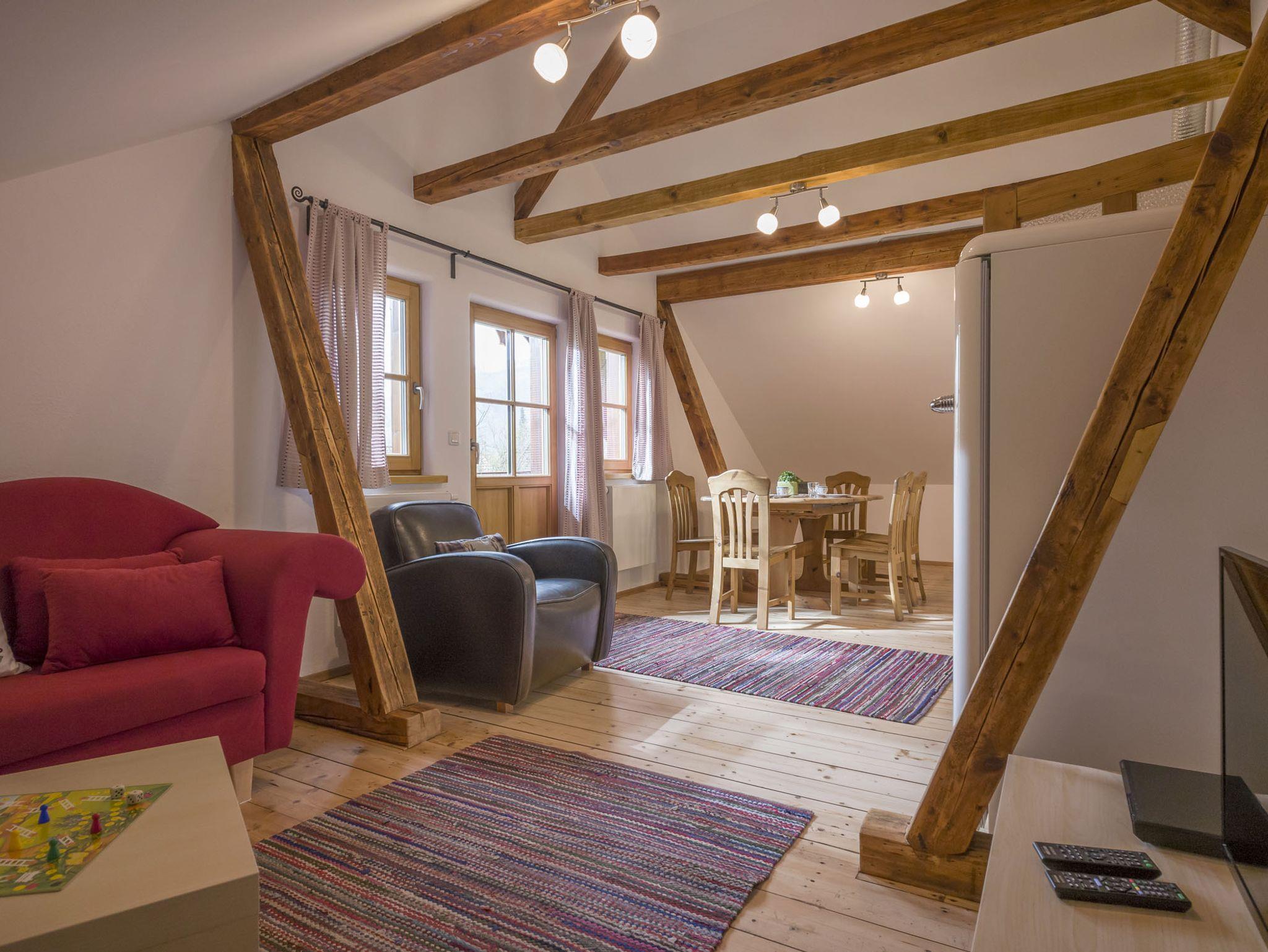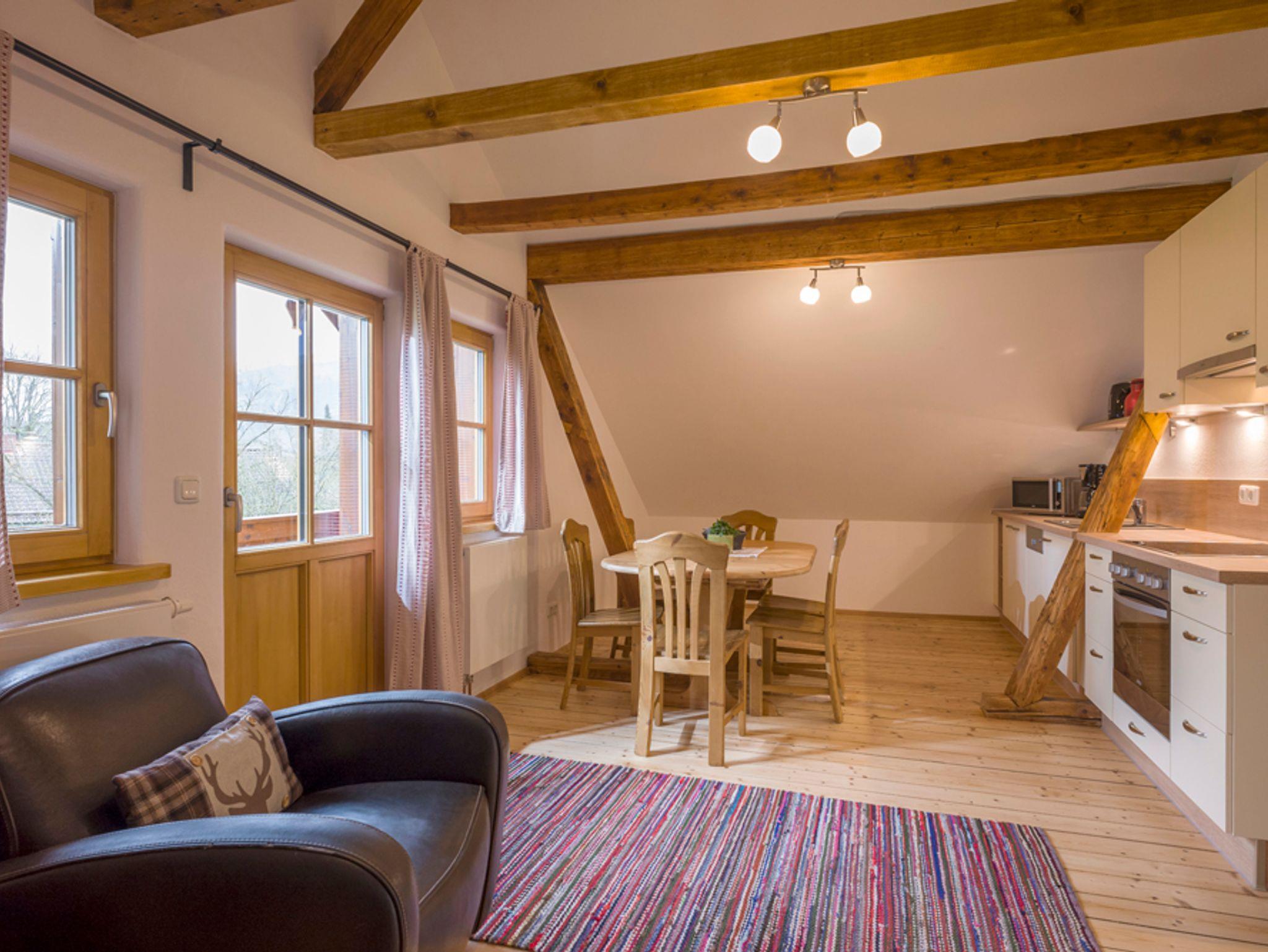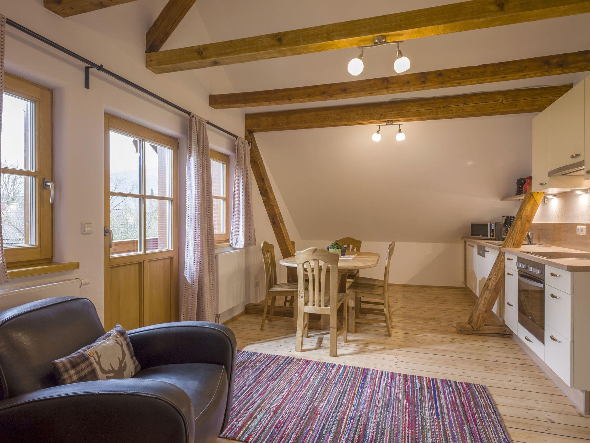 Die gemütliche Ferienwohnung im Landhausstil bietet Platz für 2 bis 4 Personen und beste Sicht auf die umliegende Bergwelt. Die Ferienwohnung Kohl ist der perfekte Ausgangspunkt für Unternehmungen jeder Art. Im Sommer stehen im großen Garten Trampolin, Schaukel, Spielgeräte, eine Liegewiese und Gartenmöbel bereit. Im Winter finden Wintersportler den Einstieg in die Langlaufloipe direkt am Haus. Für Skifahrer gibt es im Ort einen Sessellift, der Sie in das Skigebiet am Hocheck befördert. Parkplätze gibt es direkt am Haus. Ein Fahrradunterstand sowie Baby-/Kleinkindausstattung sind ebenfalls vorhanden. WLAN kostenlos.