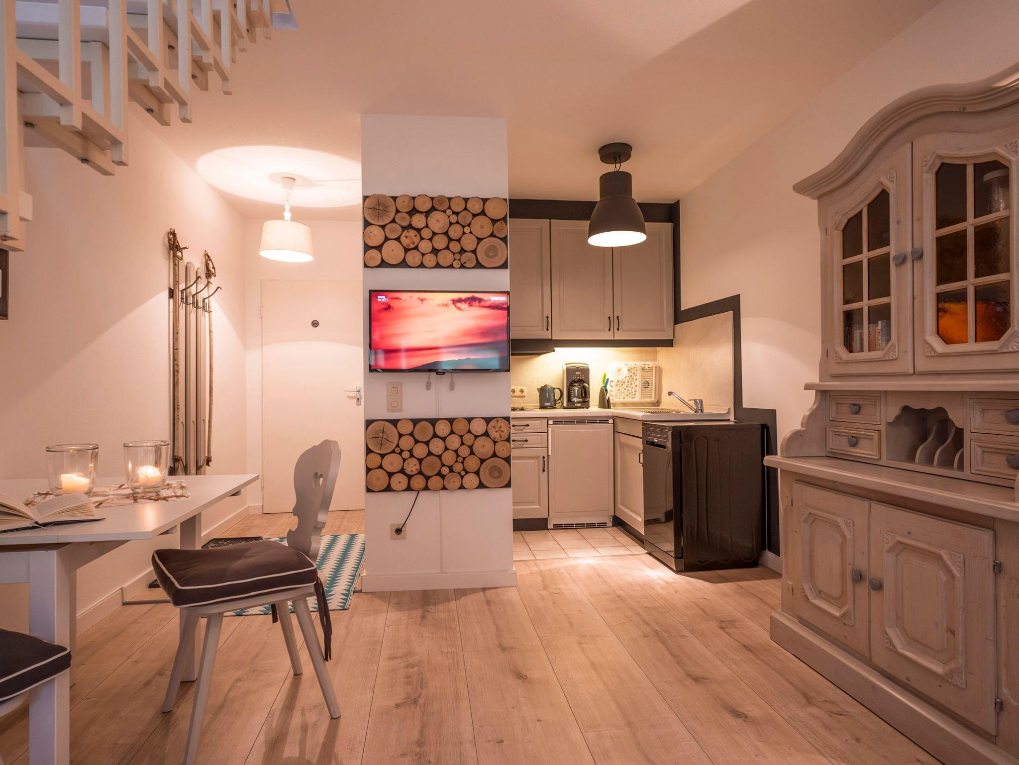 Die neu renovierte Maisonettewohnung verfügt über ein großes Wohnzimmer mit Flachbildfernseher und eine Ausziehcouch sowie eine Küchenzeile die mit einer Spülmaschine und einem 2-Plattenherd ausgestattet ist. Außerdem befinden sich in der Küche ausreichend Geschirr, Besteck sowie Kochutensilien. Der Essbereich ist im Wohnbereich integriert. Das Badezimmer verfügt über eine Dusche und das WC ist separat. Dieses befindet sich wie das Schlafzimmer im oberen Stockwerk. Der Balkon mit herrlichem Blick über Oberaudorf und auf das Kaisergebirge lädt zum Verweilen ein.