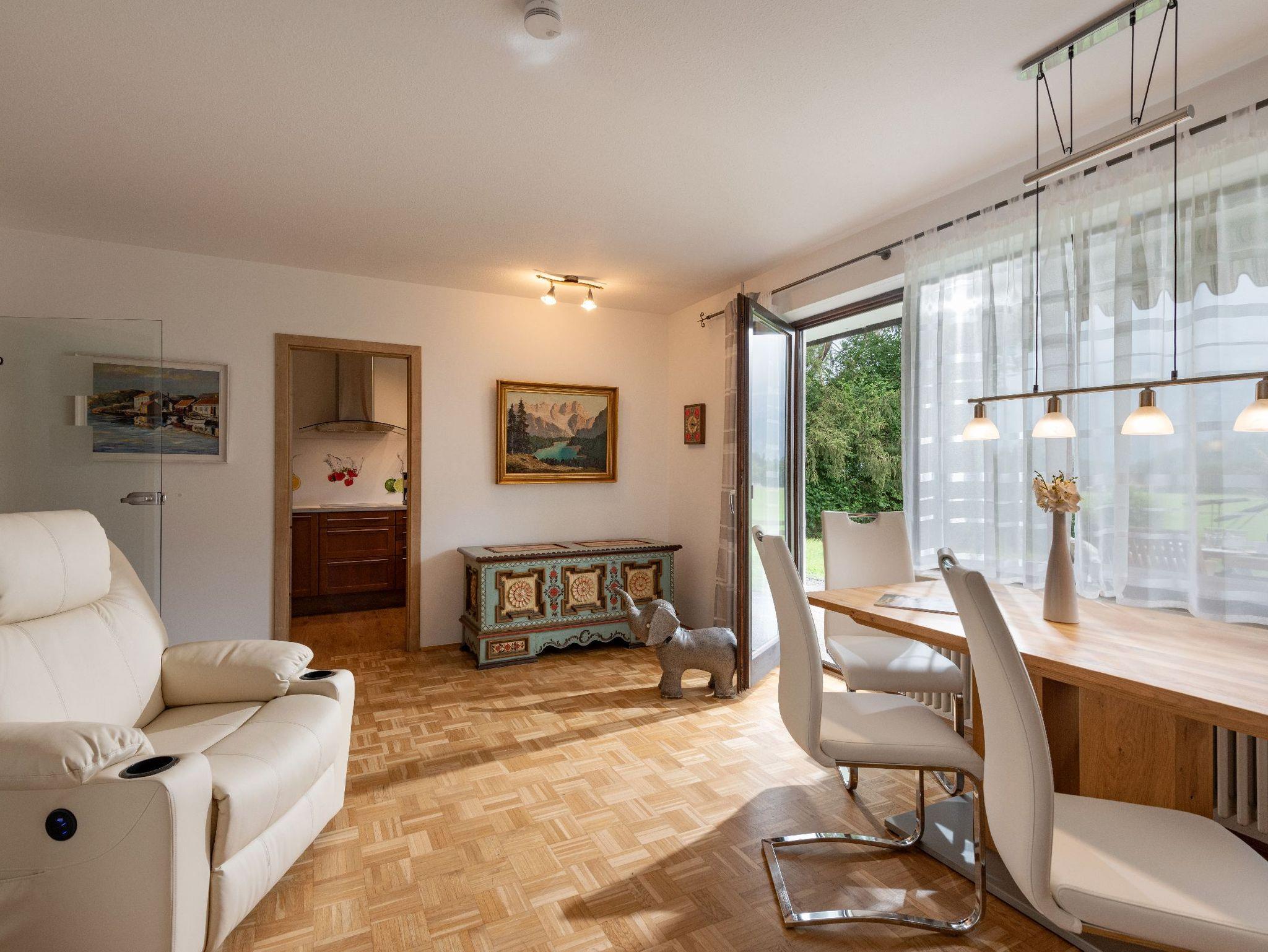 Die Ferienwohnung Panoramablick im Erdgeschoss ist 75m qm groß und bietet eine hervorragend ausgestatte Küche mit Geschirrspüler sowie Waschmaschine und Trockner, ein großzügiges Schlafzimmer, ein Badezimmer mit Dusche sowie ein gemütliches Wohnzimmer mit Essecke. Eine geräumige Terrasse mit freiem Blick auf das Ortszentrum sowie Bergblick auf das Kaisergebirge lädt zum Genießen ein. In der Wohnung ist kostenloses Wlan verfügbar. Eine Klimaanlage ist vorhanden. Vor der Unterkunft finden Sie eine kostenfreie Parkmöglichkeit.