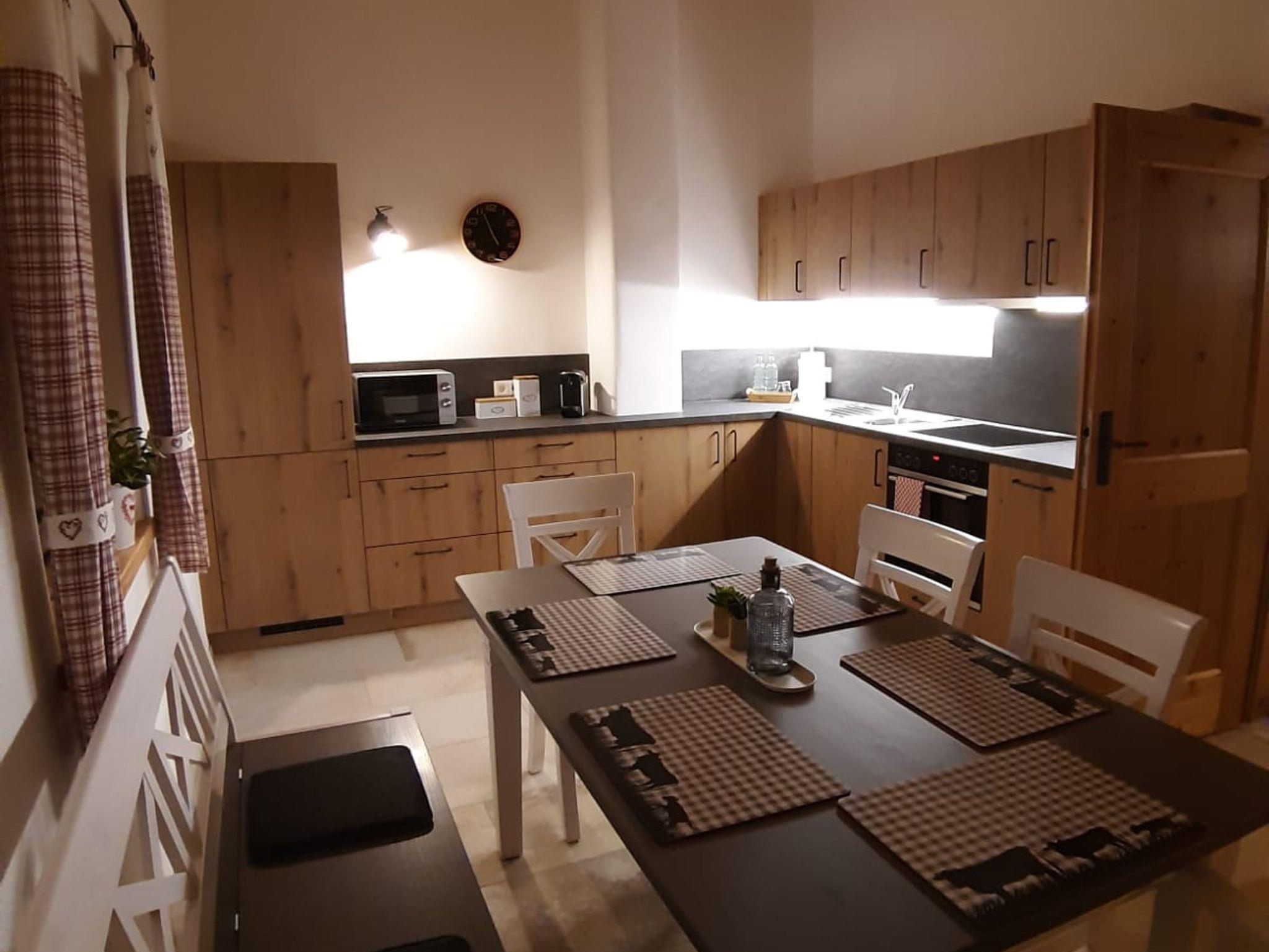 Unsere FeWo Brünnstein liegt im Dachgeschoss des Hauses und hat ca. 75 qm. In der gesamten Wohnung wurde ein Sichtdachstuhl mit elektrischen Dachfenstern verbaut. Sie verfügt über ein großes Elternschlafzimmer mit Doppelbett und TV, sowie über ein separates Schlafzimmer mit 2 Einzelbetten. Ein großer Wohn- & Essbereich mit integrierter Küche ist in der Wohnung ebenfalls zu finden. Dort ist ein TV mit großer Schlafcouch, ein Essplatz für 6 Personen und eine vollausgestattete Küche. Im Badezimmer finden Sie eine Regendusche mit LED-Beleuchtung, Föhn und Kosmetikspiegel sowie einen Handtuchtrockner. Der großzügige Eingangsbereich der Wohnung bietet Platz für eine Garderobe und weitere Schränke zur Aufbewahrung Ihrer persönlichen Dinge. Zusätzlich dürfen Sie unseren Skiraum im EG nutzen und erhalten einen kostenlosen WLAN-Zugang. Für Ihr Auto ist ein Stellplatz direkt vor dem Haus reserviert.