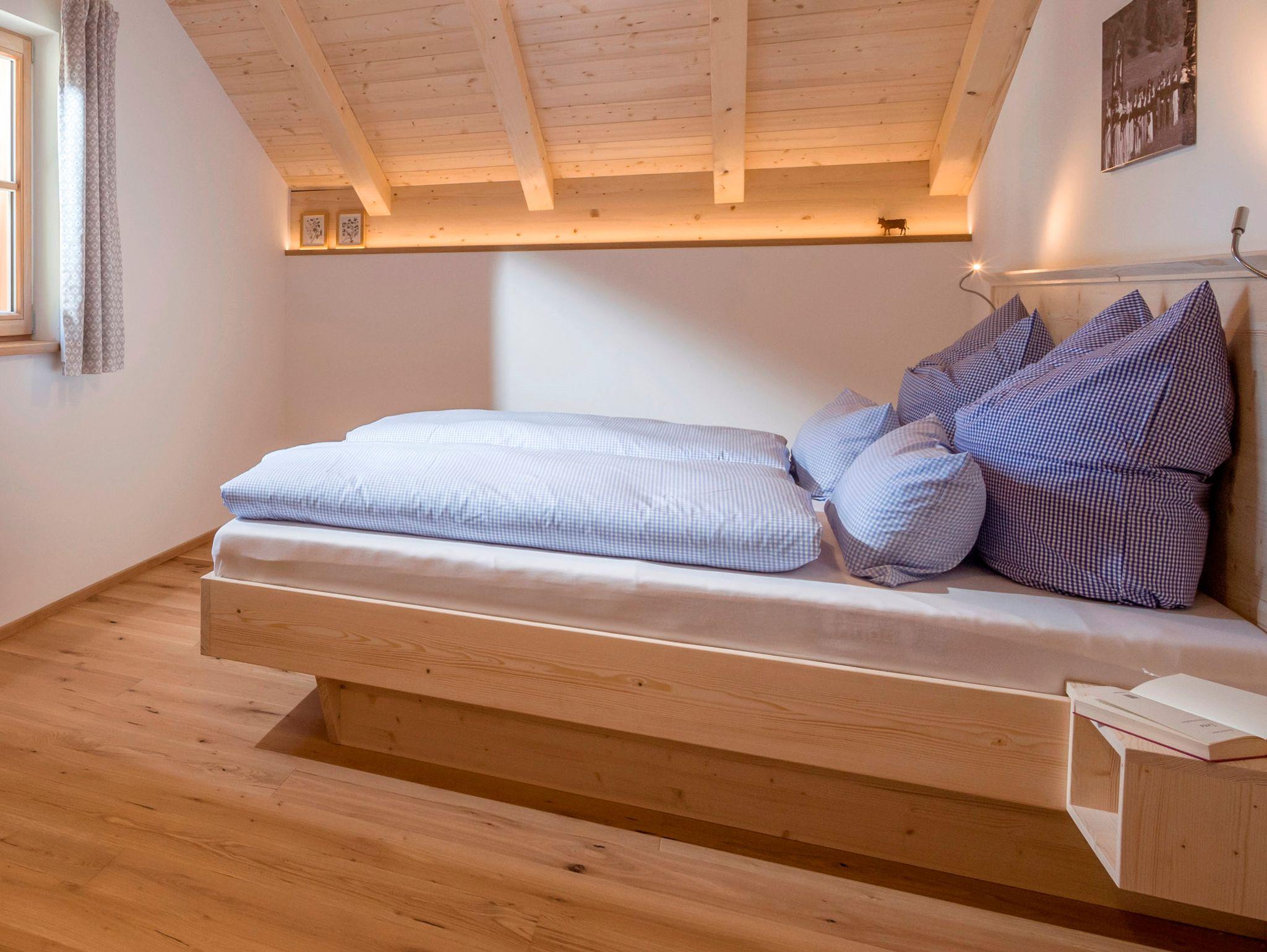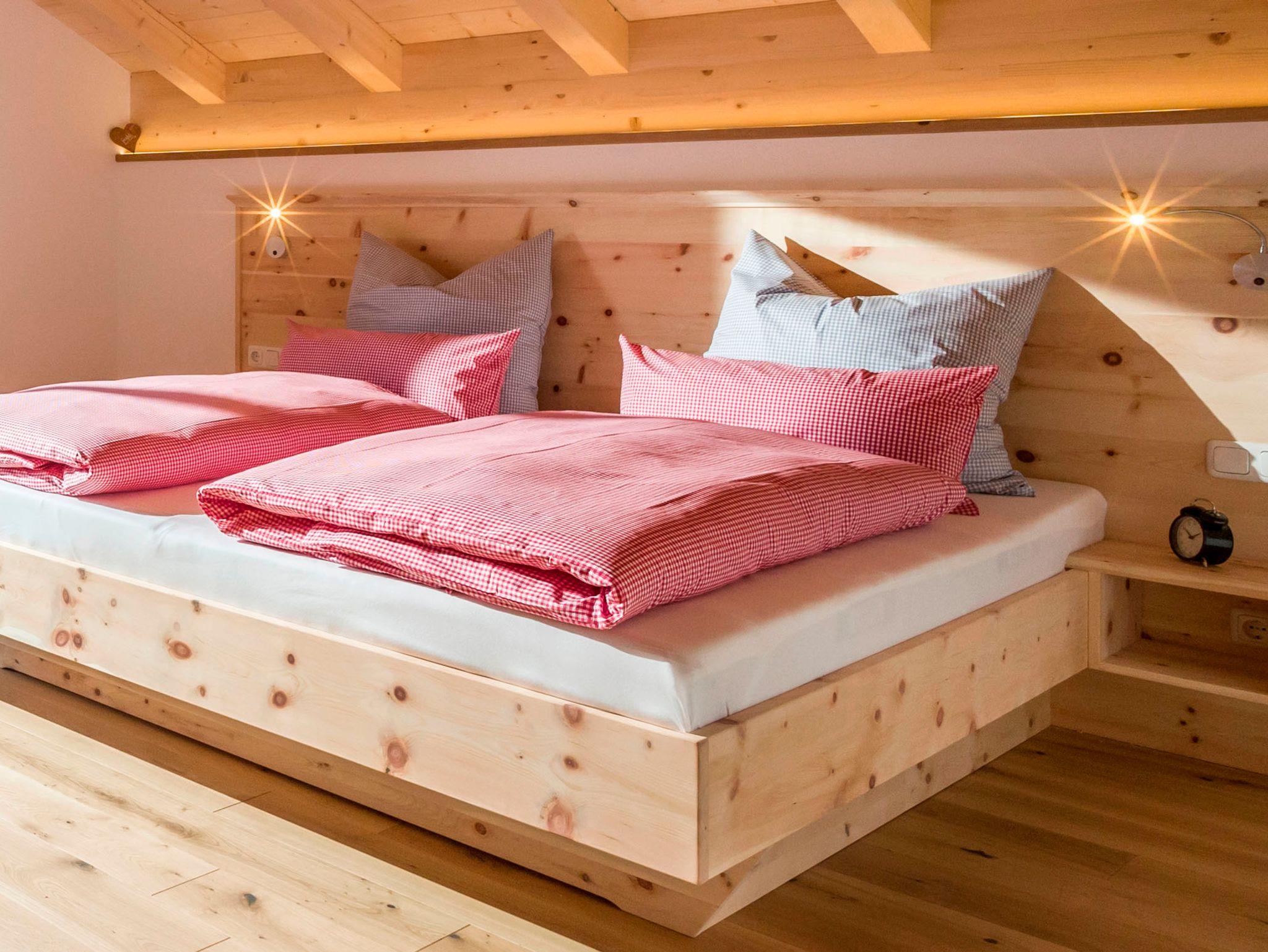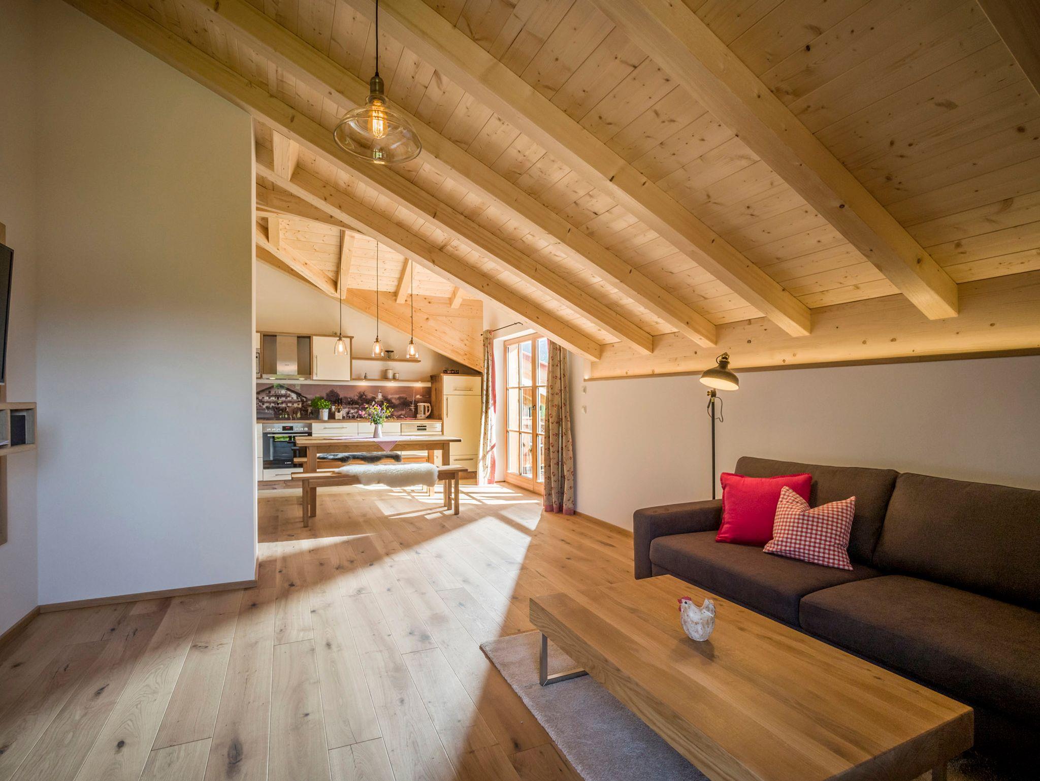 Die einzigartige Wohnung Obstgarten im 2. Obergeschoss unseres Ferienhauses bietet eine herrliche Aussicht auf unsere Streuobstwiesen und die Tiroler und Audorfer Bergwelten. Ein Sichtdachstuhl und die Dachgaube lassen die Großzügigkeit der hellen Wohnung spüren. Geölte Eichendielen und viel heimisches Fichtenholz strahlen Wärme und Behaglichkeit aus.