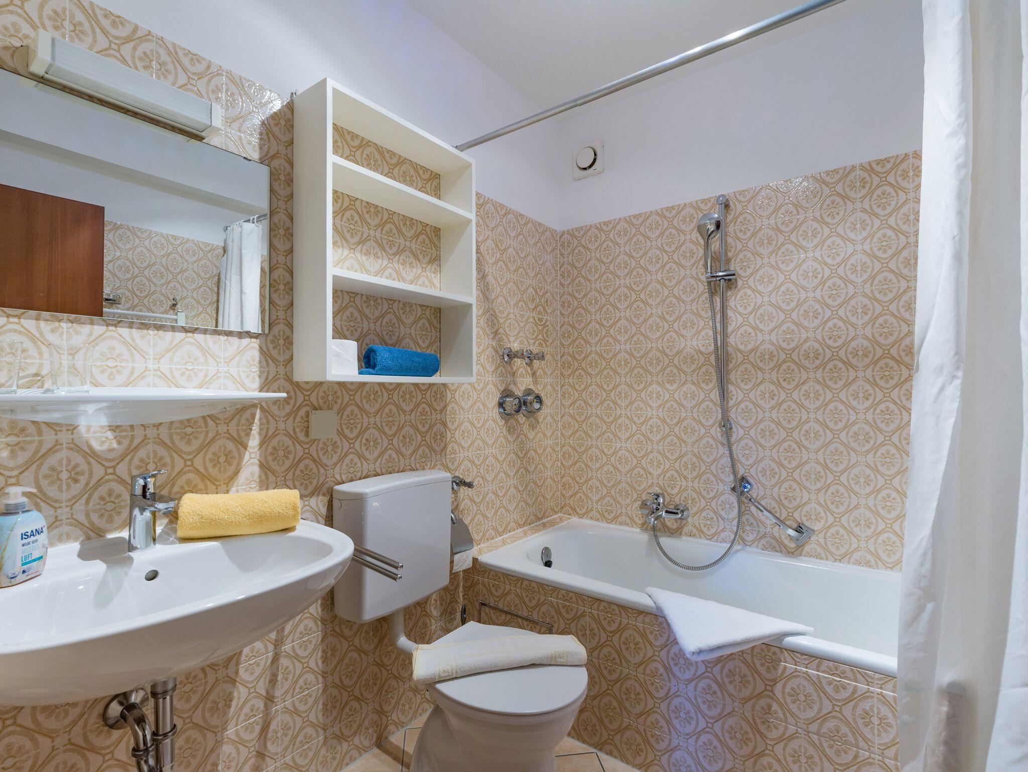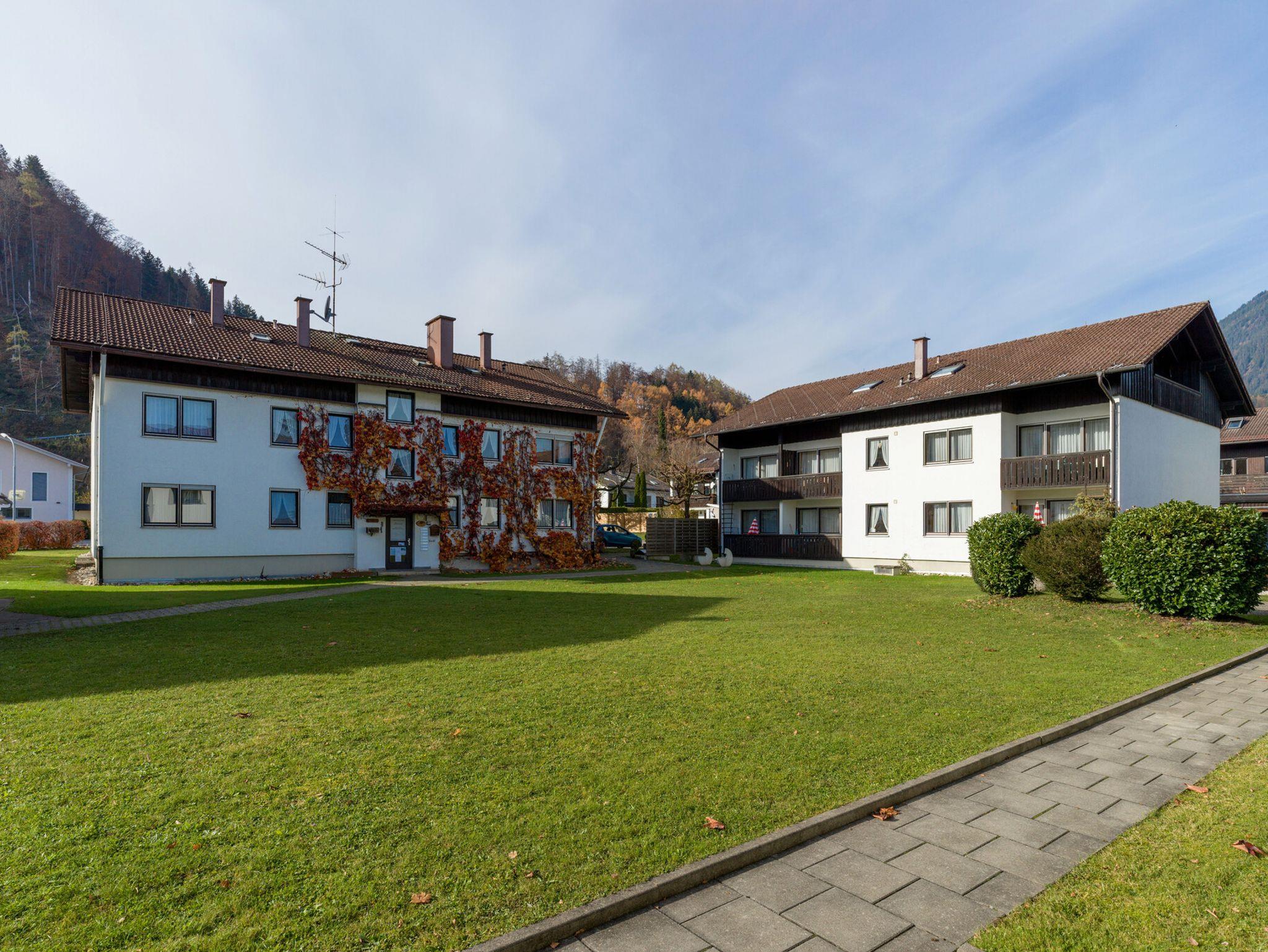 Freundlich eingerichtete Ferienwohnung im Erdgeschoss mit separater Küche, Bad mit Badewanne, Schlafzimmer ausgestattet mit einem Doppel- und einem Einzelbett , einem hellen Wohnraum mit gemütlicher Essecke. Platz genug für 2 oder mehr Erwachsene oder einer kleinen Familie. Das Wohnzimmer ist mit einer Ausziehcouch für 2 Personen und einem Esstisch für 4 Personen ausgestattet. Der Balkon lädt nach einem ereignisreichen Tag zum Sitzen im Freien ein. Die Küche verfügt über einem Backofen, Kühlschrank und einem 4- Plattenherd, sowie Kaffeemaschine, Toaster, Wasserkocher und Küchenutensilien. Die Wohnung liegt in einer familienfreundlichen Anlage mit Spielplatz, Ruheinseln im Garten und einem Hallenbad in ruhiger Lage am Tor zu den Alpen.