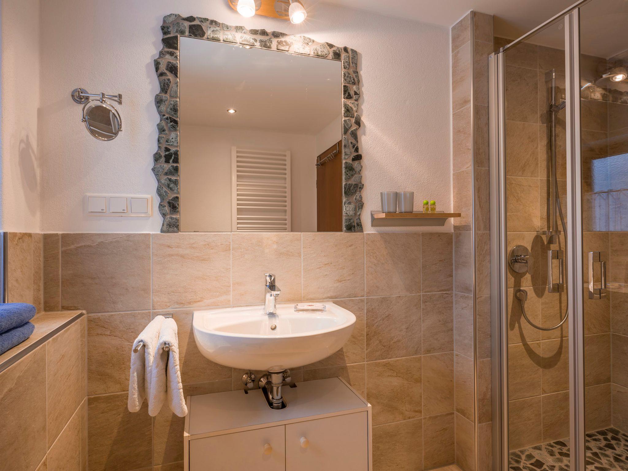 Gemütliche Ferienwohnung im 1. Obergeschoss mit Wohnzimmer, 16 qm Balkon nach Süden und Westen, Schlafzimmer mit Südbalkon, Küchenzeile, Dusche/WC. Sämtliche Wohnungen verfügen über kostenfreies WLAN. Sehr ruhige, sonnige Lage am Ortsrand in unmittelbarer Nähe zum Auerbach. Ca. 3.000 qm großer Garten, herrlicher Blick zum Kaisergebirge und die umliegenden Berge.