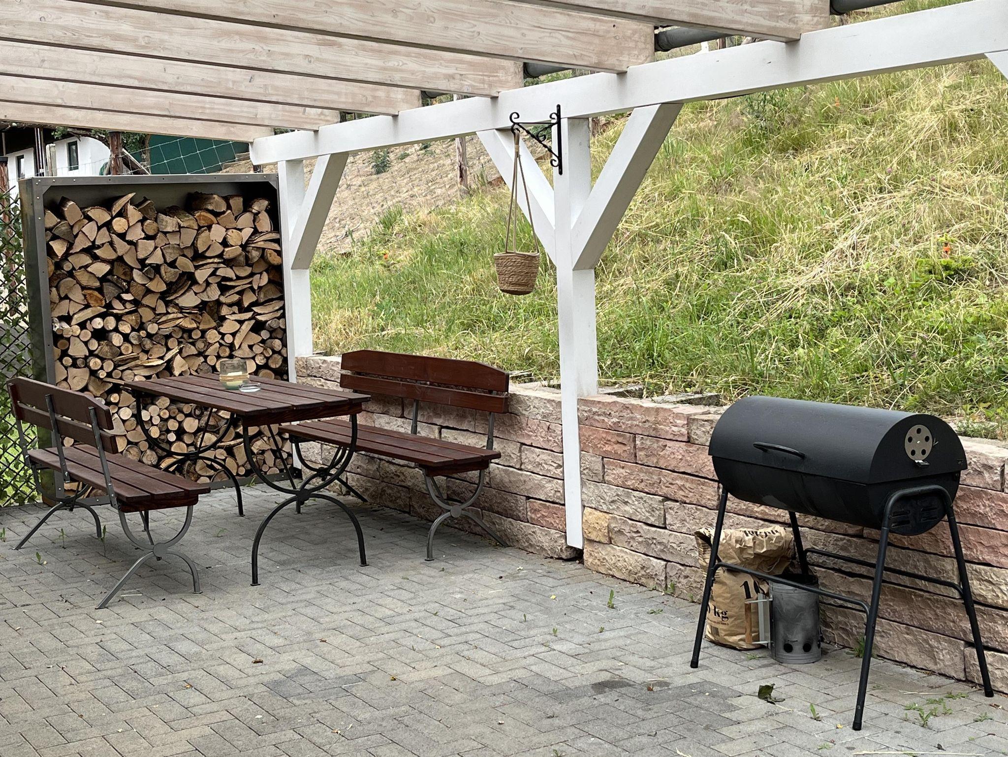 eigenem Eingang mit angeschlossener, überdachter Terrasse mit Sitz- und Grillmöglichkeit.