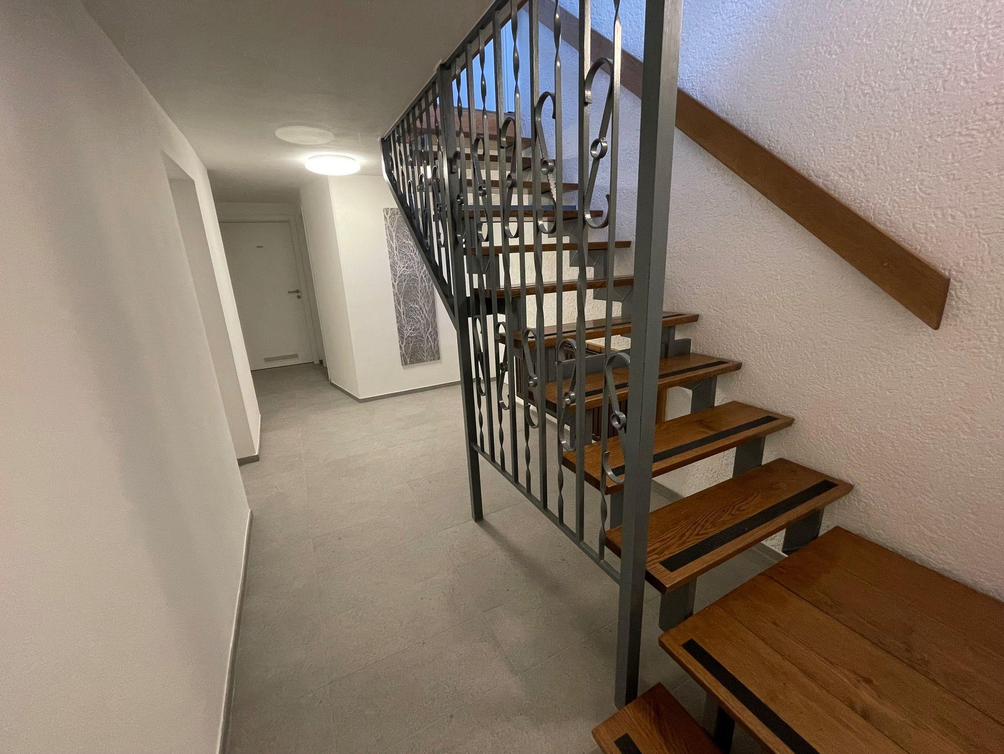Der Hauszugang führt über eine Treppe direkt ins Erdgeschoss, wo sich die Ferienwohnung befindet.