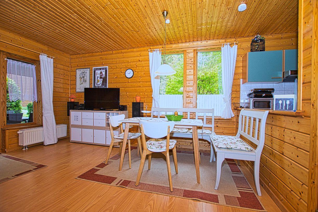Ein Highlight des Ferienhauses ist die schöne, überdachte Terrasse, die sich perfekt für Frühstück im Freien oder entspannte Abende mit Freunden eignet. Der Garten rund um das Feriendorf bietet Ruhezonen und die Möglichkeit für Kinder, sich frei zu entfalten und auf dem Spielplatz zu spielen. Haustiere sind in dieser familienfreundlichen Unterkunft ebenfalls herzlich willkommen, sodass die ganze Familie zusammen Urlaub machen kann.