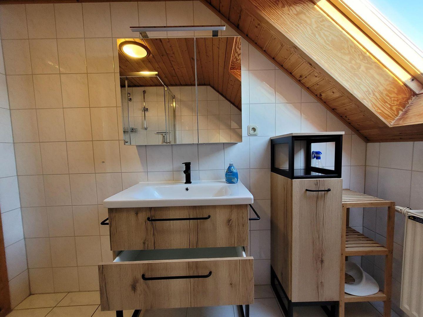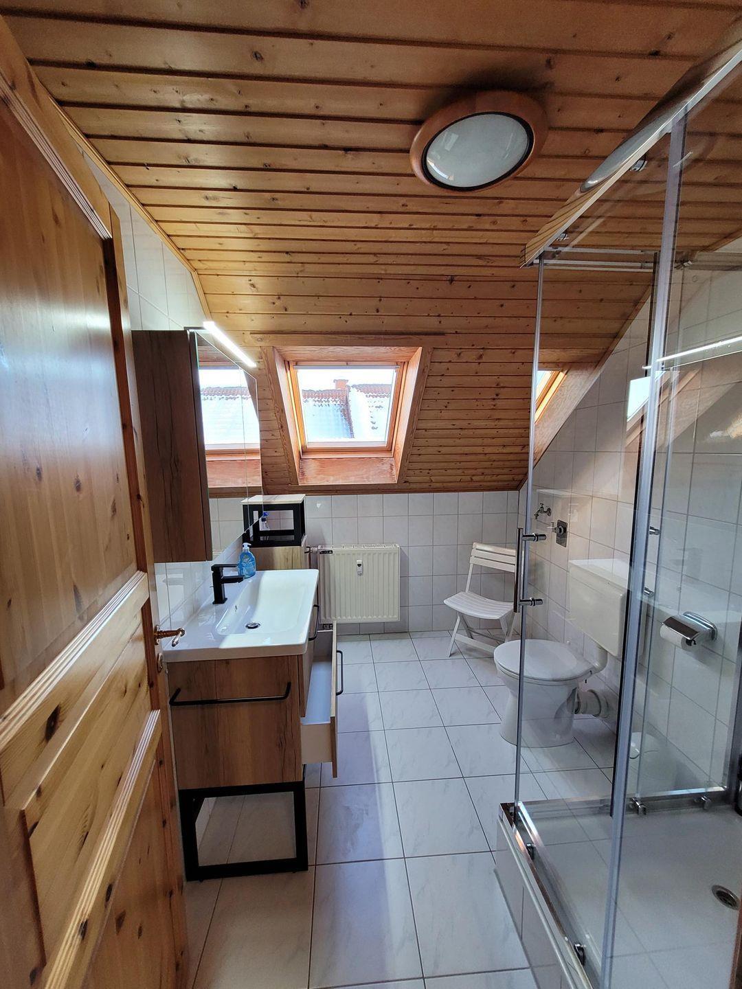 Die voll ausgestattete Küche verfügt über einen Ceranfeldherd, Backofen, Kühlschrank mit Gefrierfach, Spülmaschine und alle notwendigen Küchenutensilien. Ob Sie einen schnellen Snack oder ein feines Dinner zubereiten möchten, hier bleiben keine Wünsche offen! Zu den Annehmlichkeiten gehören zudem eine Waschmaschine und ein Trockner zur gemeinschaftlichen Nutzung, um Ihre Wäsche während Ihres Aufenthalts frisch zu halten.