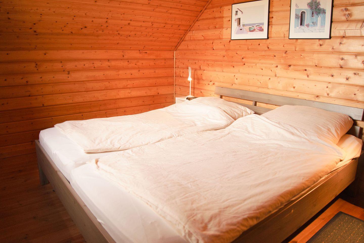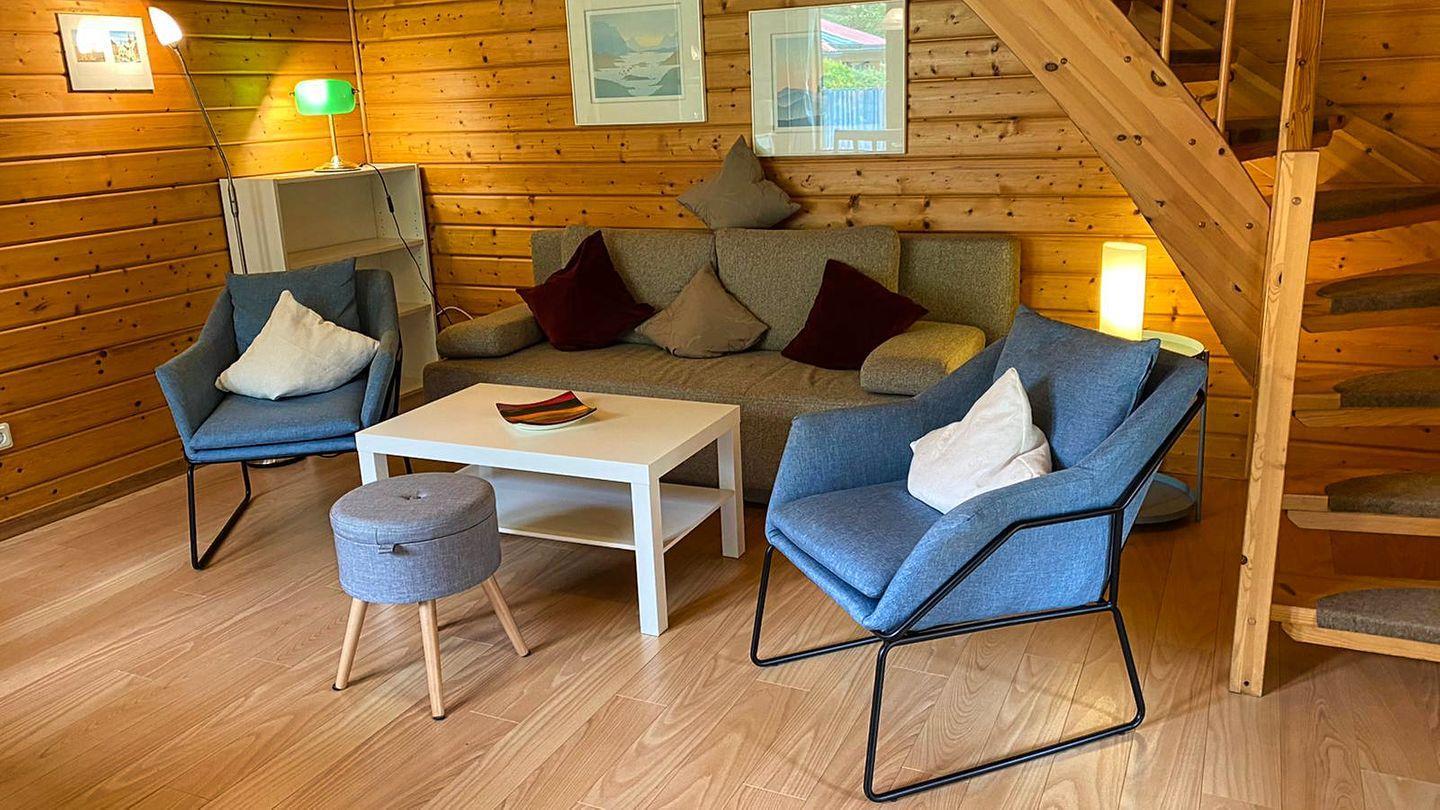 Mit einer Größe von 64 m² bietet die Unterkunft Platz für bis zu vier Personen und ist mit allem ausgestattet, was Sie für einen komfortablen Aufenthalt benötigen. Zwei gemütliche Schlafzimmer mit warmen Dielenboden laden zum Entspannen ein, während das offene Wohnzimmer mit Fliesenboden und einer bequemen Sofaecke zum Verweilen einlädt. Hier erwarten Sie modernes Wohndesign und ein gemütlicher Essbereich, der sich ideal für gemeinsame Mahlzeiten eignet.