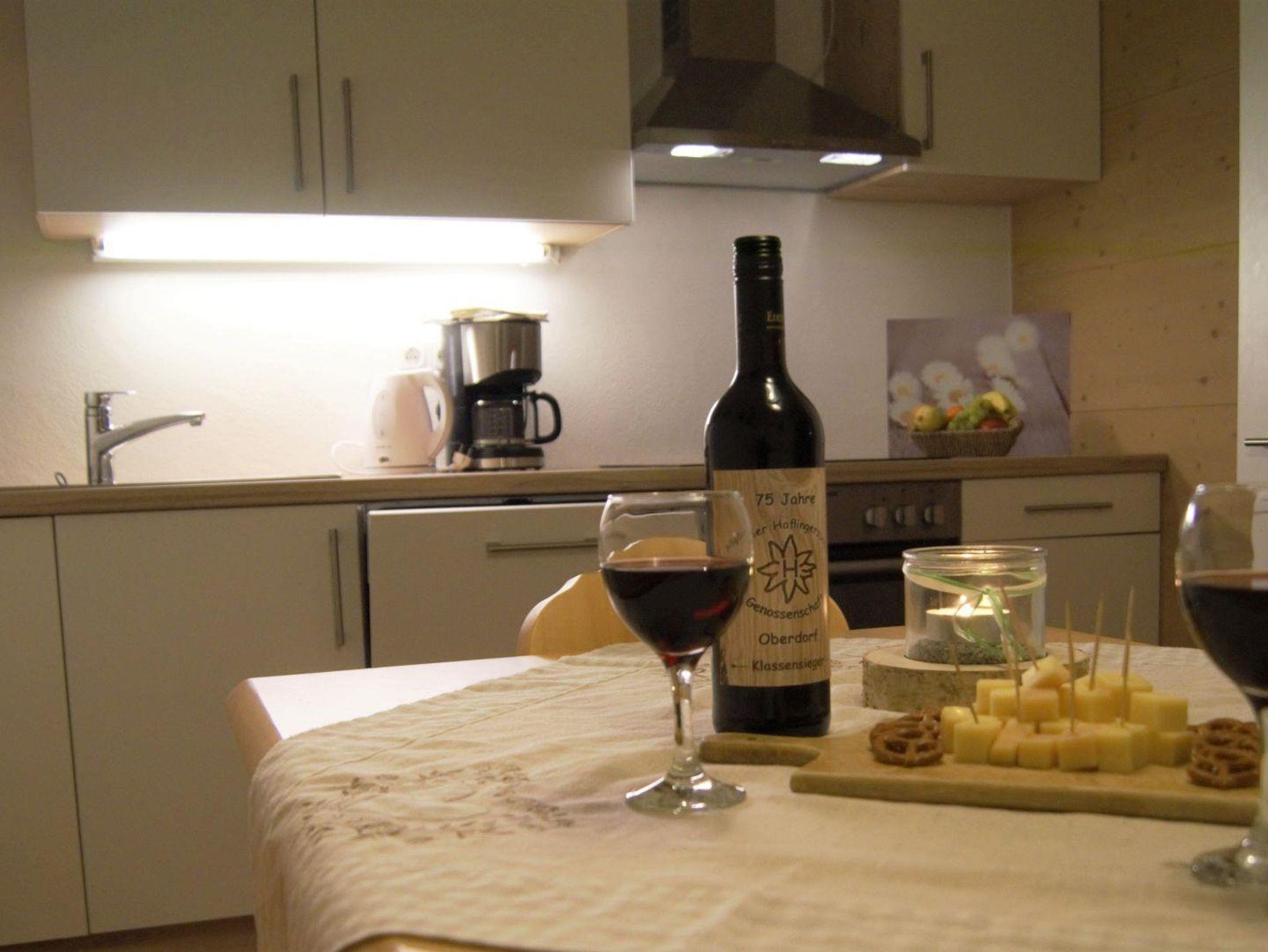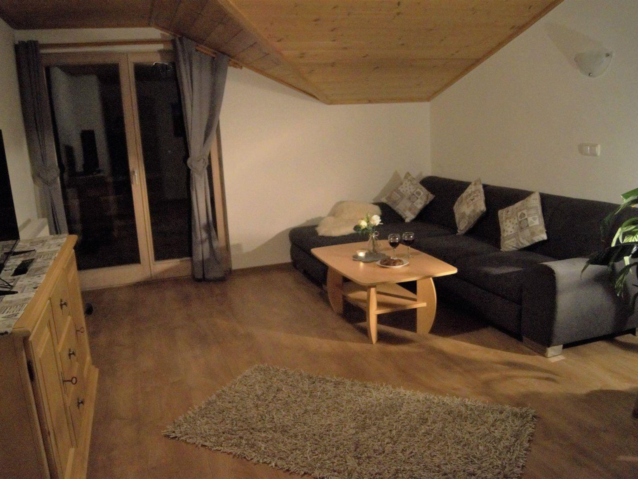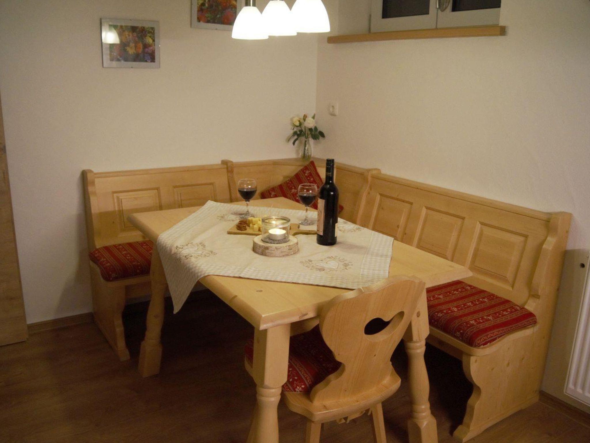 Top moderne, neu renovierte Ferienwohnung mit traumhaftem Ausblick in die Berge, 2 getrennten Schlafzimmern, gemütlichem Wohnbereich mit Couchecke, Flat-TV und voll eingerichteter Küche mit Herd, Backofen, Kühlschrank sowie Essecke mit Eckbank.