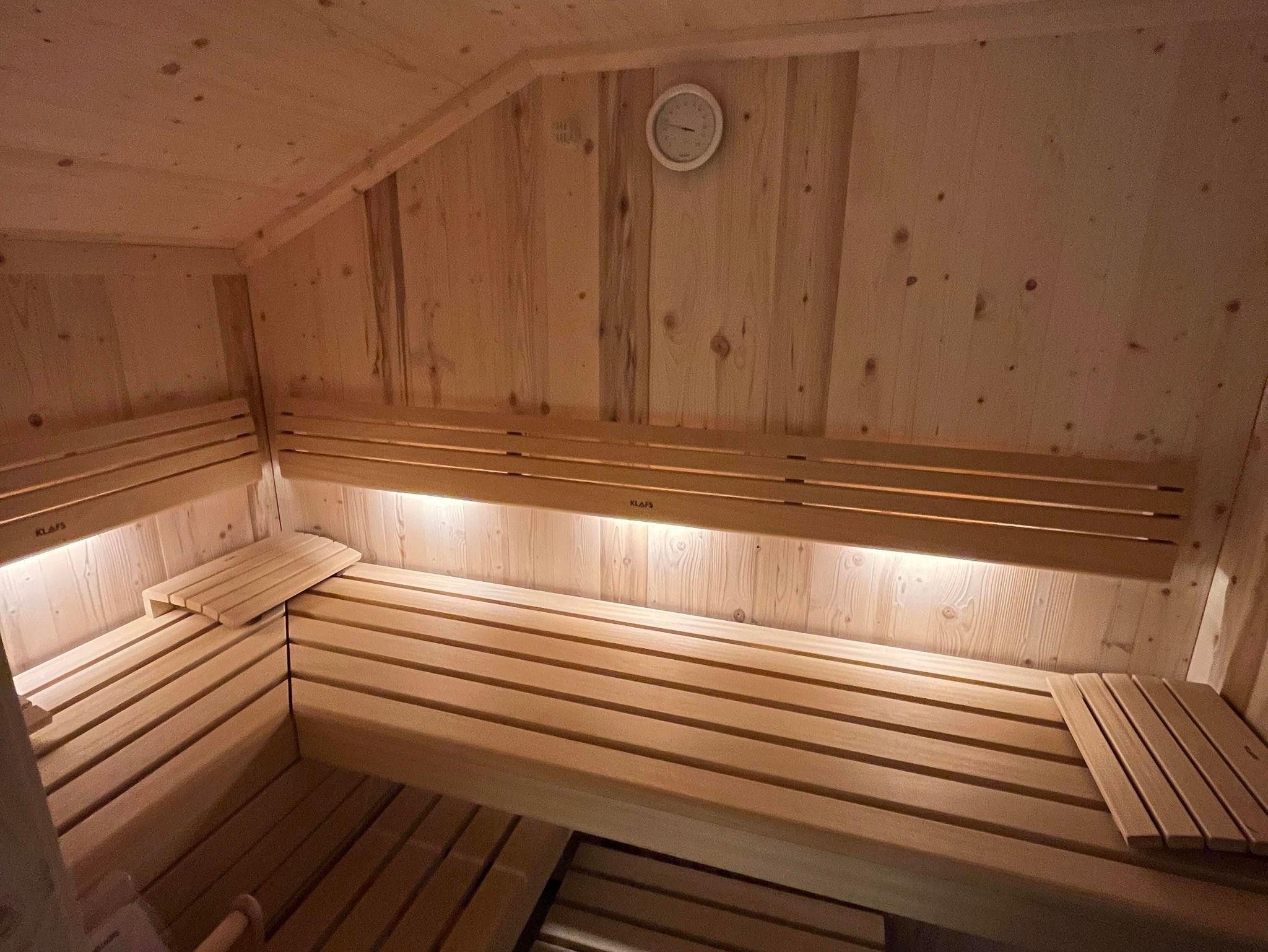 Das Highlight? Die private Sauna im Badezimmer. Doppelwaschbecken, Dusche/WC und ein separates WC sorgen für zusätzlichen Wohlfühlfaktor. Die beiden Schlafzimmer sind praktisch aufgeteilt: eines mit Doppelbett, das andere mit einem gemütlichen Etagenbett.