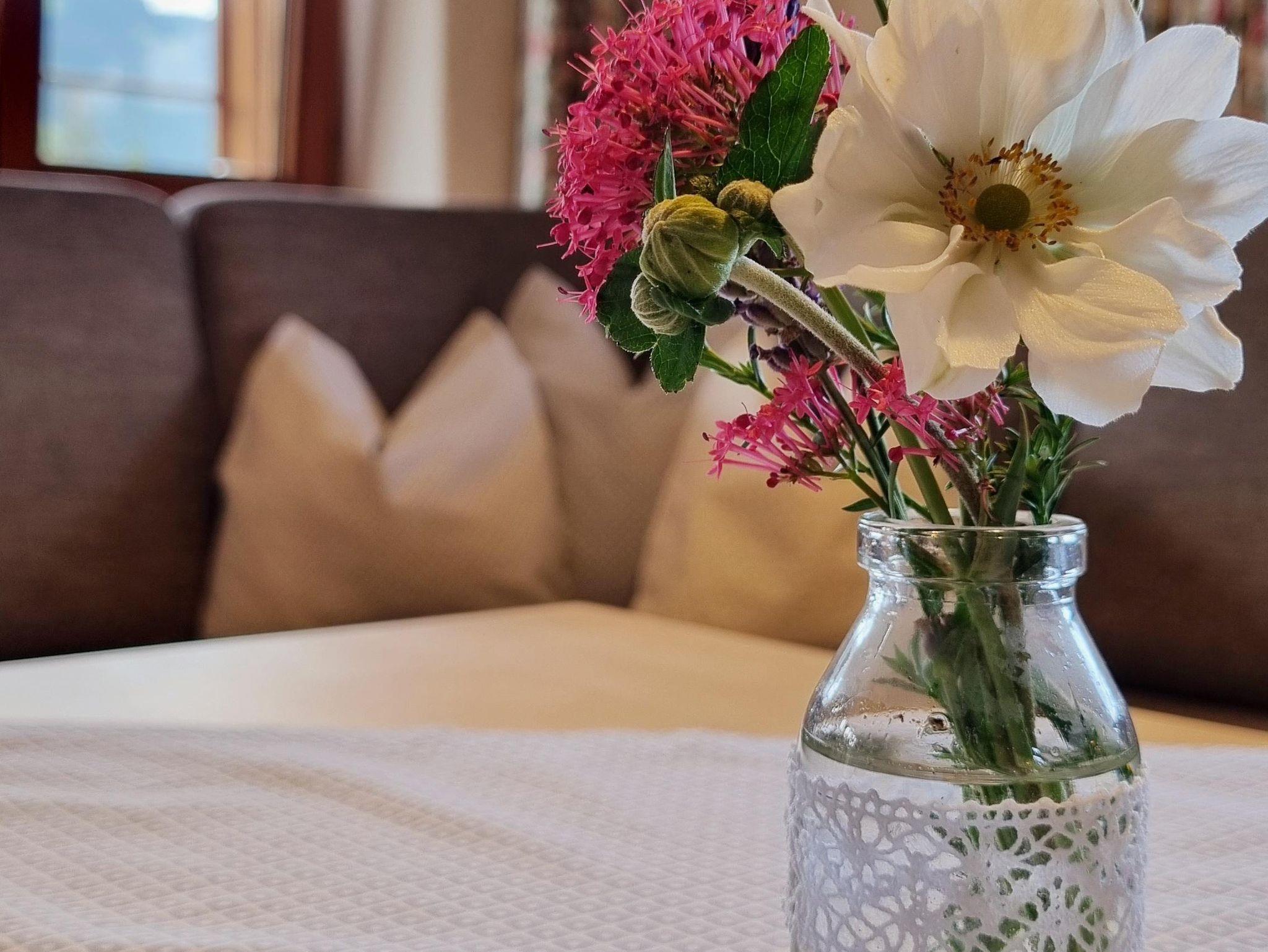 Unsere Nichtraucher-Wohnung ist sehr gepflegt und geräumig - Sauberkeit wird bei uns noch groß geschrieben. Genießen Sie Ihr Frühstück in der gemütlichen Essecke und erholen Sie sich nach einer eindrucksvollen Bergwanderung auf der windgeschützten Veranda. Hier können Sie sich Ihre wohlverdiente abendliche Brotzeit schmecken lassen und in der untergehenden Abendsonne für den nächsten erlebnisreichen Tag Kraft schöpfen.