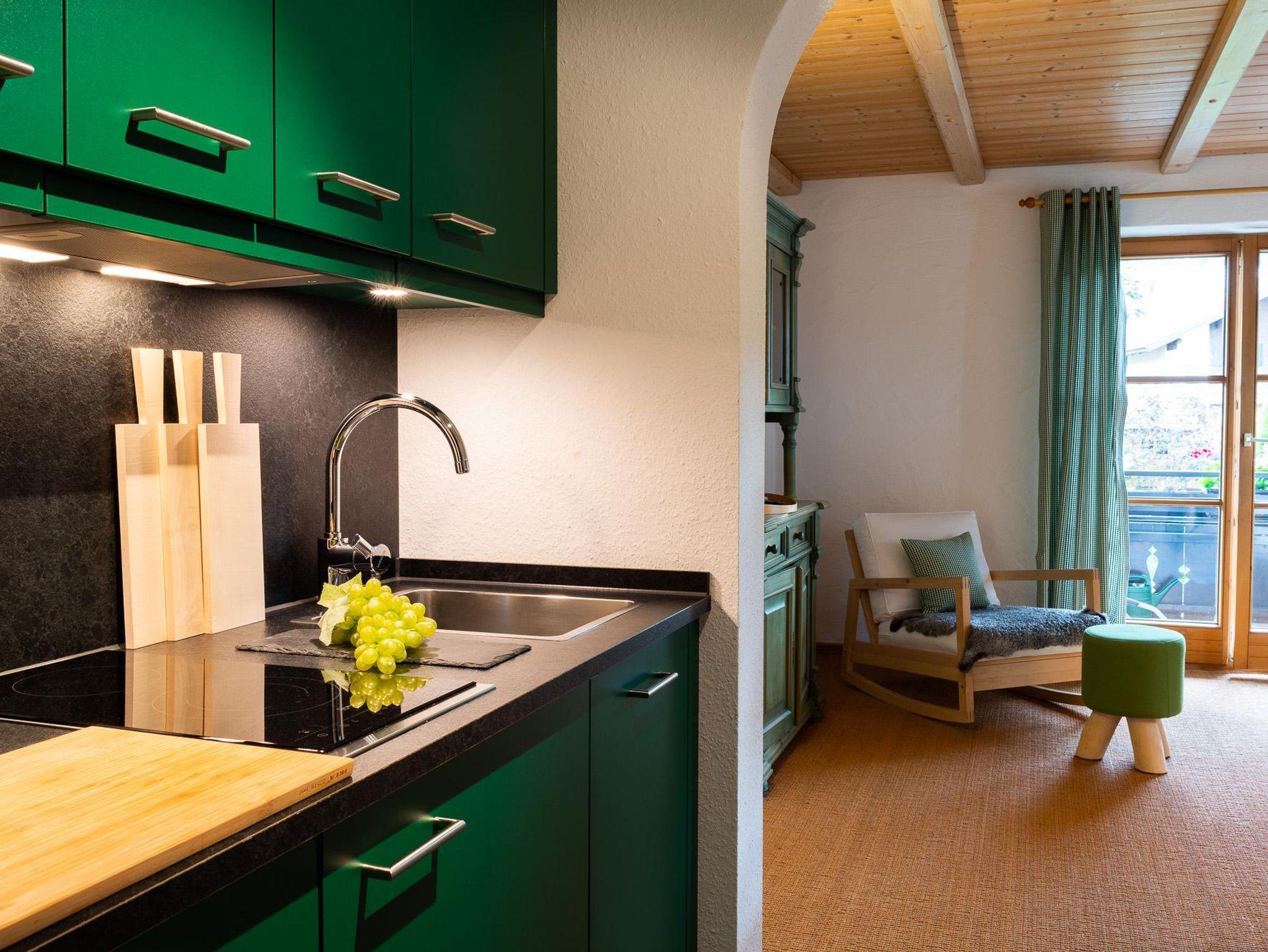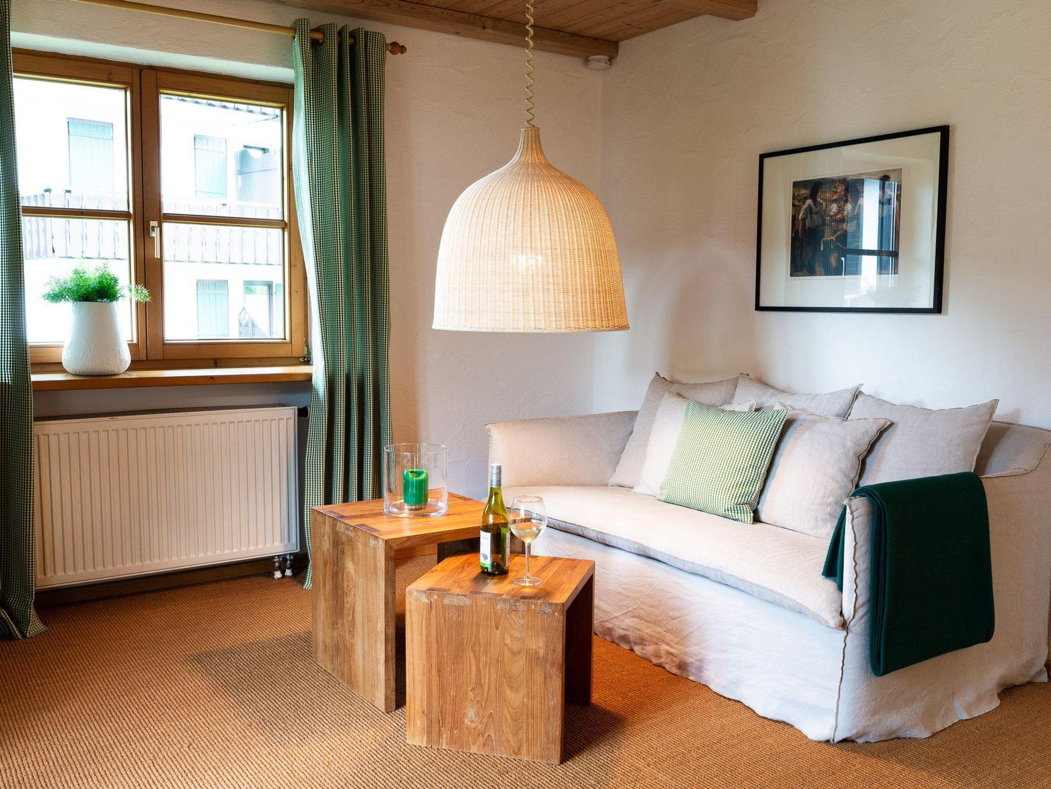 Die Wohnung ist in ländlich/ modernem Stil eingerichtet und besteht aus Wohnzimmer, separatem almengrünem Schlafzimmer, Dusche, WC und Küche mit Essecke. Die Wohnung verfügt über einen Südbalkon, auf dem Sie gemütlich den Tag ausklingen lassen können. Die Almengrün ist Nichtraucherzone und Haustierfrei ausgewiesen.