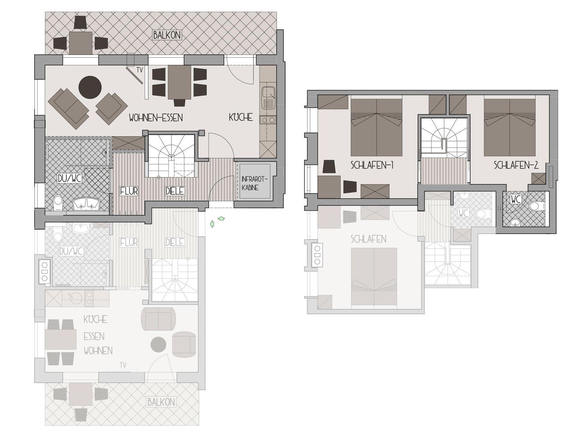 • - 2 Schlafzimmer mit einem zusätzlichem WC auf der Galerie