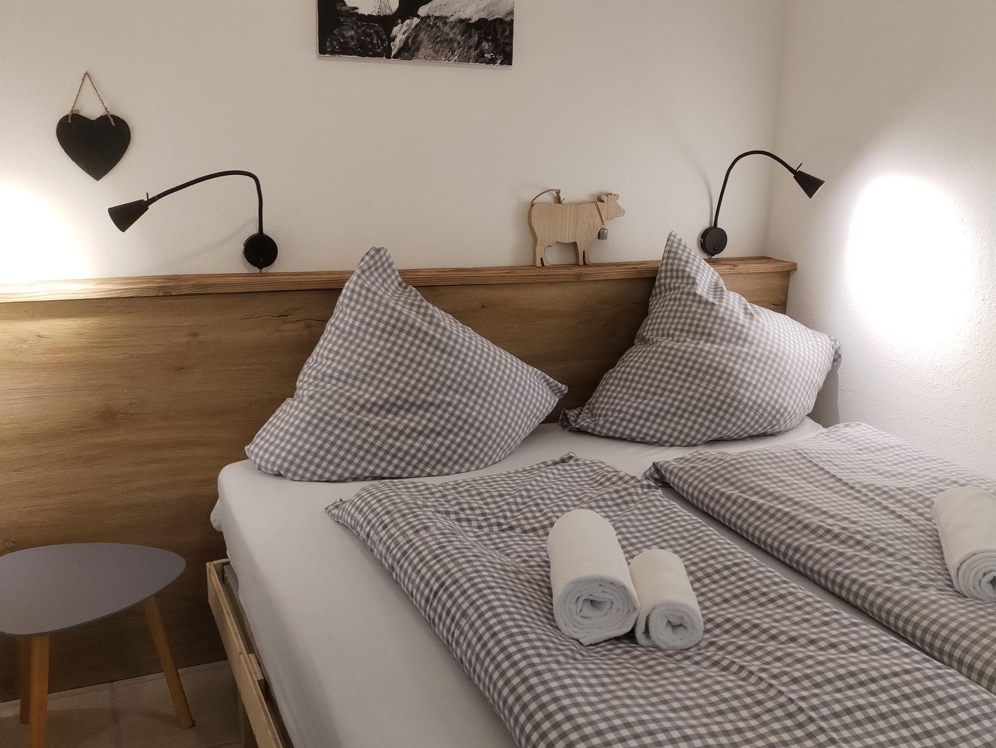 Sie bietet Ihnen ein Wohnzimmer mit Balkon, einer sehr gut ausgestatteten Küchenzeile und einem Essplatz, sowie ein separates Schlafzimmer mit Doppelbett (160x200cm). Auf der hochwertigen Schlafcouch im Wohnzimmer, kann eine dritte Person schlafen.