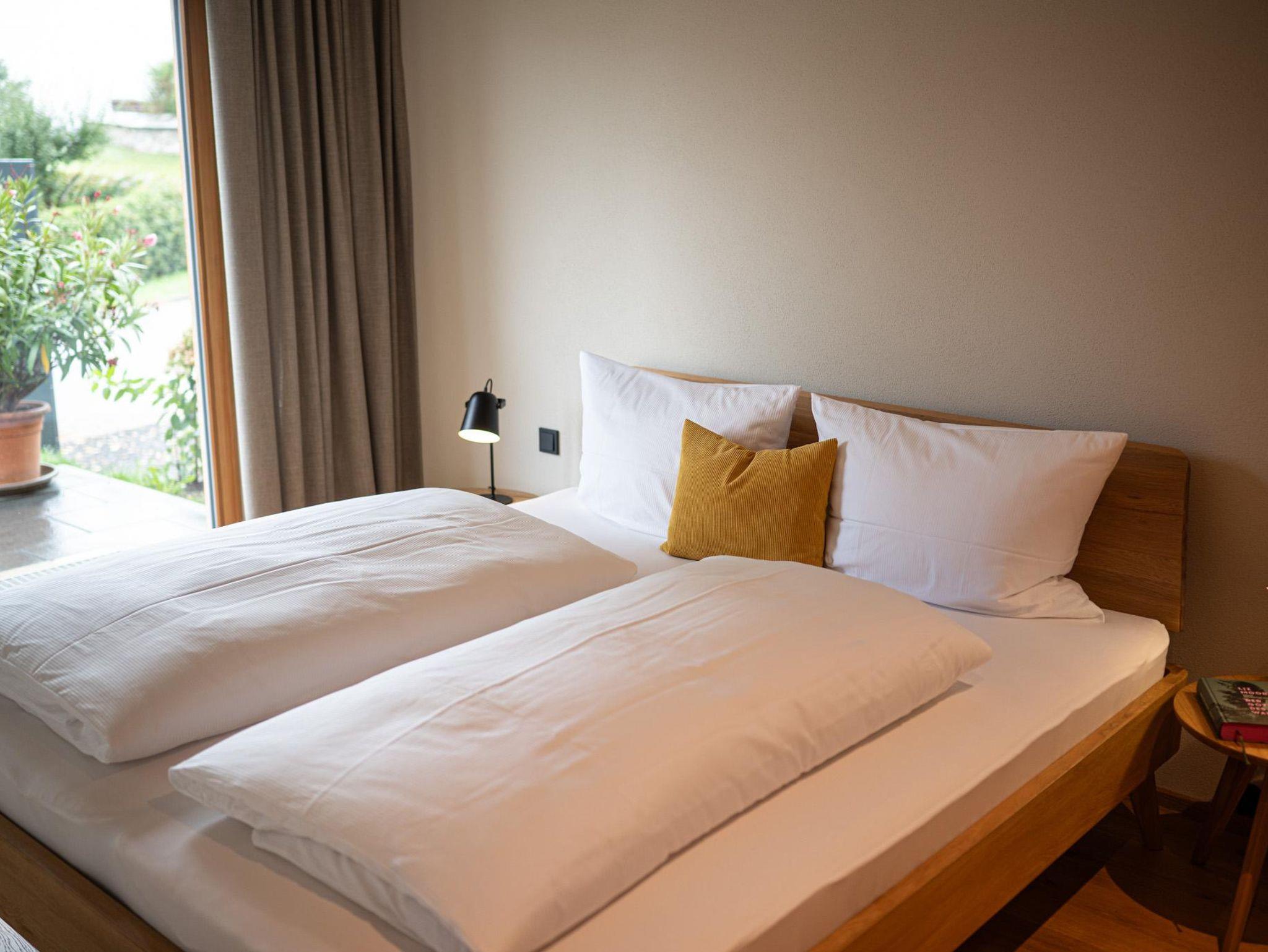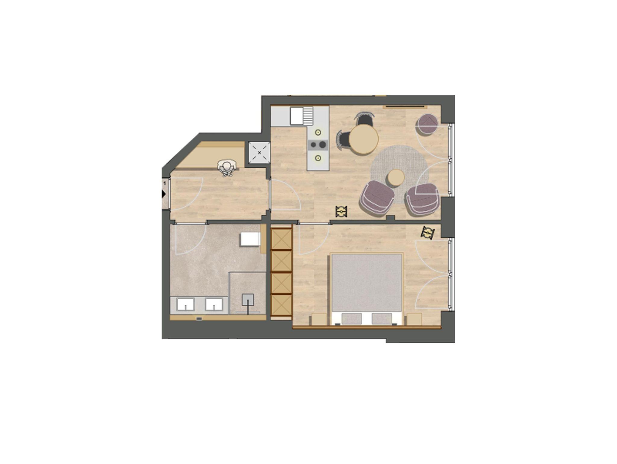 Josef Gemütlich, hell und mit Panorama-Ausblick: Dieses Appartement mit 40 qm im Erdgeschoss bietet eine große Terrasse, eine offene Wohnküche und ein kuscheliges Schlafzimmer – perfekt für eine entspannte Auszeit.