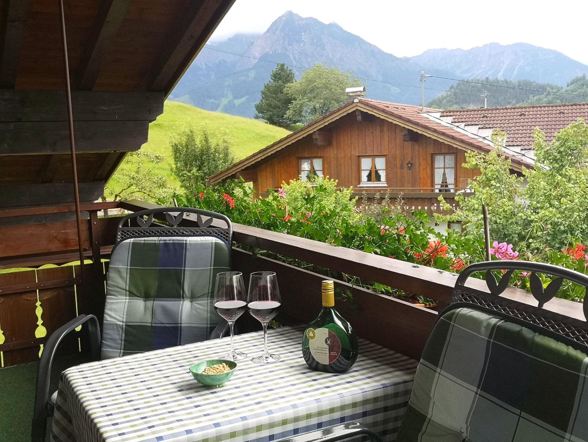 Vom Südbalkon mit Sitzgarnitur haben Sie einen unverwechselbaren Panoramablick in die Allgäuer Alpen