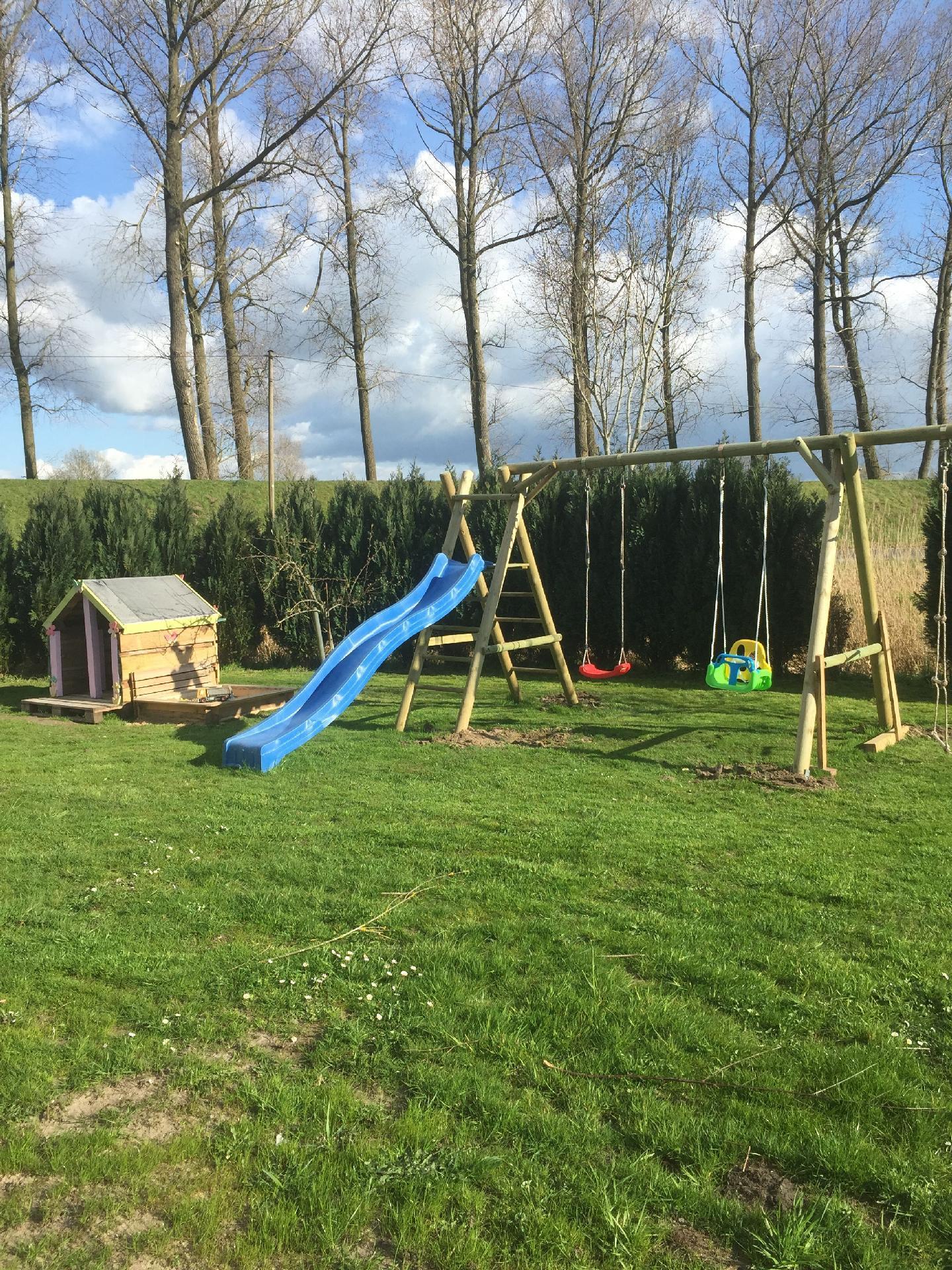 The outdoor area of our house is a paradise for those seeking relaxation and for children who love to play. A garden house, a covered terrace with garden furniture, a Hollywood swing, a barbecue area, a sandpit, swings, slides and a large play boat guarantee fun and relaxation for the whole family.