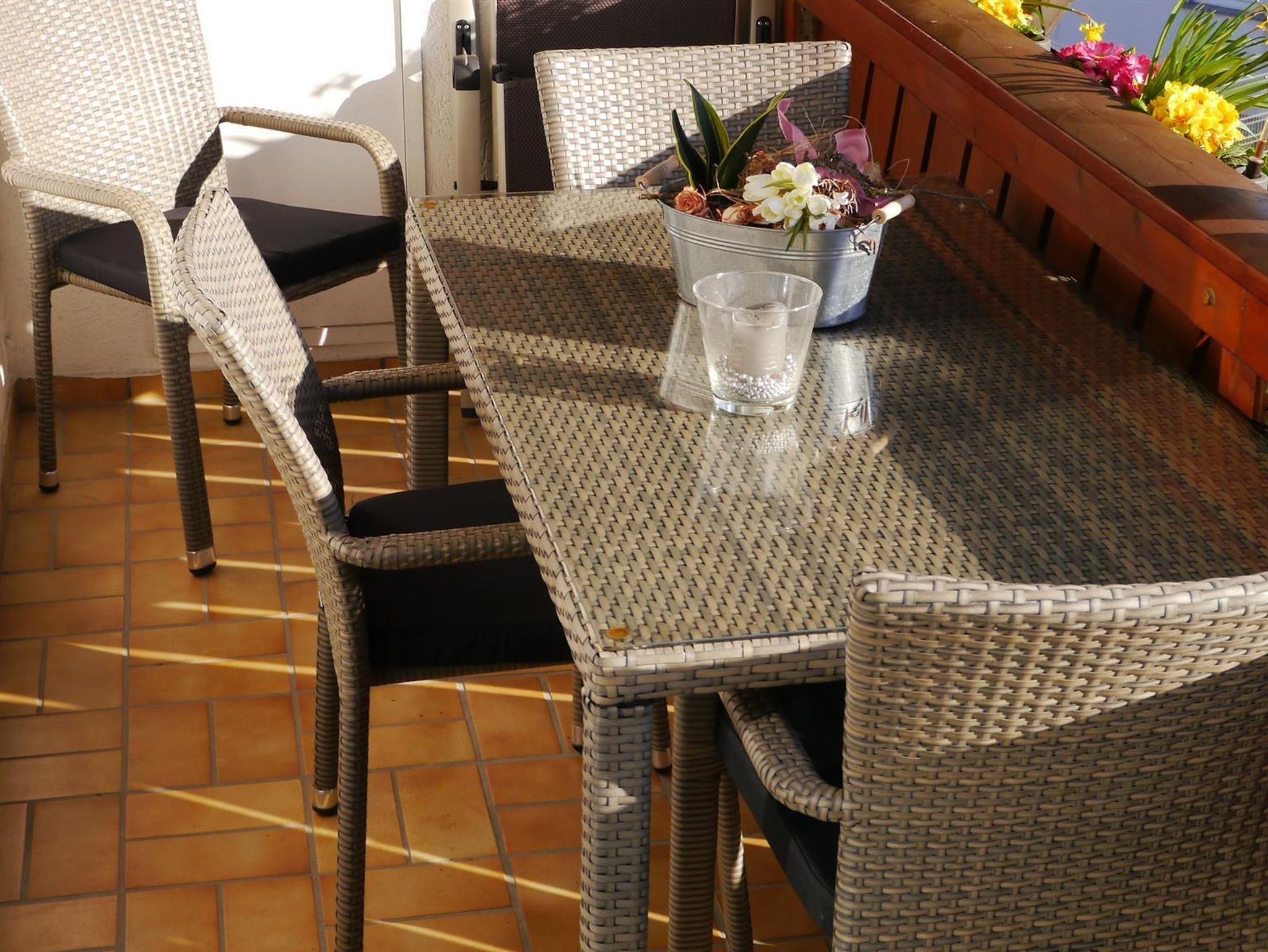 mit Sonnenliege, Sonnenschirm, Bistrotisch