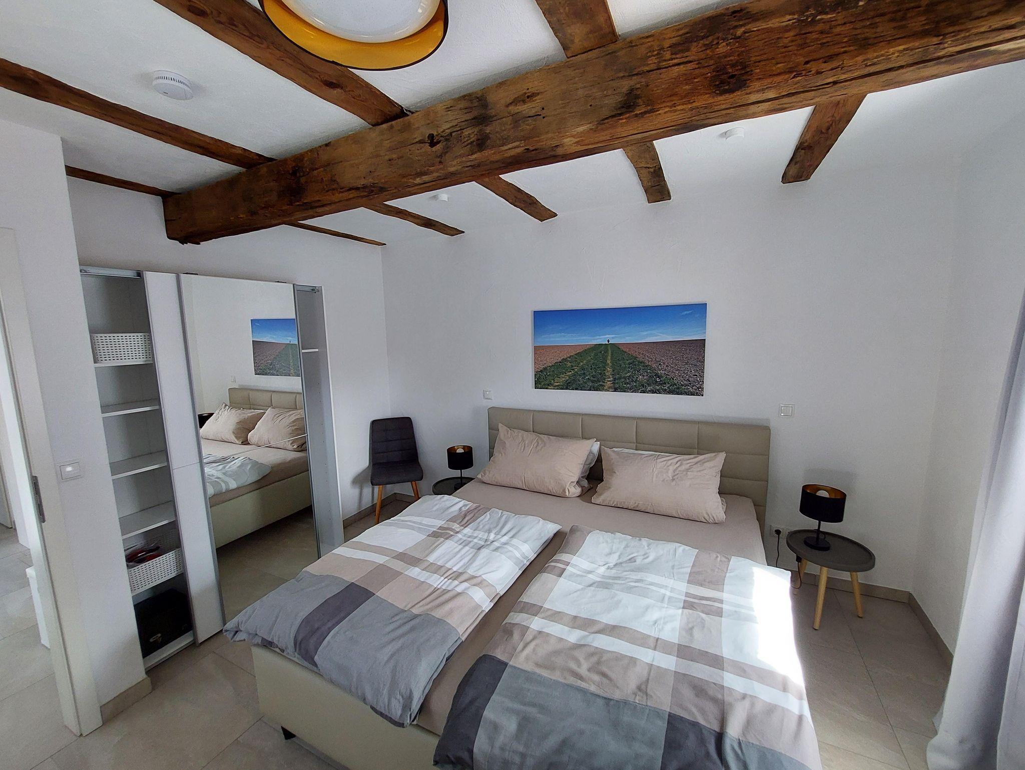 Das schmucke Fachwerkhaus mit Eingang zum Innenhof liegt an der wenig befahrenen Unterdorfstraße am östlichen Ortsausgang Oberotterbachs. Über ein uriges Eichen-Treppenhaus mit schmalem Aufgang gelangen Sie in Ihr vom übrigen Haus unabhängiges Feriendomizil. Es erwartet Sie eine kuschelige, liebevoll eingerichtete Ferienwohnung für zwei.