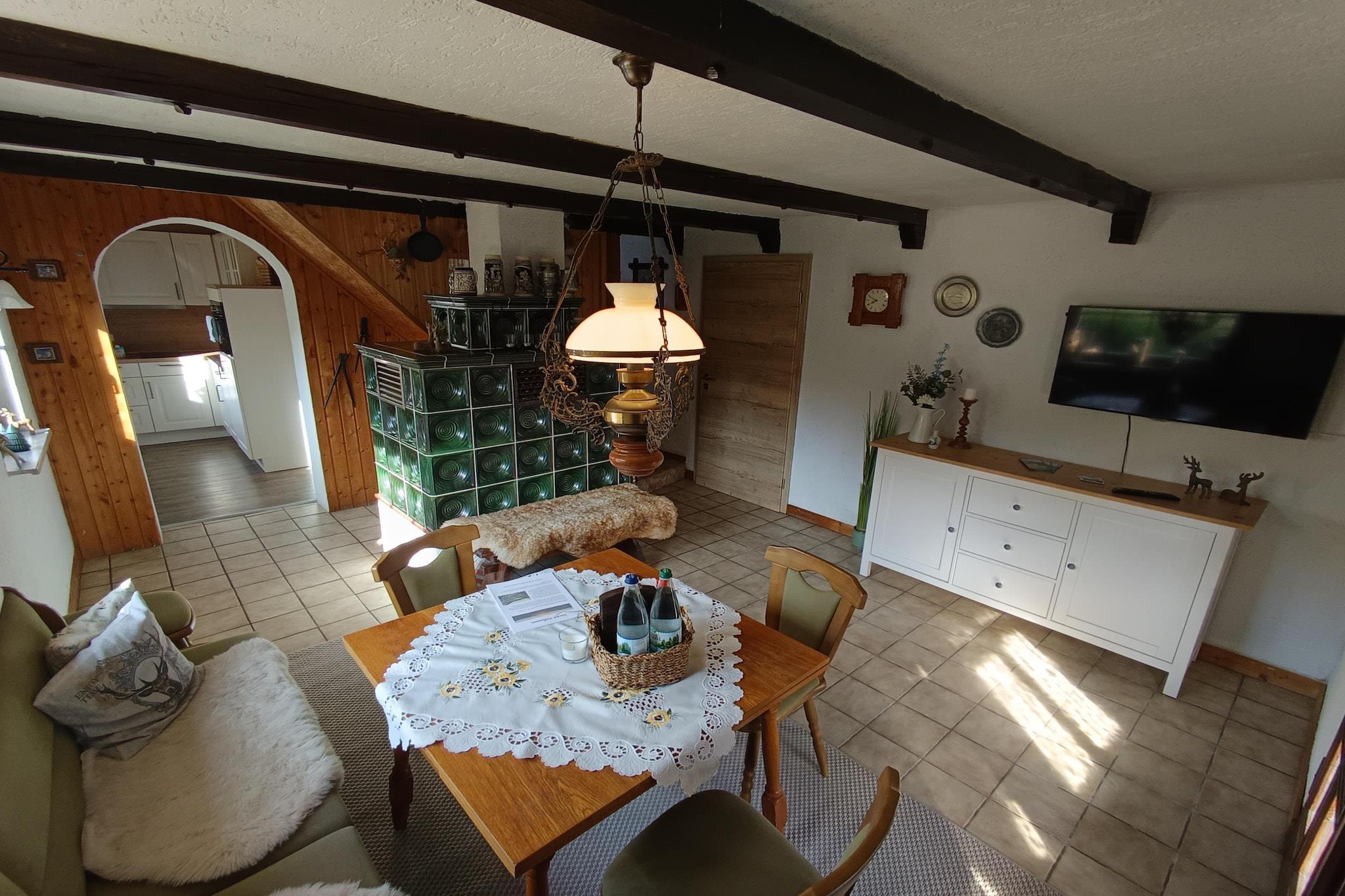Dette hyggeligt indrettede feriehus ligger på en 1600 m² stor have/naturgrund i en rolig, solrig beliggenhed på en bakke med udsigt til Oberschönau-bjergene. Der er cirka 250 km vandrestier omkring Oberschönau. Butikker, restauranter osv. er i nærheden. Aktiviteter i nærheden: Midt i Thüringer Wald, i "WM Ferienregion" Oberhof, ligger den idylliske bjerglandsby Oberschönau. Det byder på omkring 100 km godt afmærkede vandrestier og et velholdt netværk af ski- og vandrestier om vinteren. Men sportsgrene som mountainbike og stavgang er også populære. Klatrerne kan dyrke deres sport på Finkensteinen eller "De Tolv Apostle". Høje bjerge på 800 m omgiver stedet, såsom Hermannsberg, Ruppberg, Hohe Möst og Donnershauk, på hvis højderyg Rennsteig strækker sig. En gåtur dertil belønnes med et fascinerende panorama og en god udsigt over afstanden. For vinterelskere af hurtige nedkørsler vil skiløjperne med lifte i Steinbach-Hallenberg og Oberhof få noget for pengene. Ikke egnet til personer med nedsat mobilitet