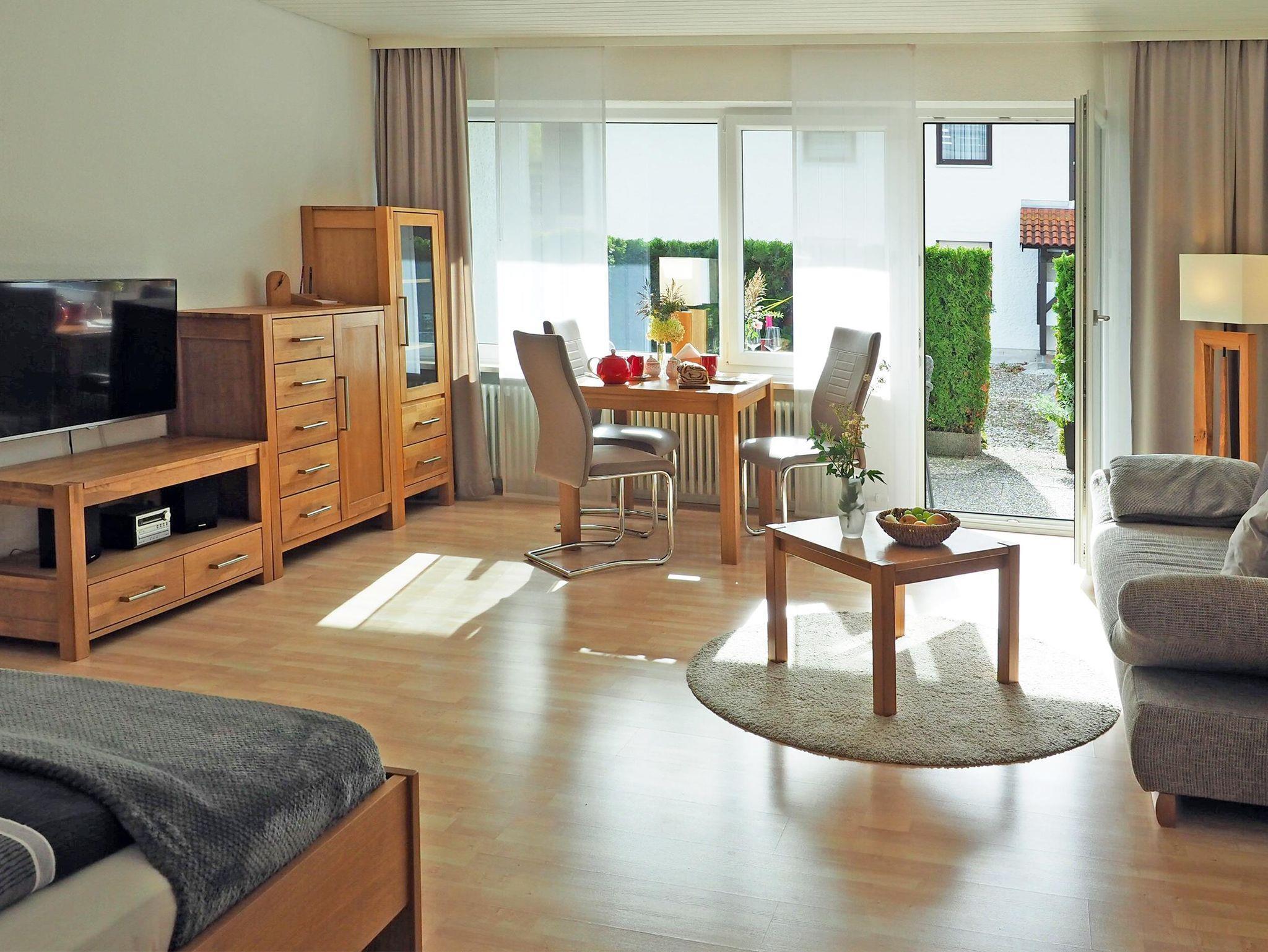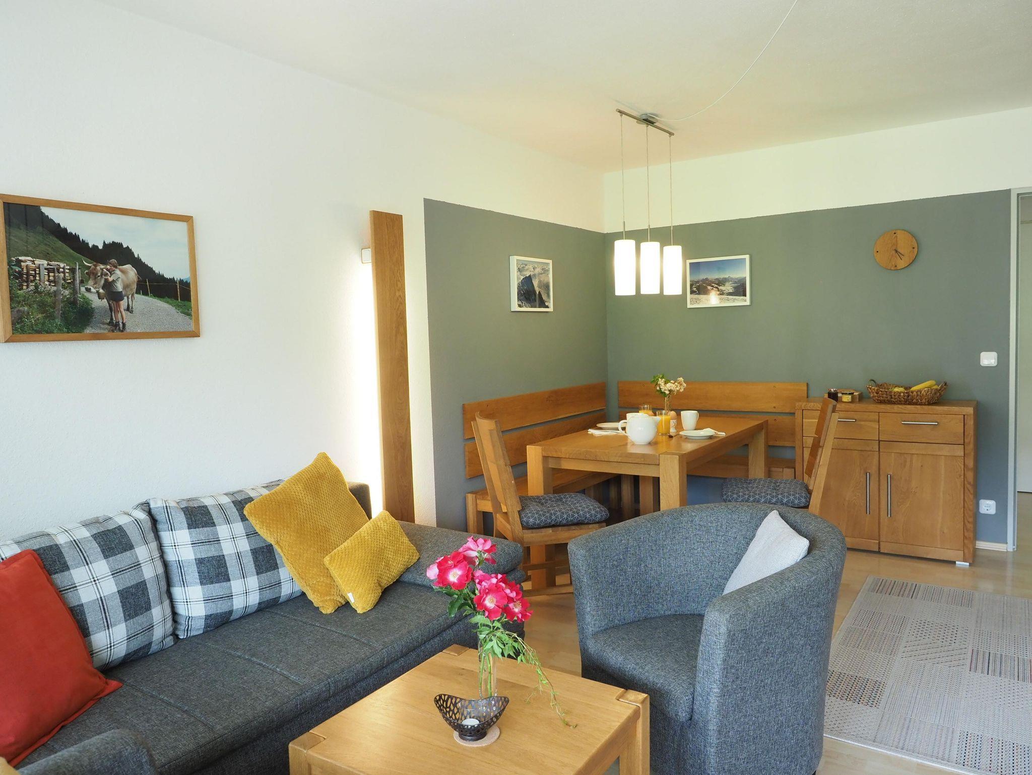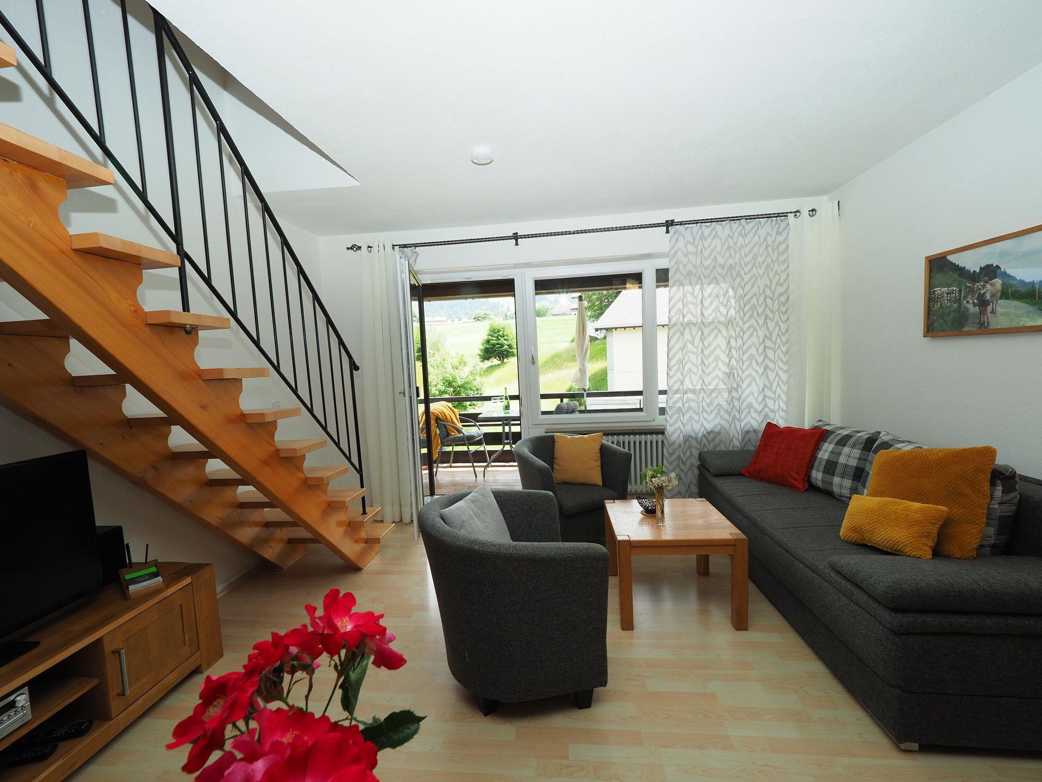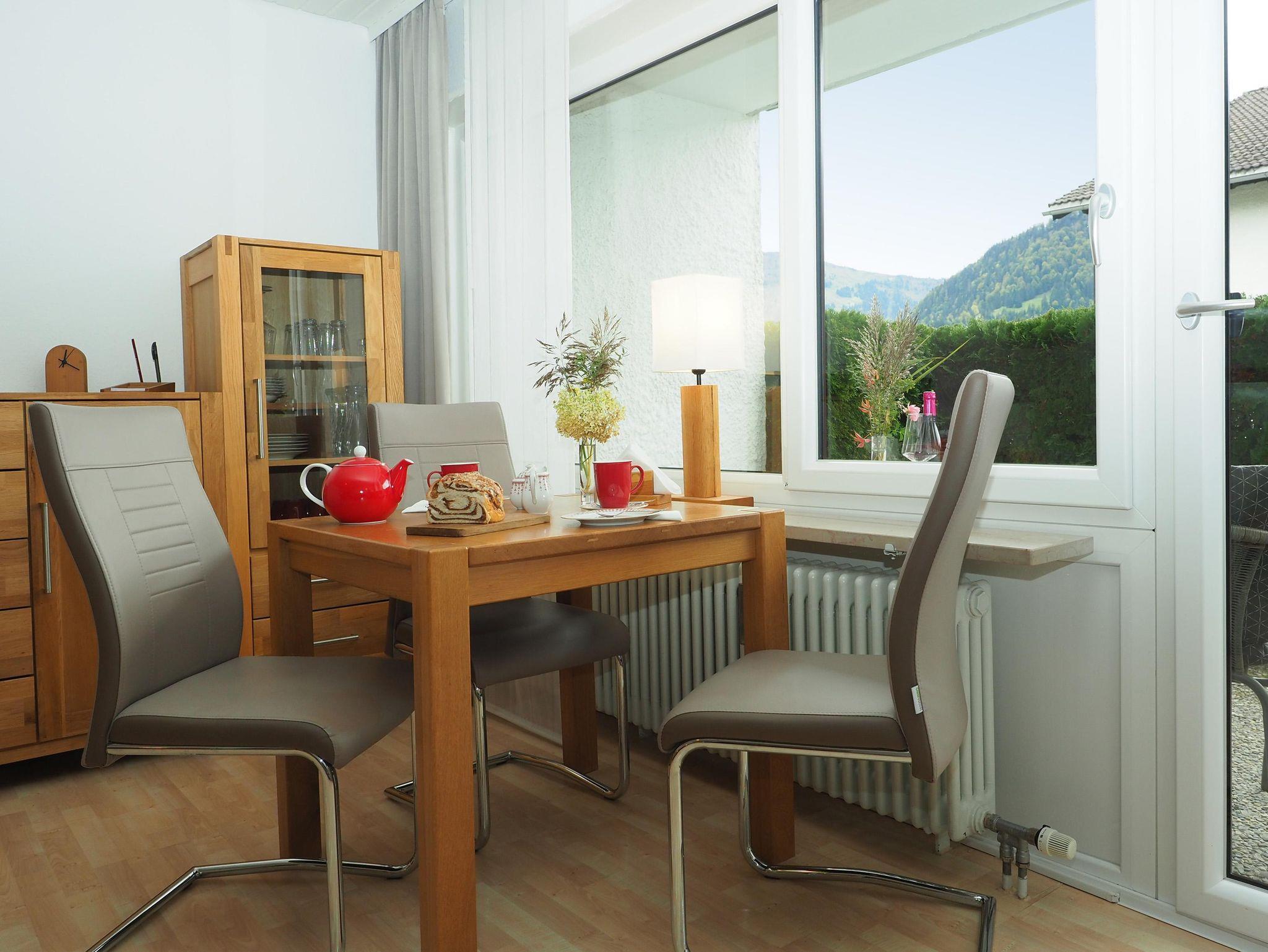 Unsere renovierte Maisonettewohnung im 1. Stock mit Südbalkon und wunderschönem Bergblick auf Hochgrat und Imberg ist hochwertig und geschmackvoll eingerichtet.